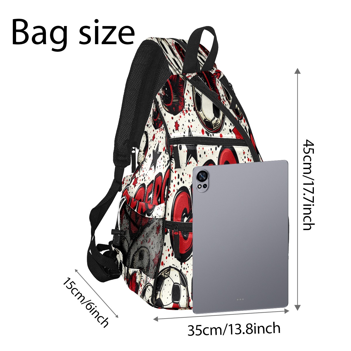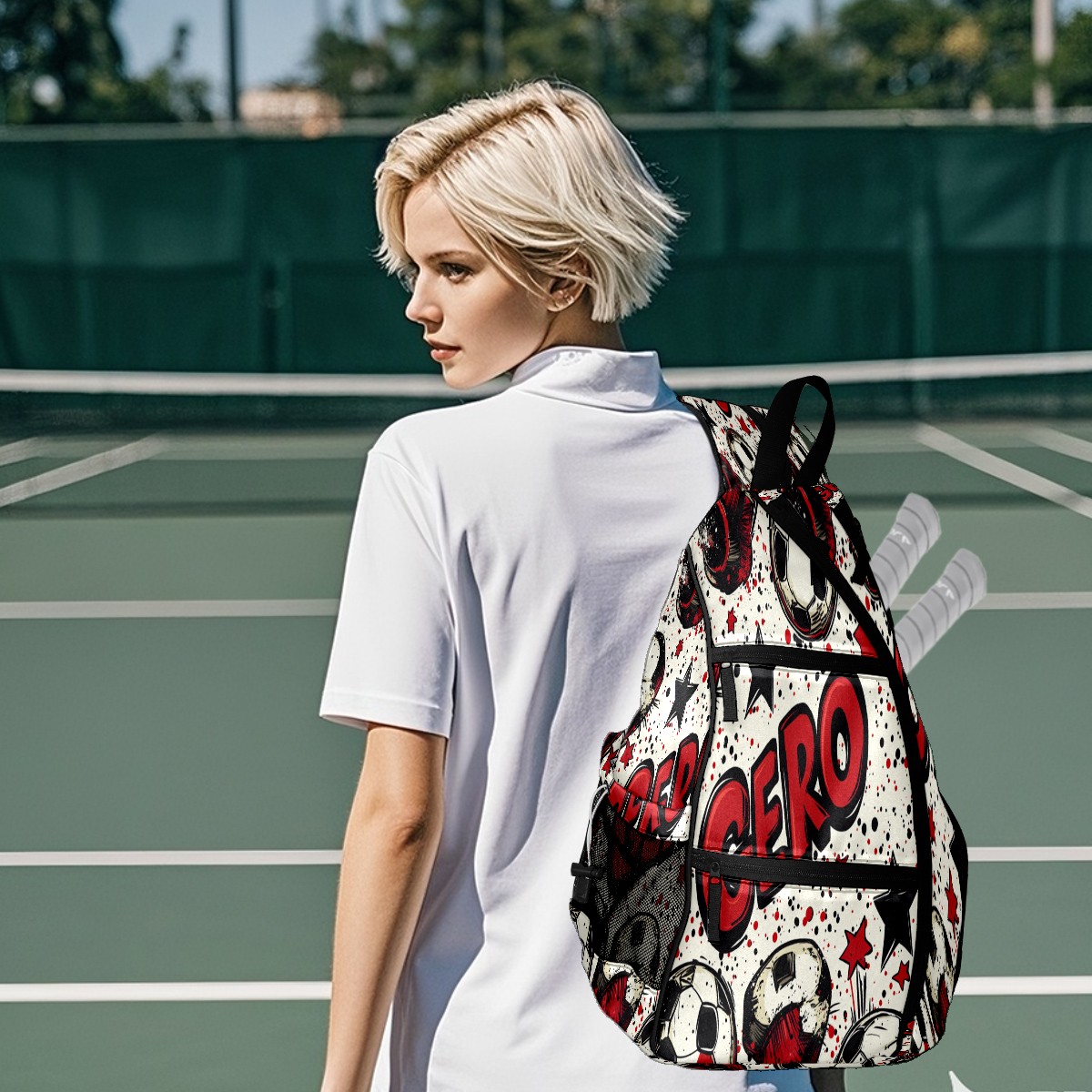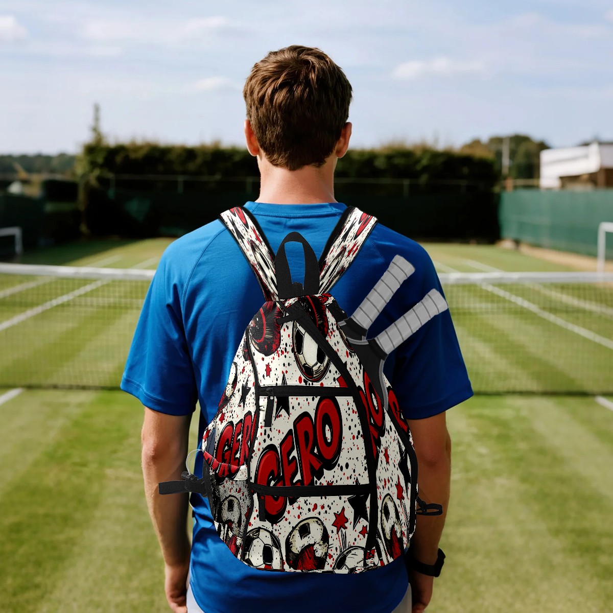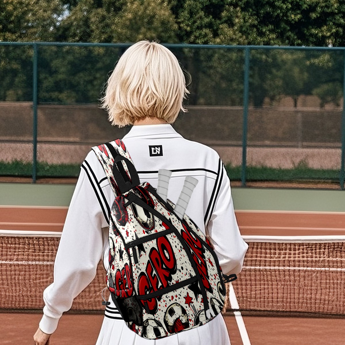 Pickleball Shoulder Bag for Men and Women - Fence Hook - Crossbody Backpack with Water Bottle Holder GERO (Polka Dot Soccer)