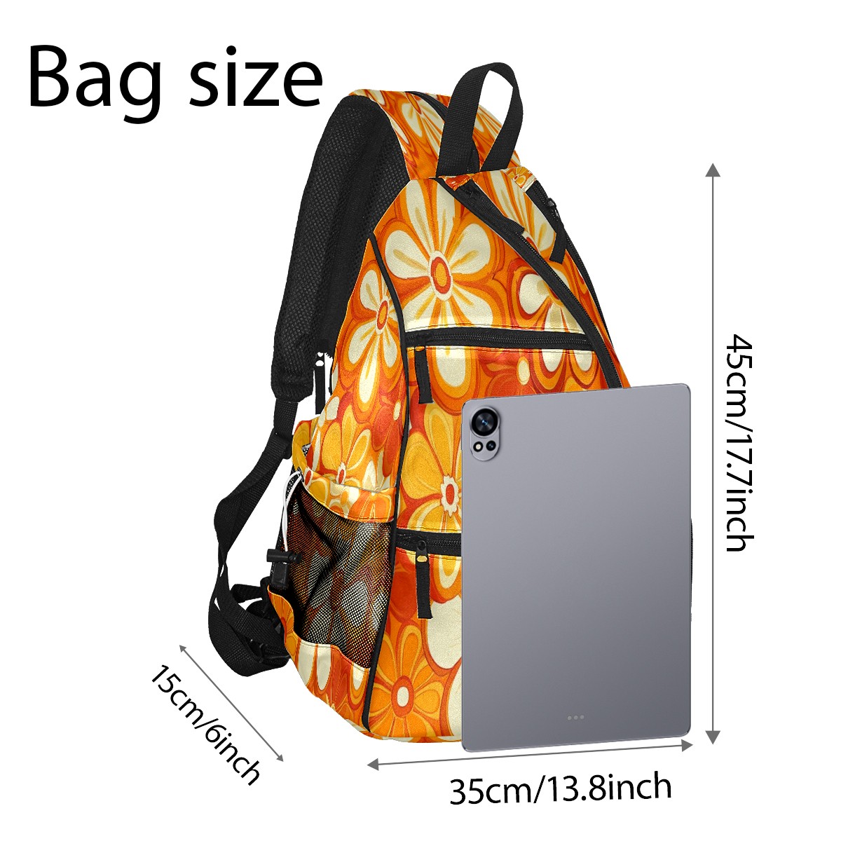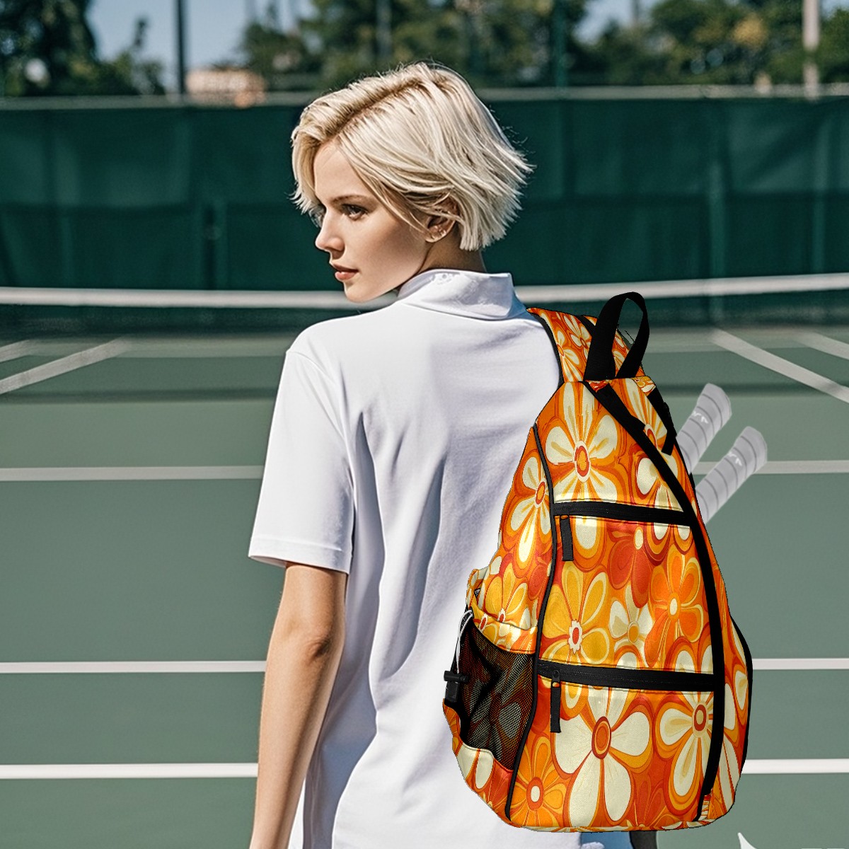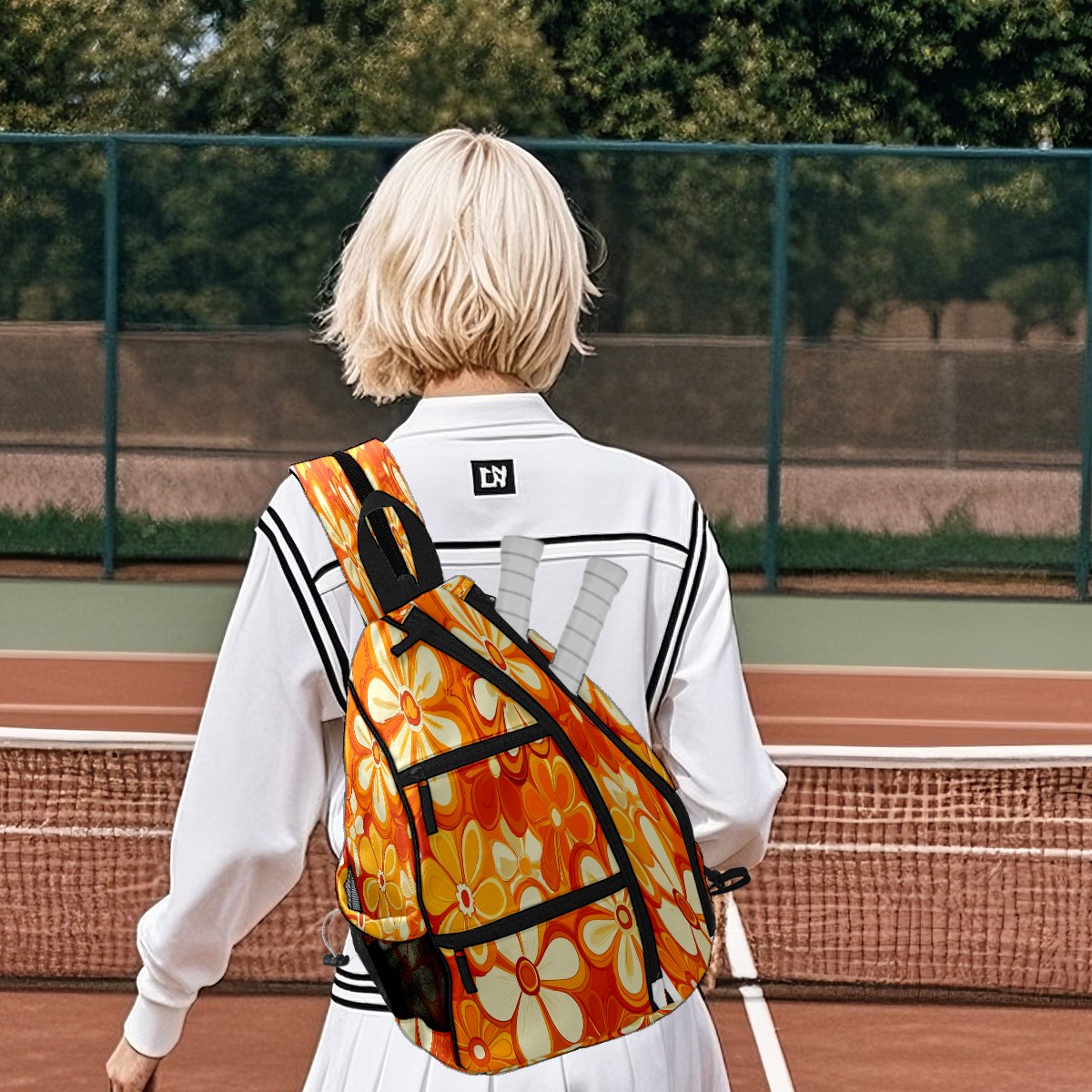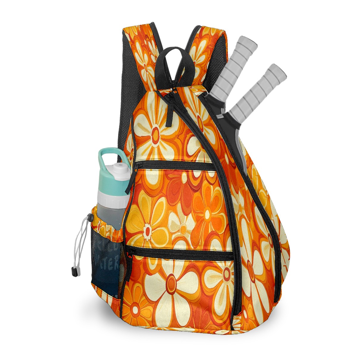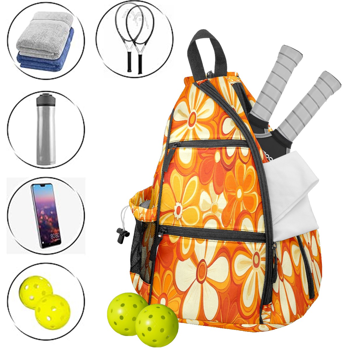 Pickleball Shoulder Bag for Men and Women - Fence Hook - Crossbody Backpack with Water Bottle Holder Orange Flowers