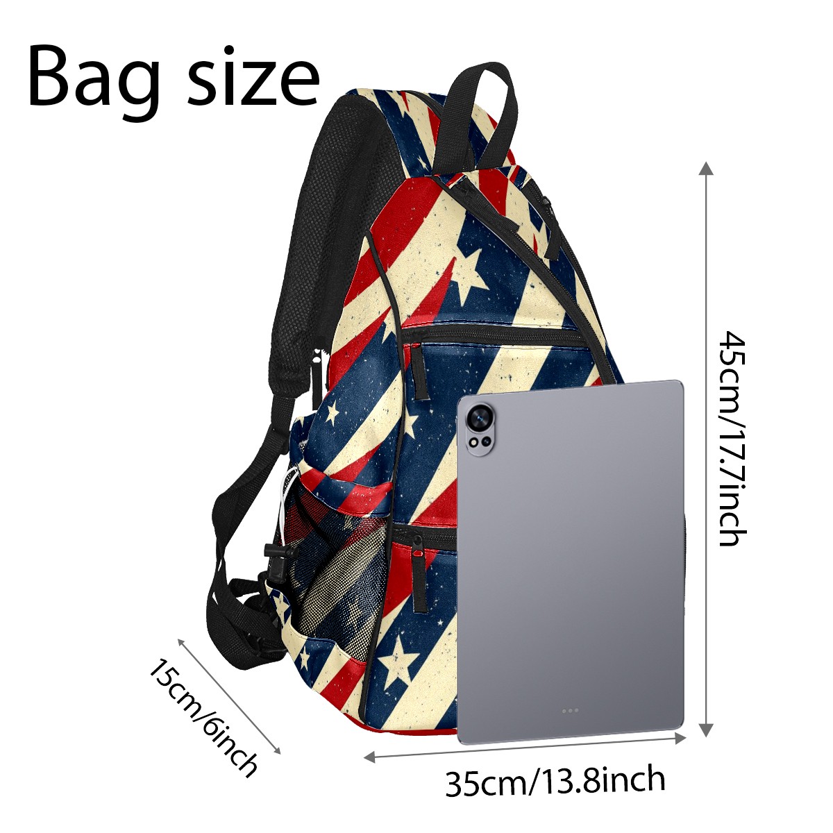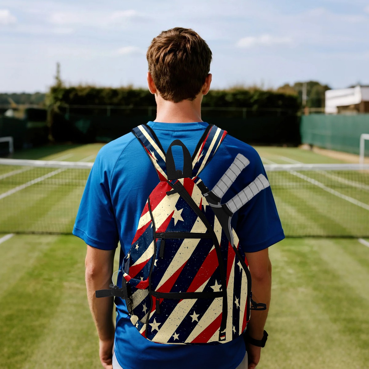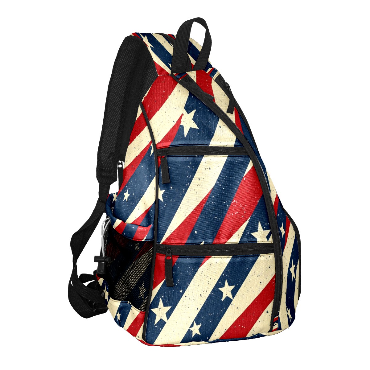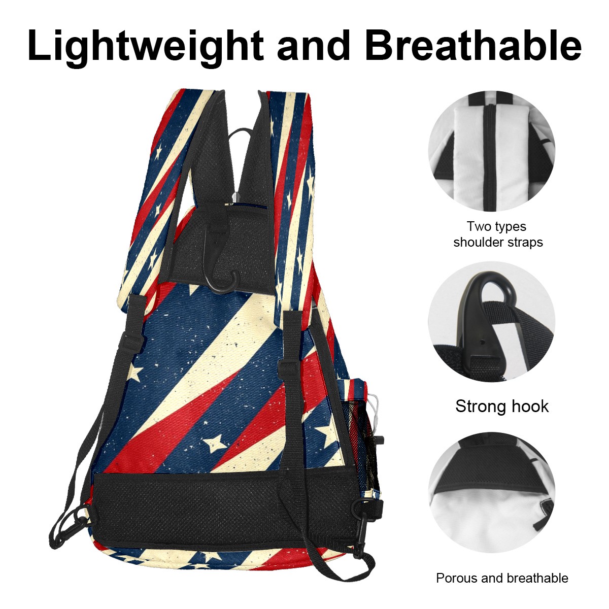 Pickleball Shoulder Bag for Men and Women - Fence Hook - Crossbody Backpack with Water Bottle Holder Red Blue White Stripes