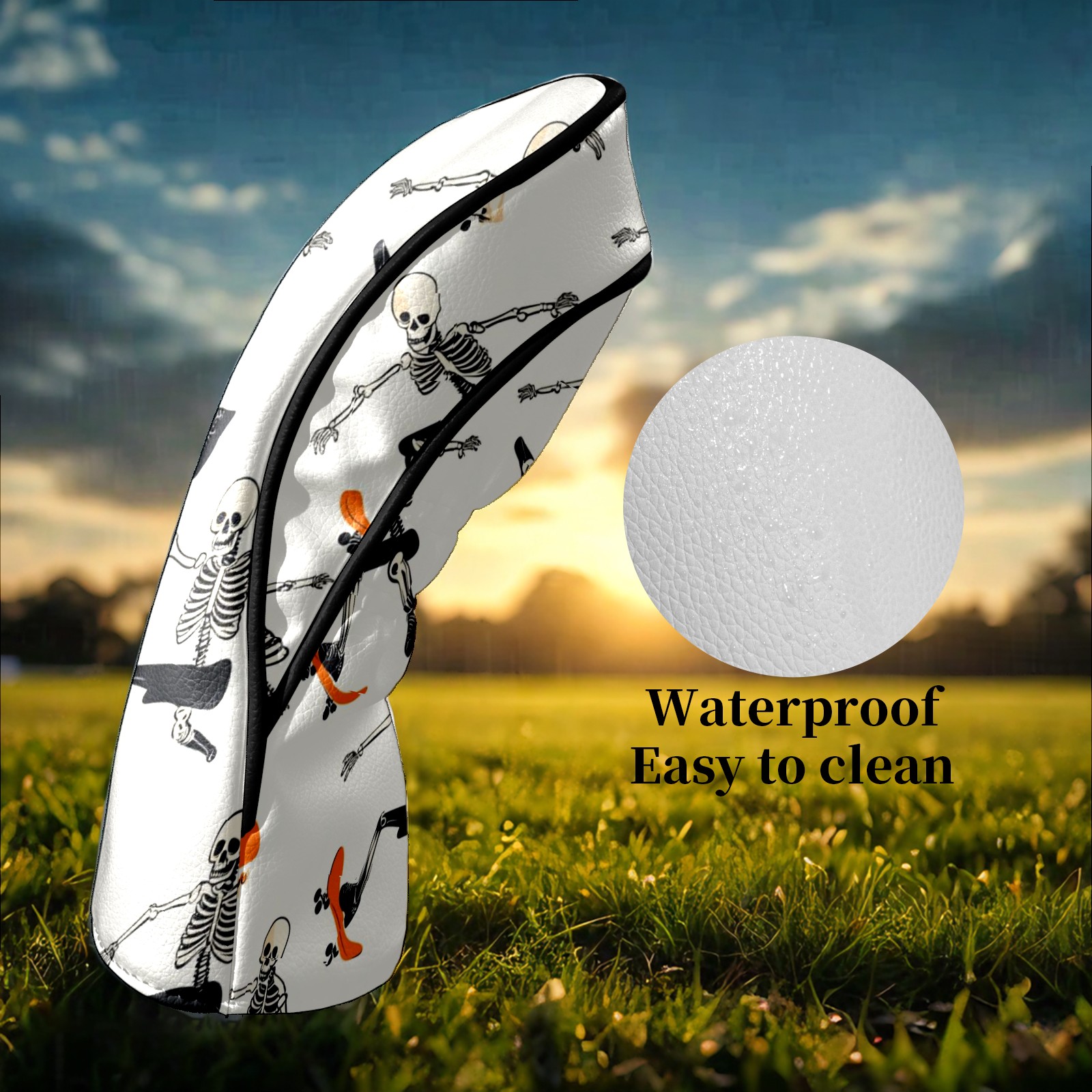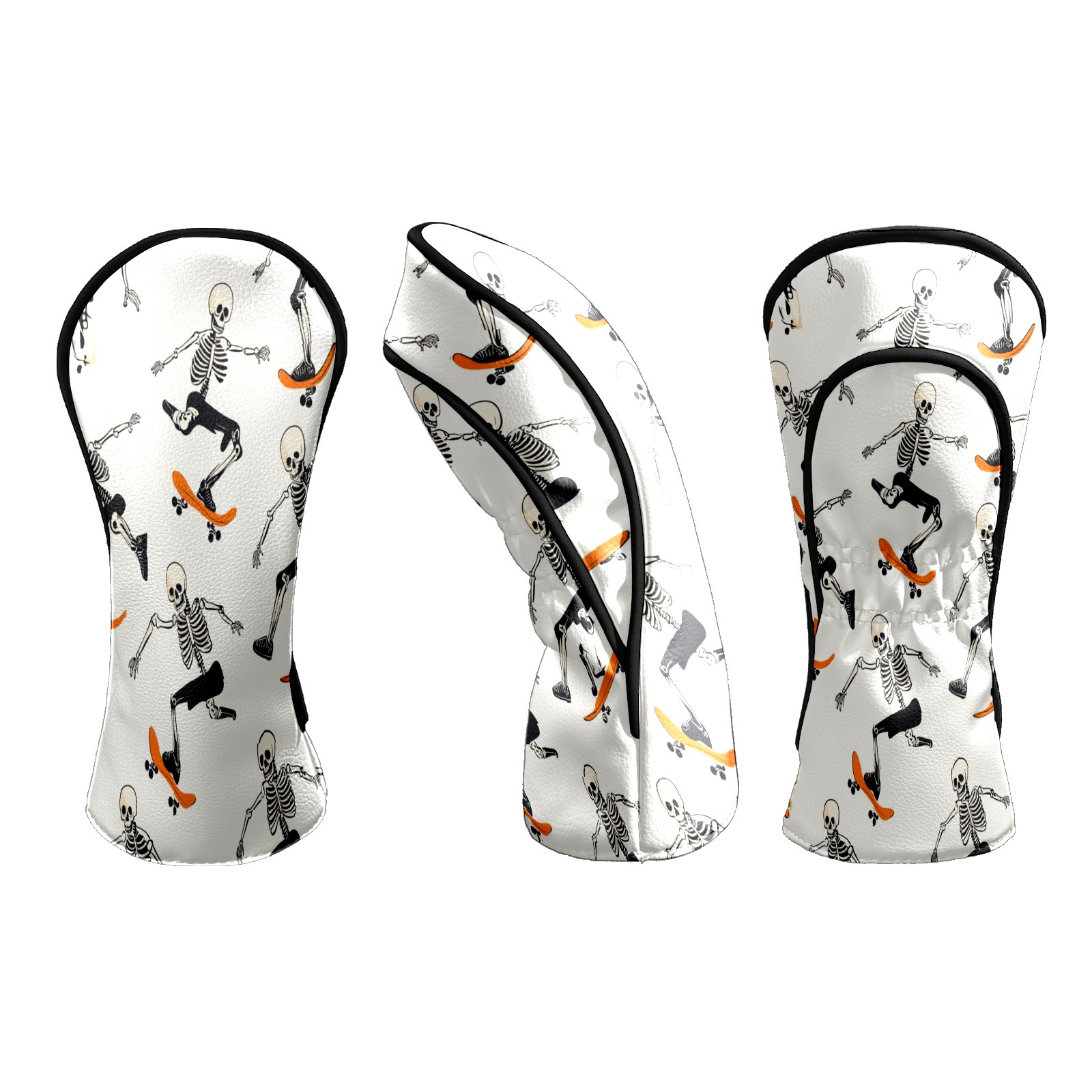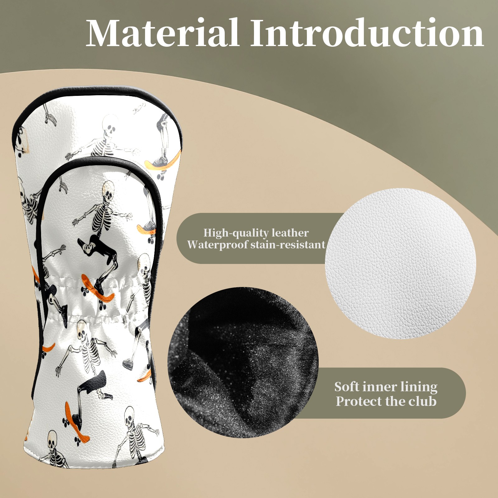Premium Leather Golf Club Headcovers,Black Skull Fits Driver Hybrid Fairway 3/5 Wood,with Scratch-Resistant Lining, Gift for Men and Women