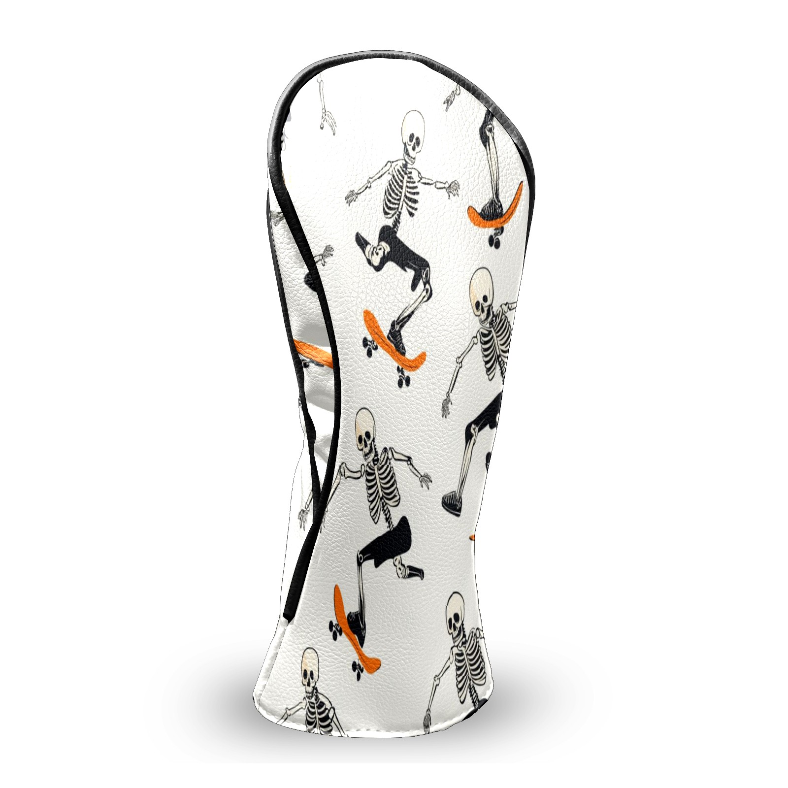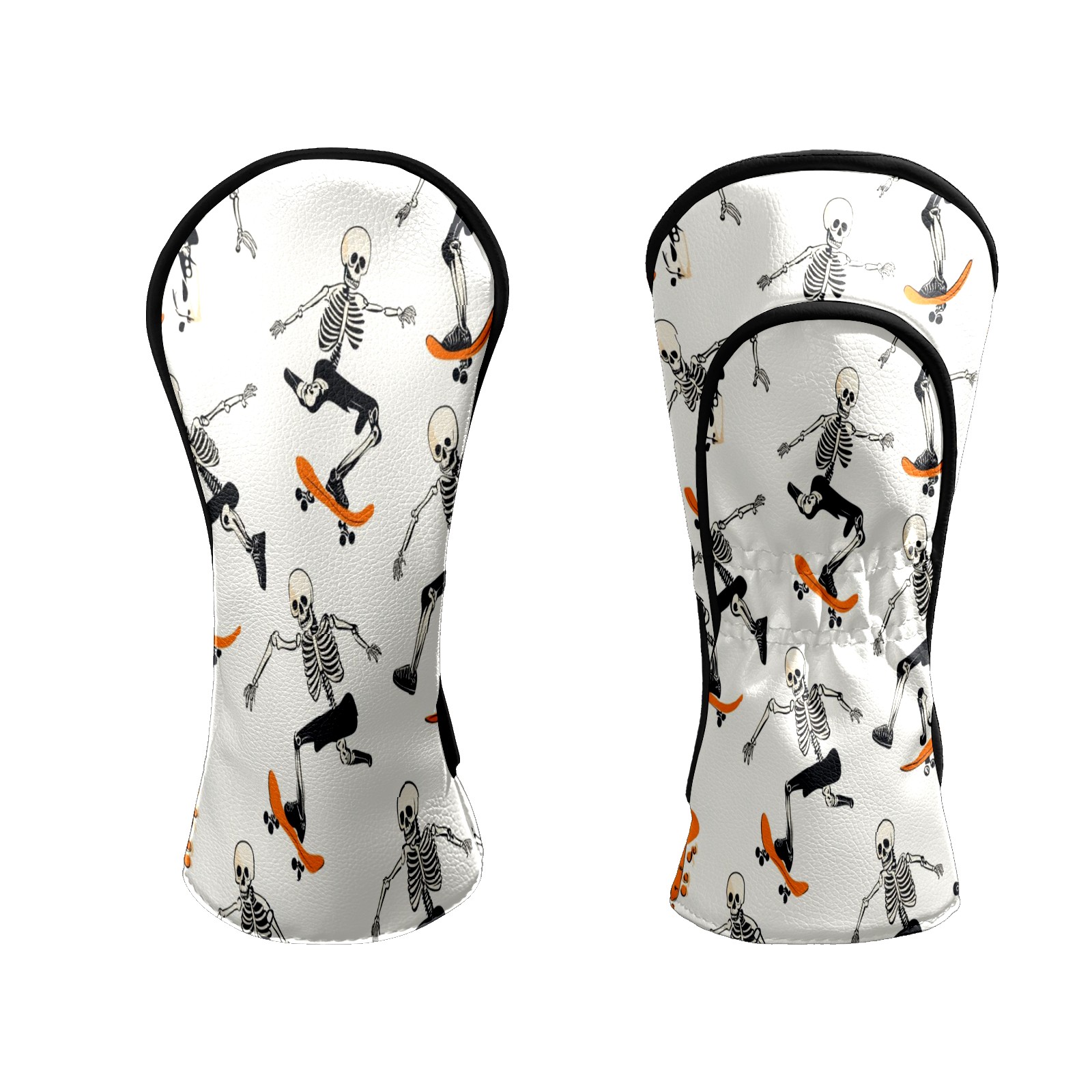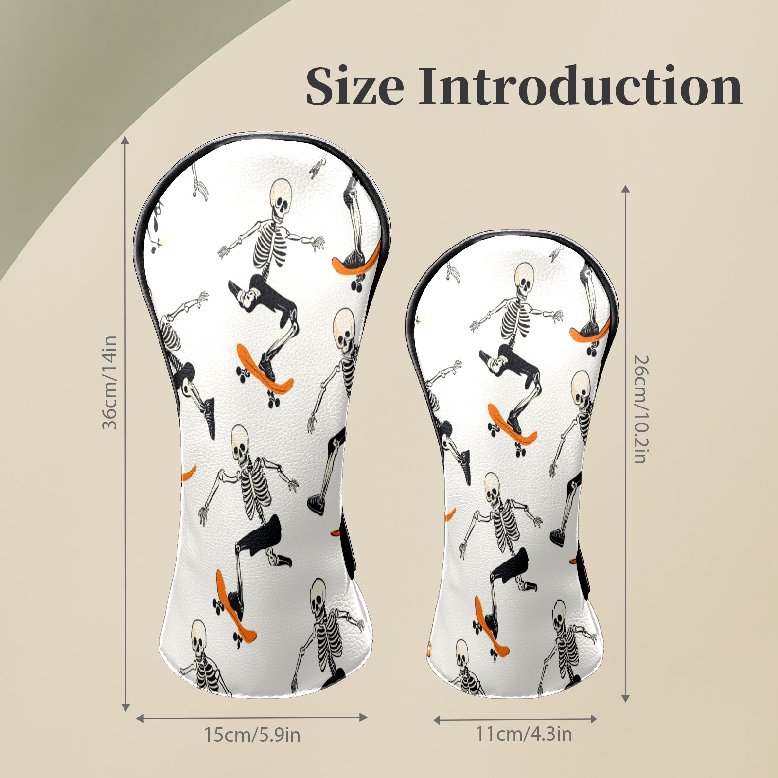 Premium Leather Golf Club Headcovers,Black Skull Fits Driver Hybrid Fairway 3/5 Wood,with Scratch-Resistant Lining, Gift for Men and Women