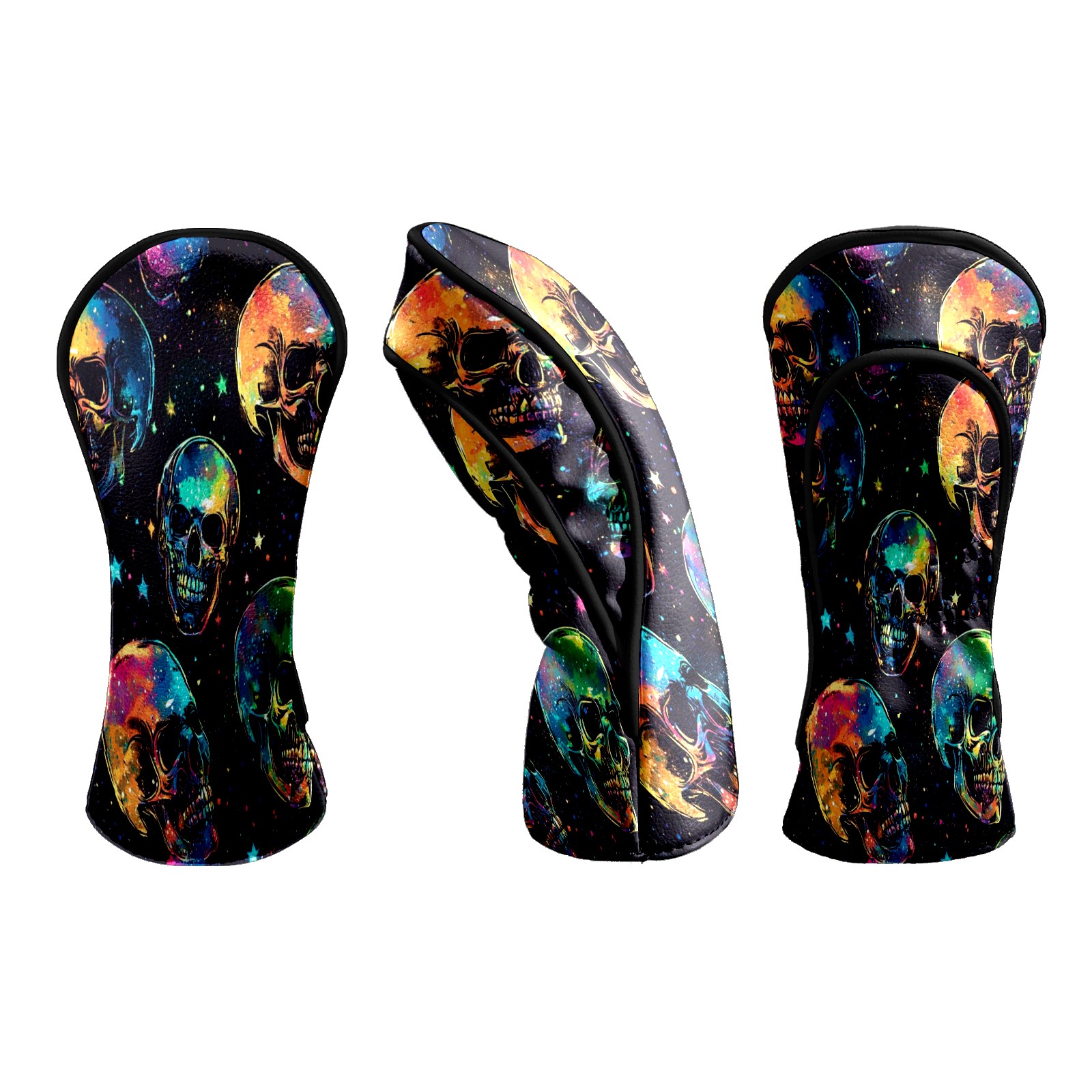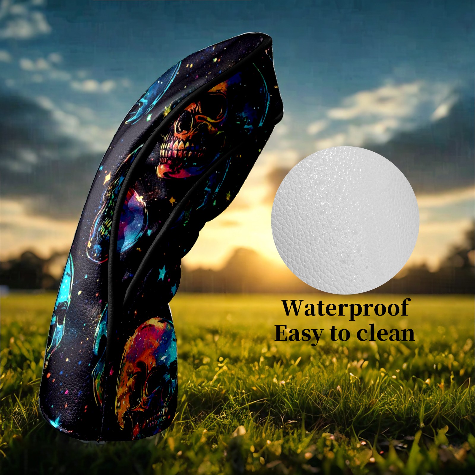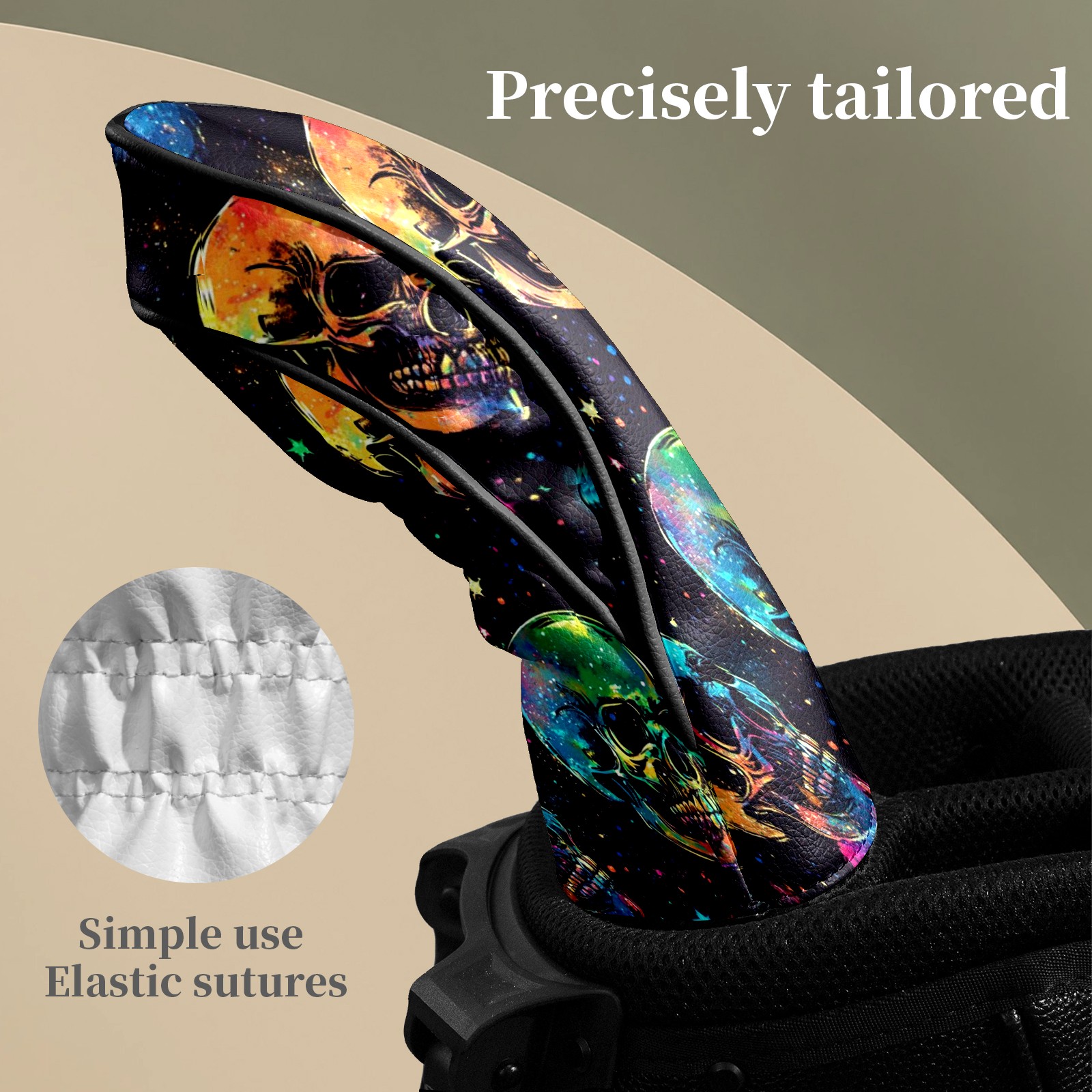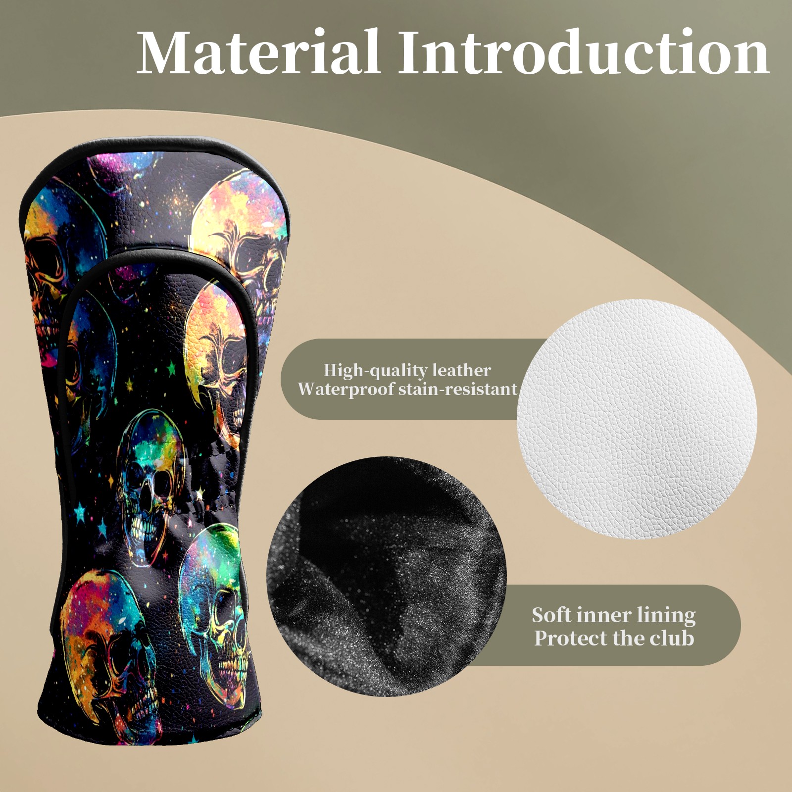 Premium Leather Golf Club Headcovers,Skull Fits Driver Hybrid Fairway 3/5 Wood,with Scratch-Resistant Lining, Gift for Men and Women