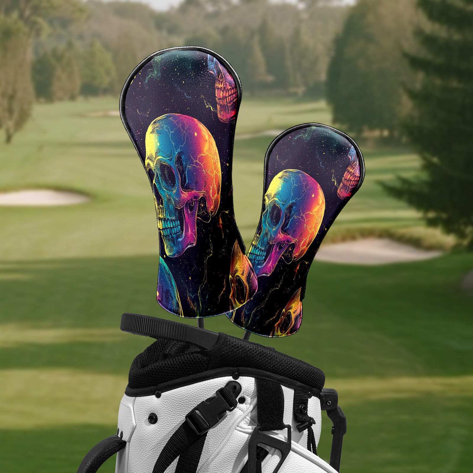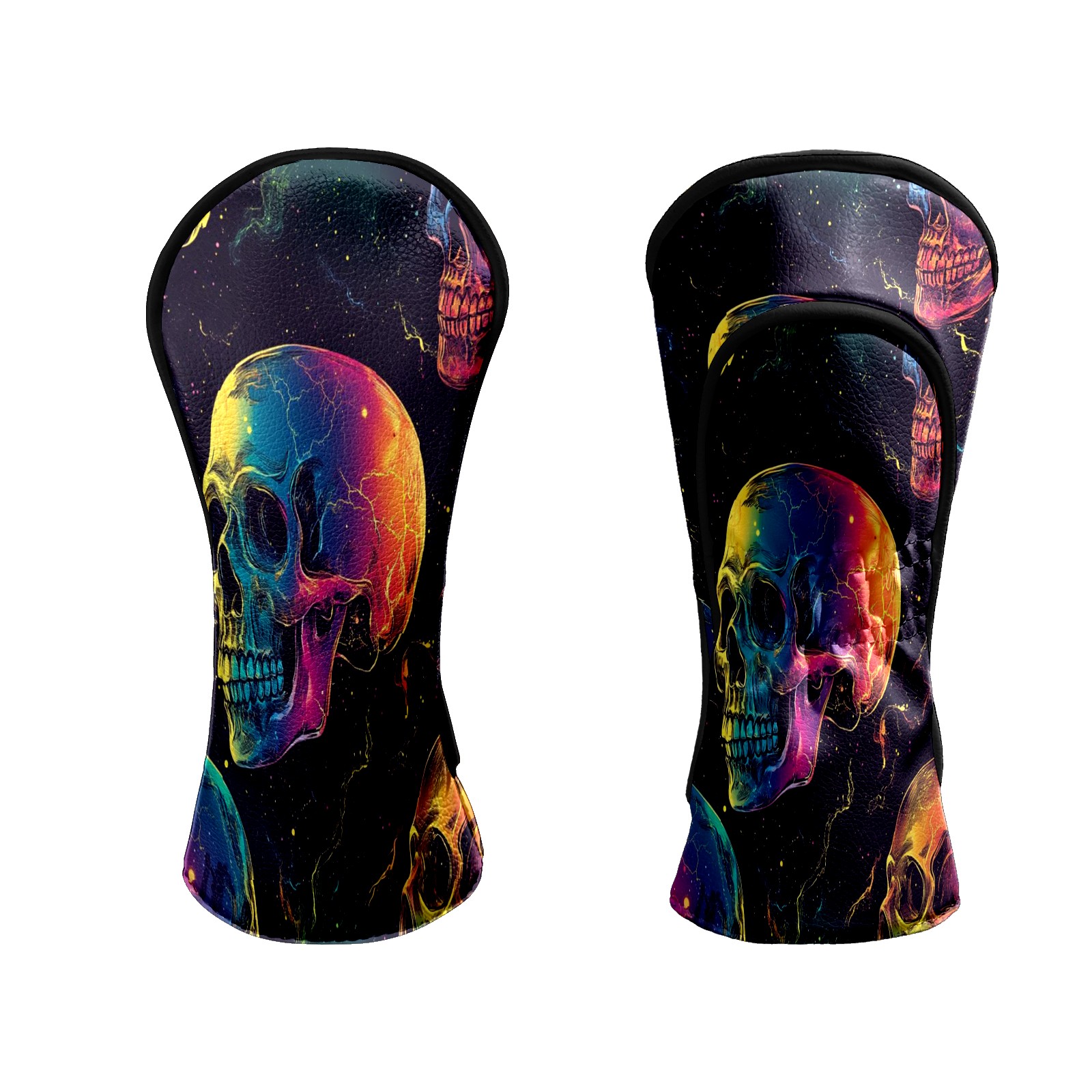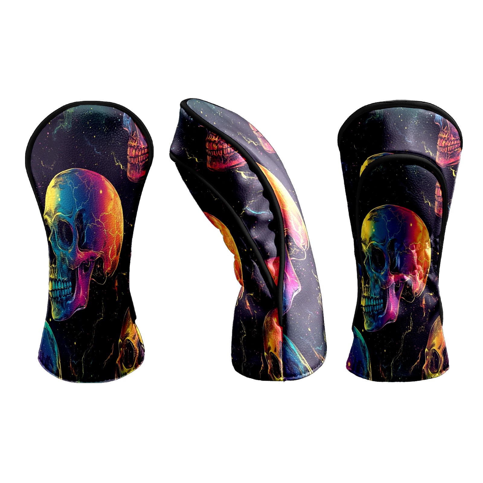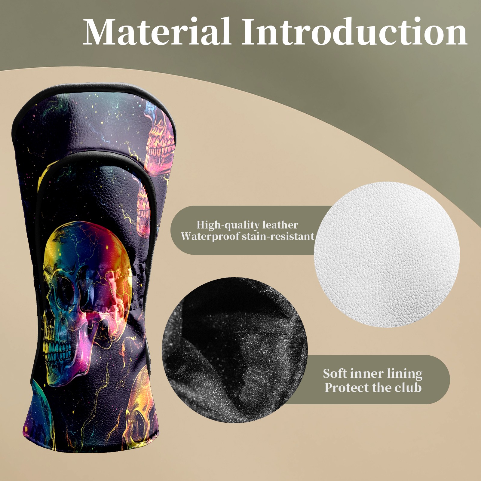 Premium Leather Golf Club Headcovers,Colorful Skull Fits Driver Hybrid Fairway 3/5 Wood,with Scratch-Resistant Lining, Gift for Men and Women