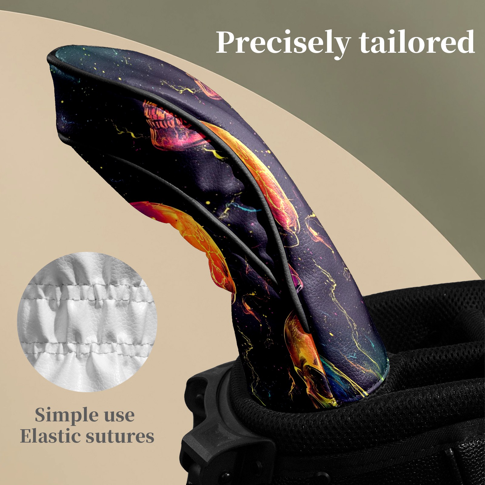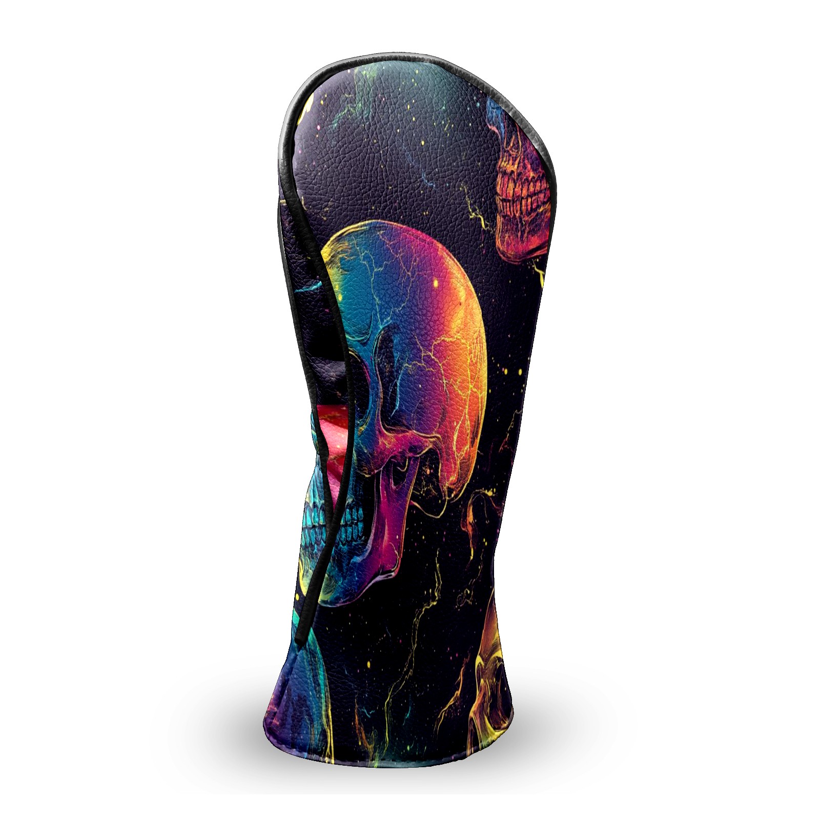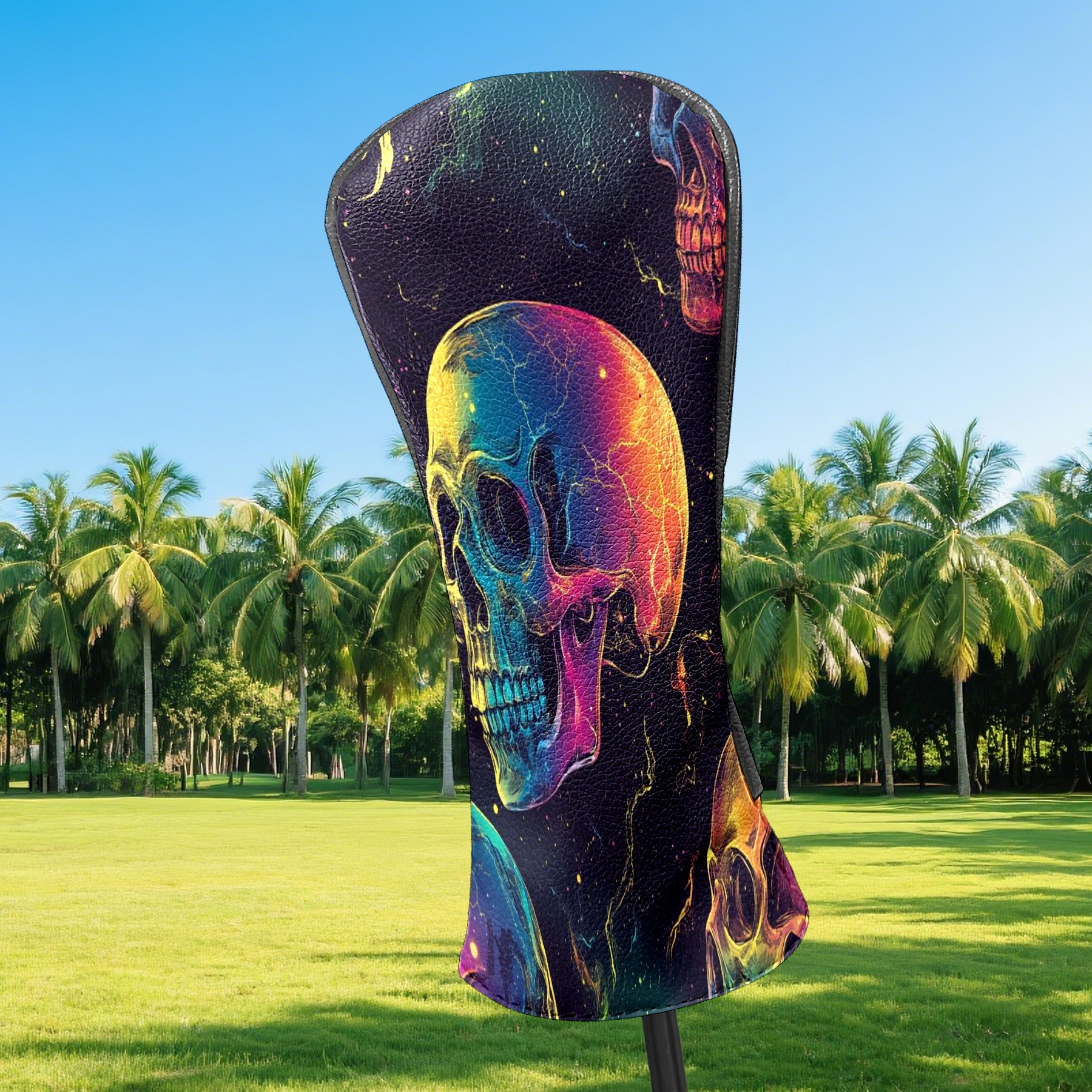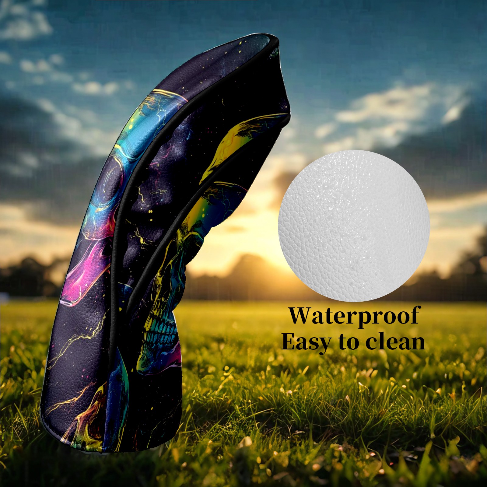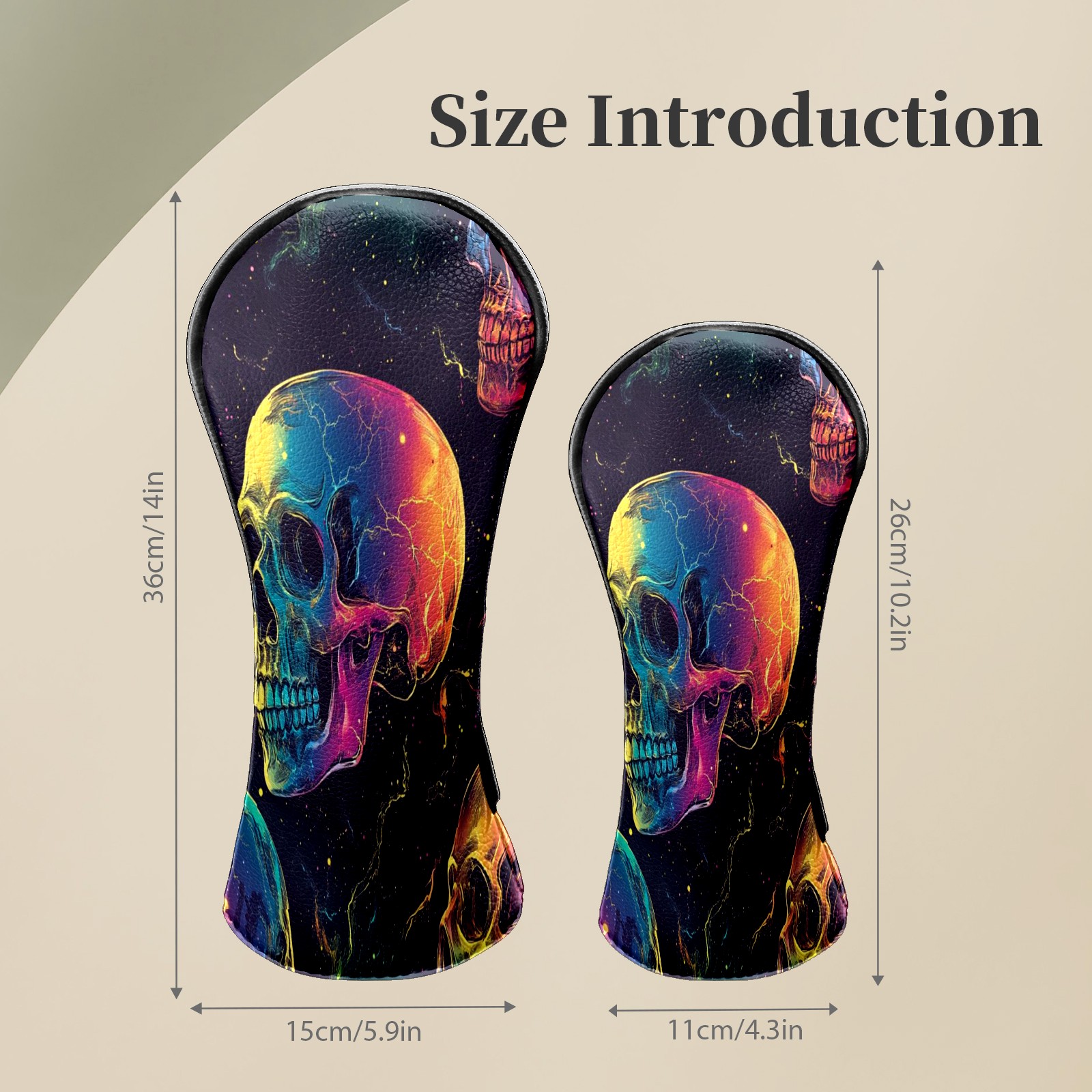 Premium Leather Golf Club Headcovers,Colorful Skull Fits Driver Hybrid Fairway 3/5 Wood,with Scratch-Resistant Lining, Gift for Men and Women