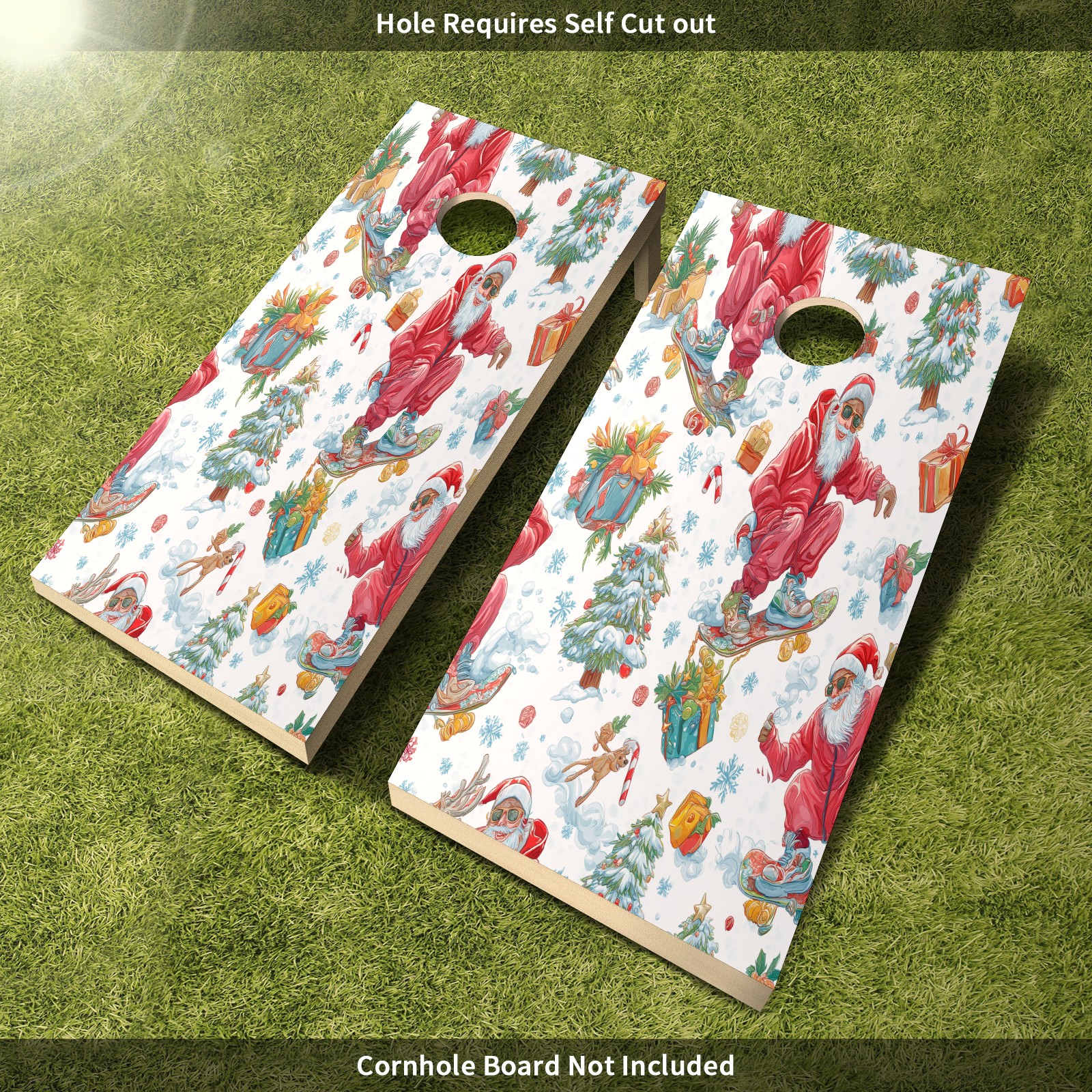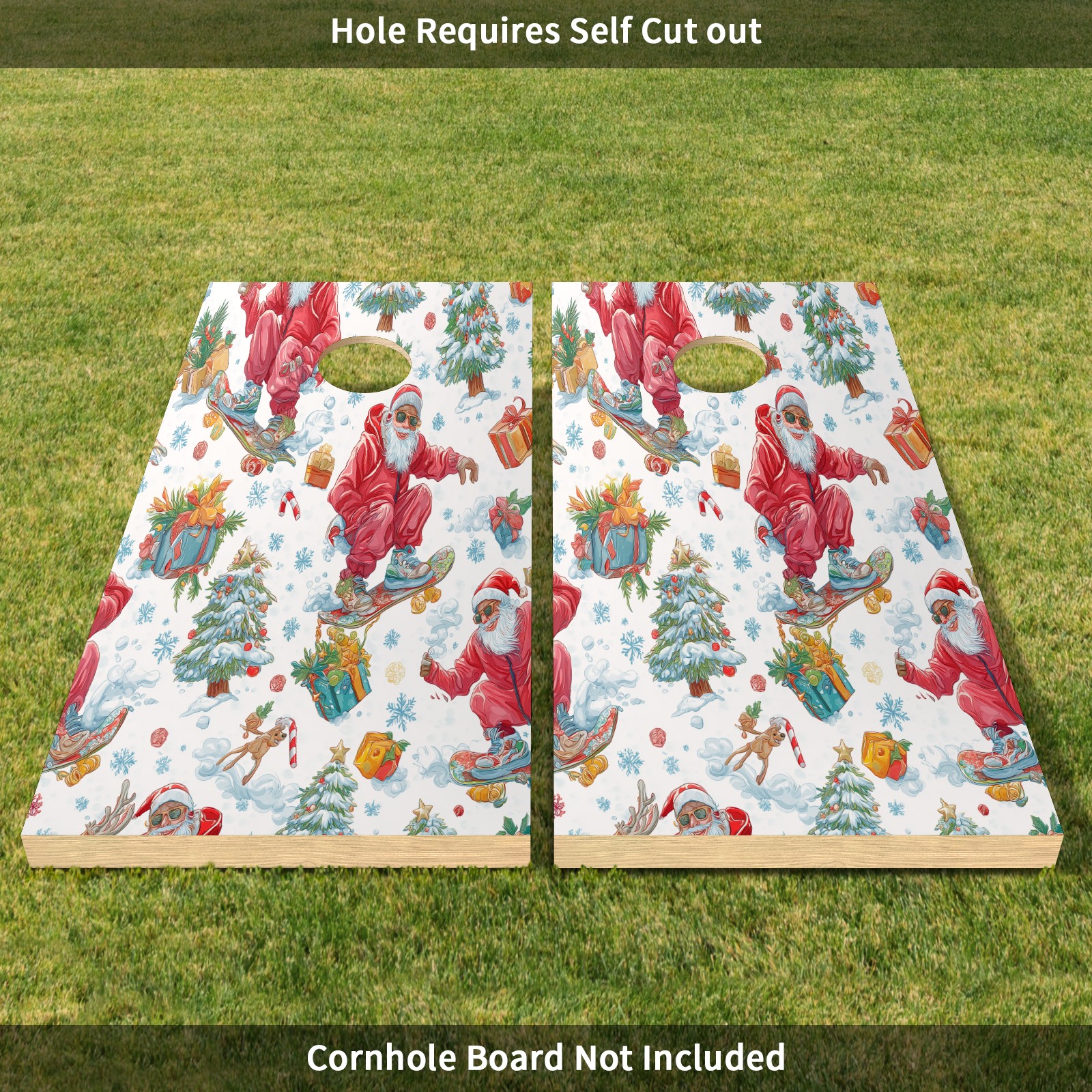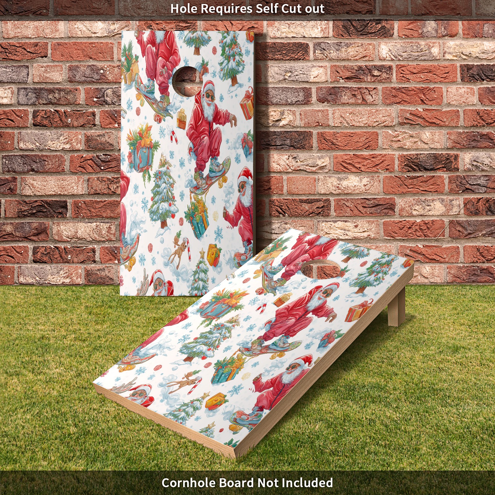<p>Elevate Your Game with Premium Cornhole Board Wraps!Tired of your plain cornhole boards?</p><p>Our premium vinyl sticker set is the easiest and most affordable way to give them a stunning, personalized upgrade!</p><ul><li>PERFECT FIT - Includes two full-size (4ft x 2ft) vinyl sheets, designed to cover standard cornhole boards. </li><li>EASY DIY APPLICATION - Just clean, peel, and stick! The hole can be easily cut out by yourself for a perfect custom fit. DURABLE & WATERPROOF - Made of high-quality PET material, our sticker is waterproof and weather-resistant, built to last through countless outdoor games and parties. </li><li>INSTANT MAKEOVER - Breathe new life into your old set or customize a plain one. Perfect for tailgates, backyard BBQs, beaches, and family gatherings. </li></ul><p>Package Includes: 2 x Cornhole Board Stickers (Board NOT Included)</p>