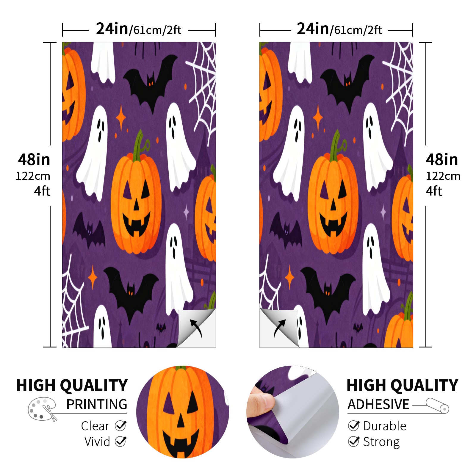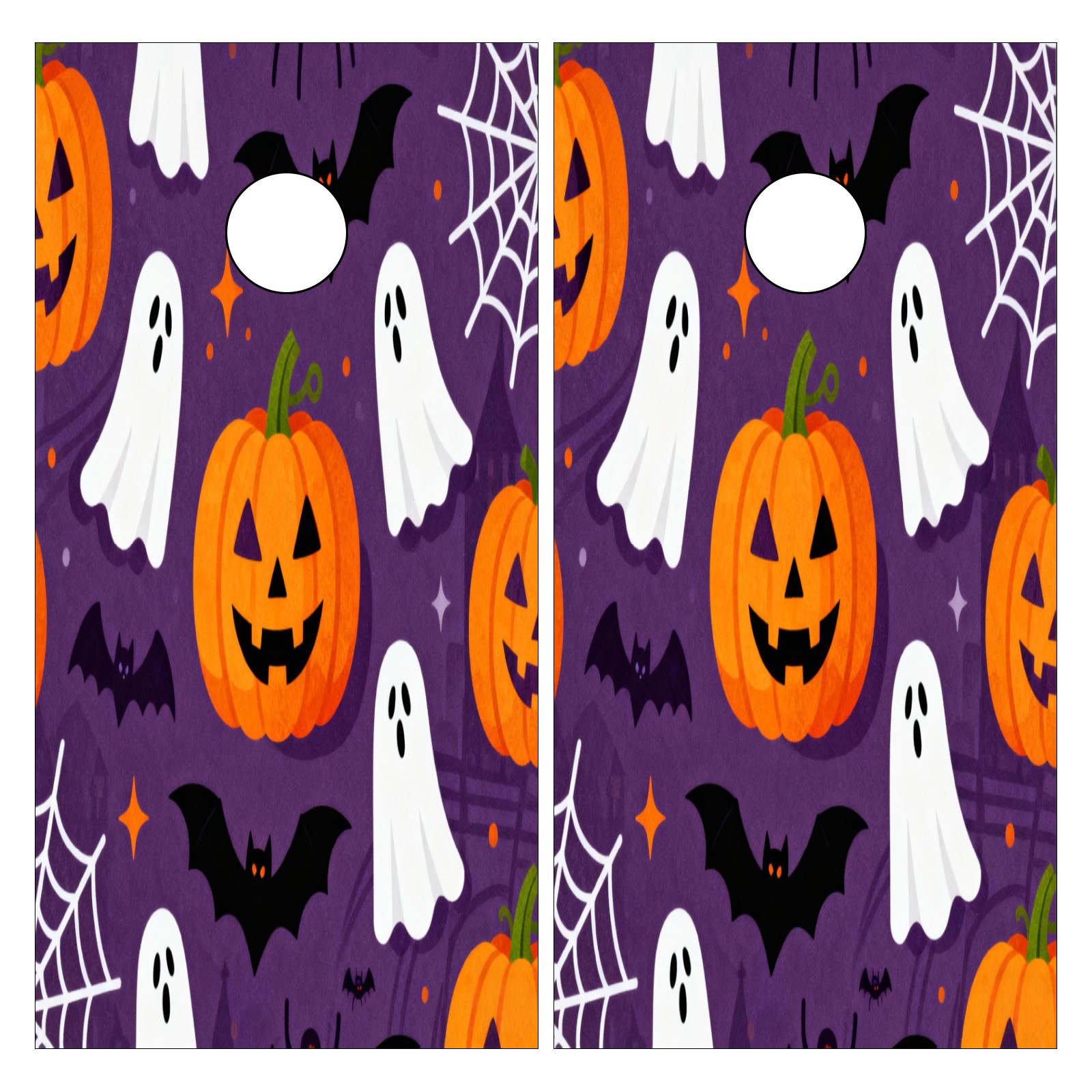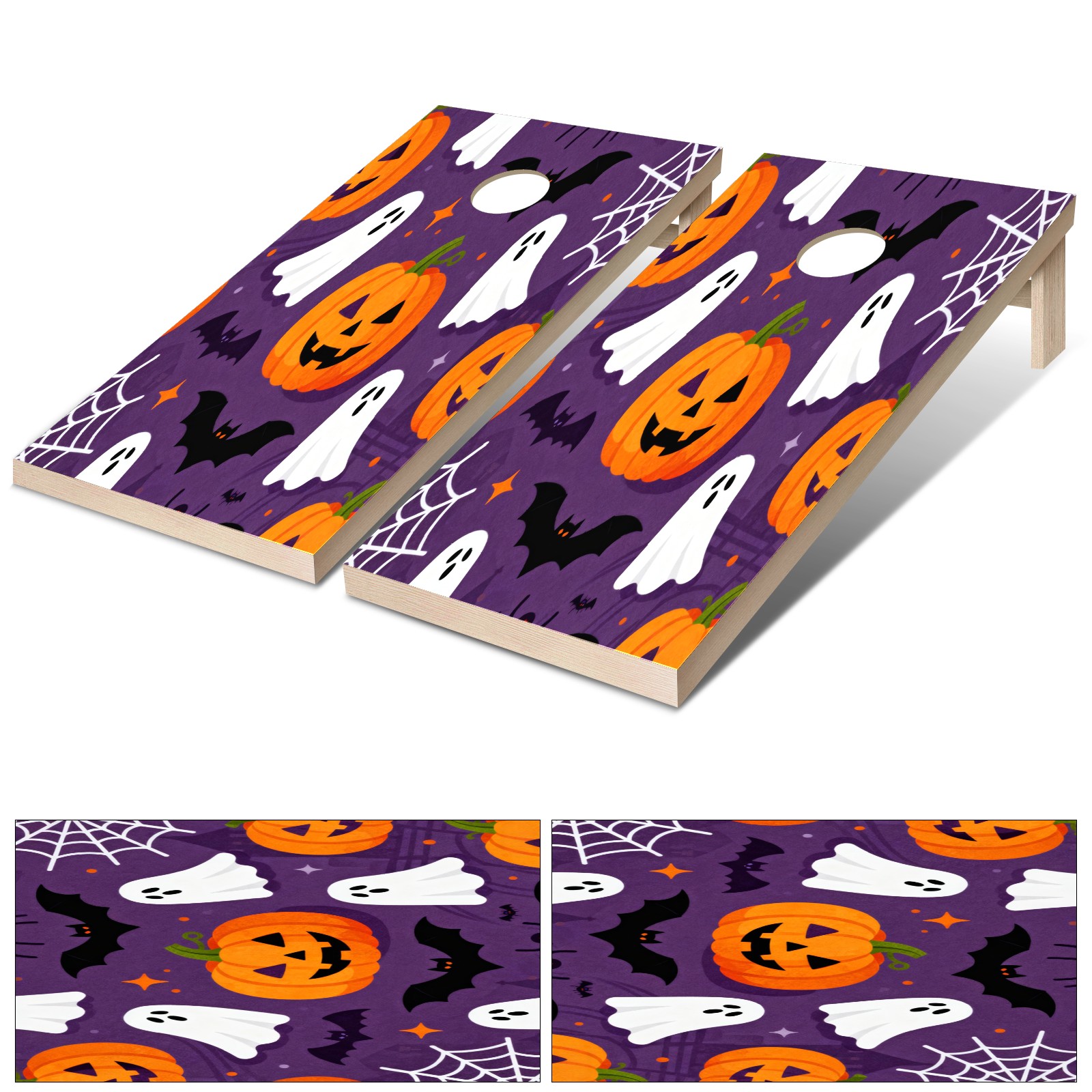 Cornhole Board Vinyl Wrap, 2-Pack Full-Size 4ft x 2ft Decal Sticker Set, Waterproof PET Material for DIY Replacement & Decoration, Easy to Apply for Indoor Outdoor Cornhole Game Purple Halloween Pumpkins