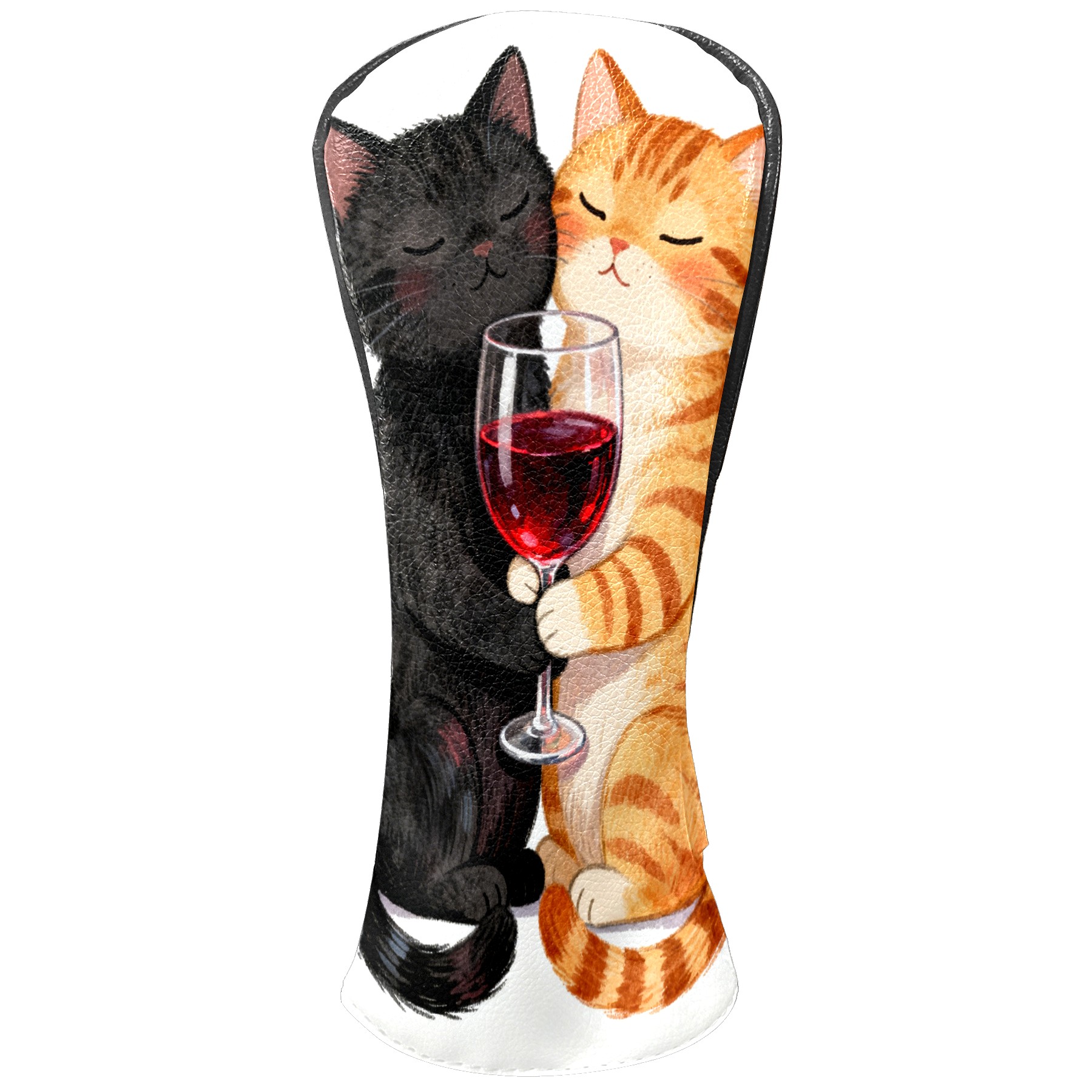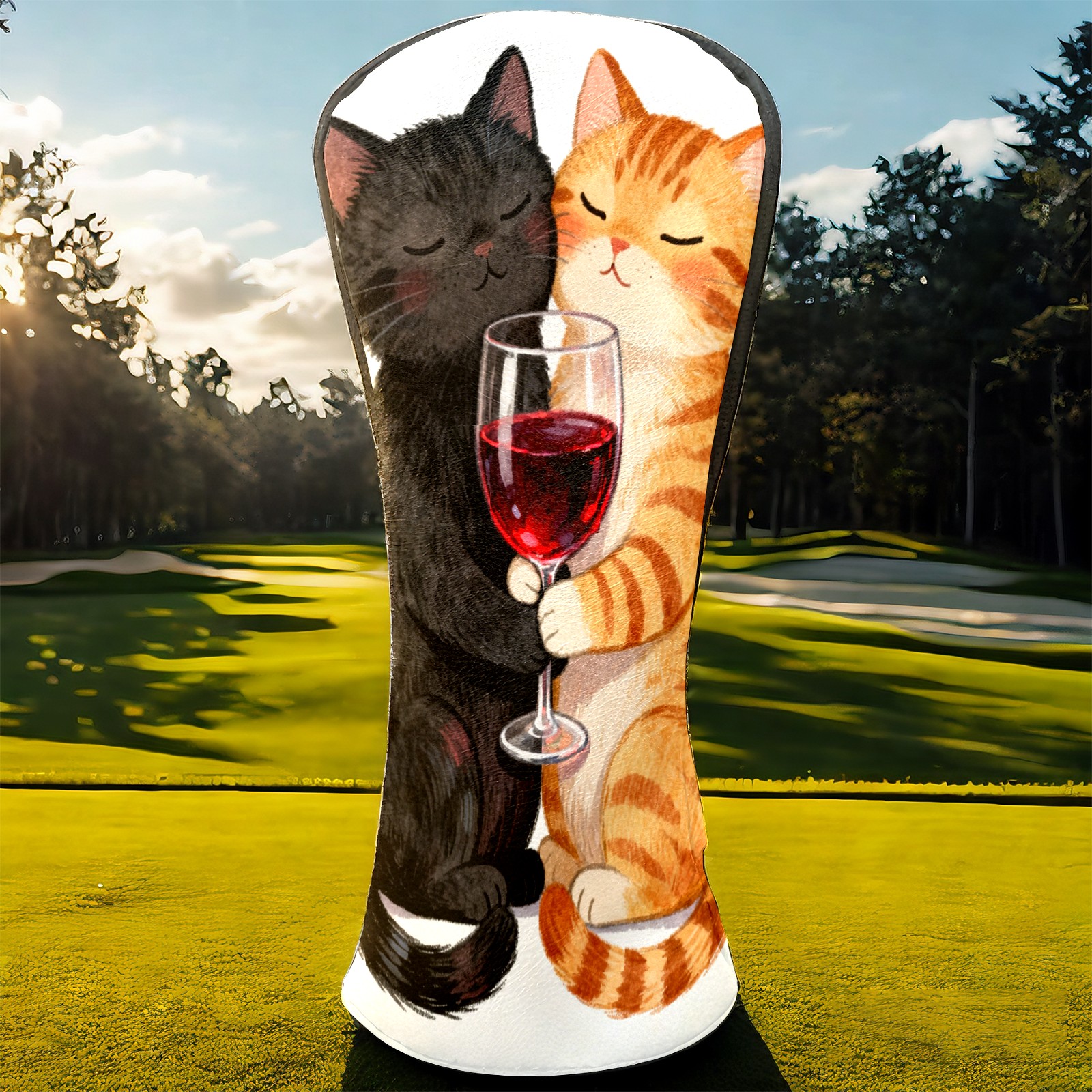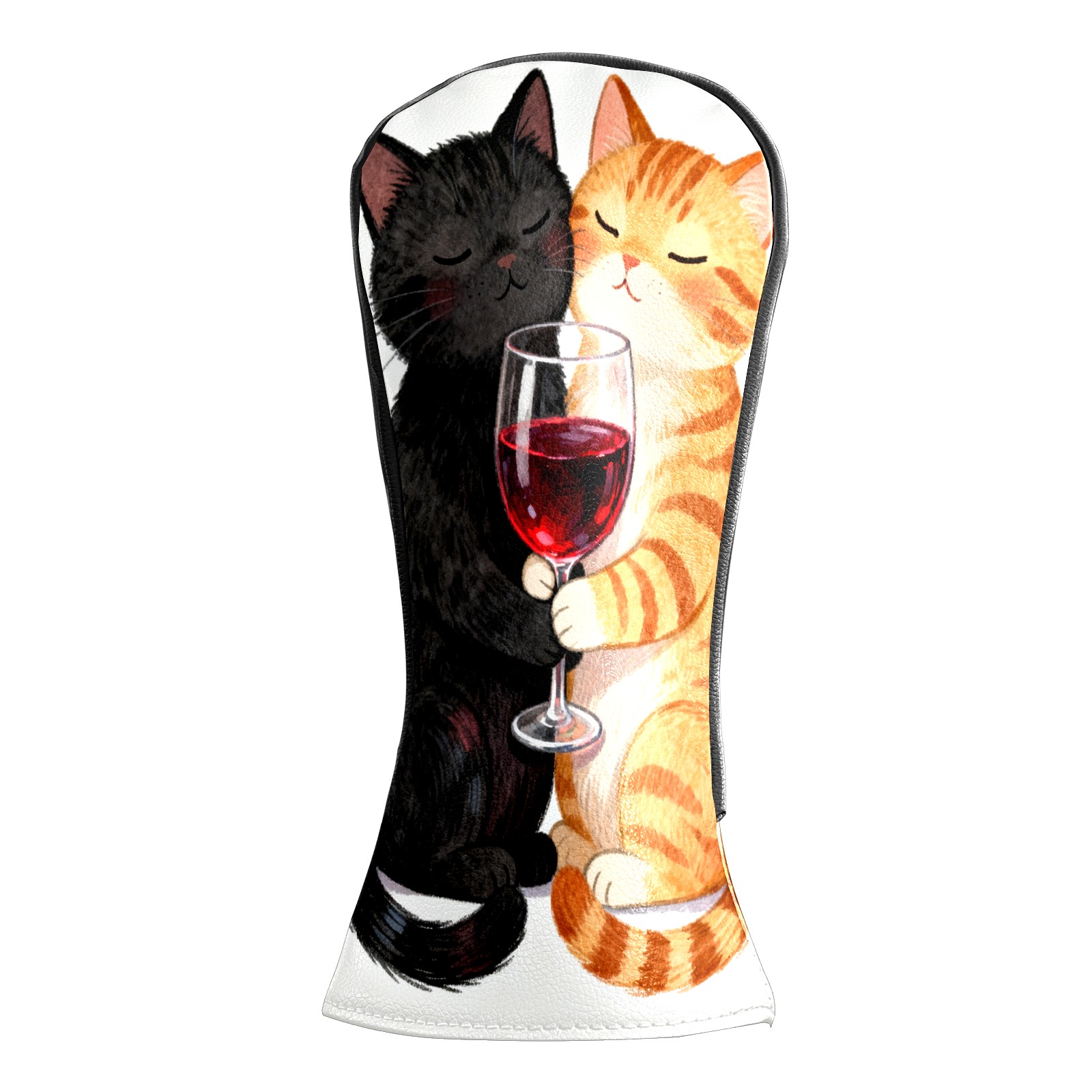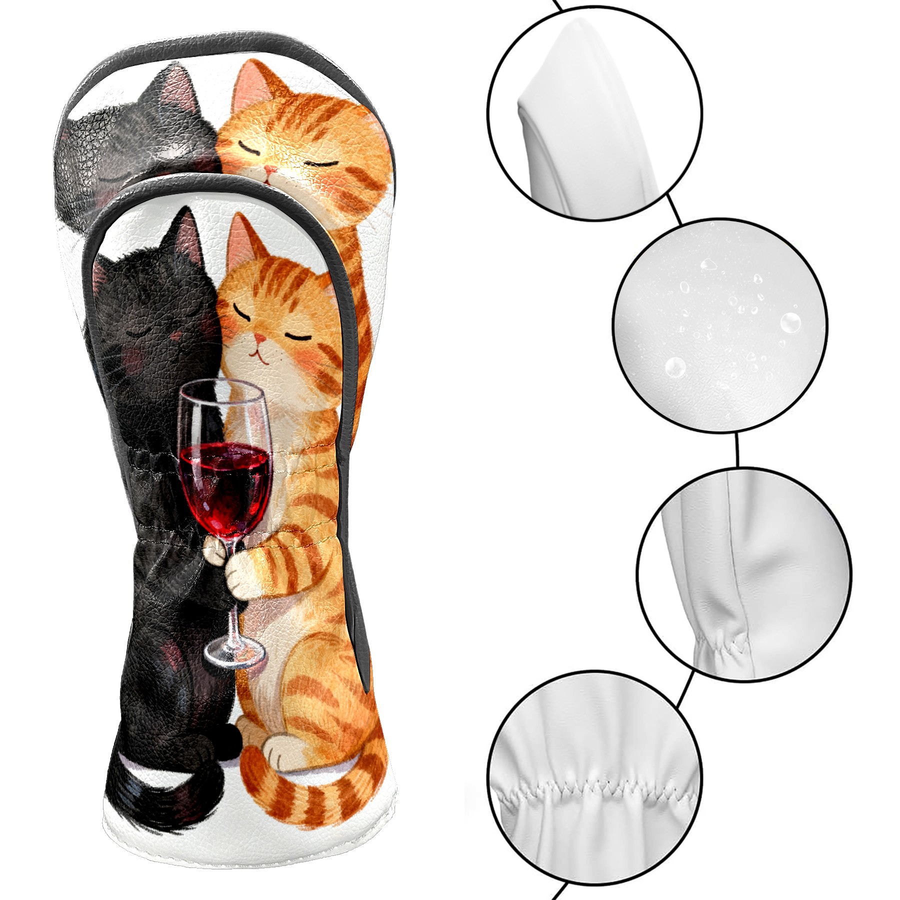 Golf Head Covers Leather Driver Headcovers, Premium Golf Club Covers with Anti-Scratch Lining 1/3/5 Wood Cover for golf clubs for Women Men (Jimeng-2025-10-20-5246-手绘插画风格的温馨场景,画面中央是两只可爱的猫咪相拥依偎,左边是一只纯黑色的小猫...)