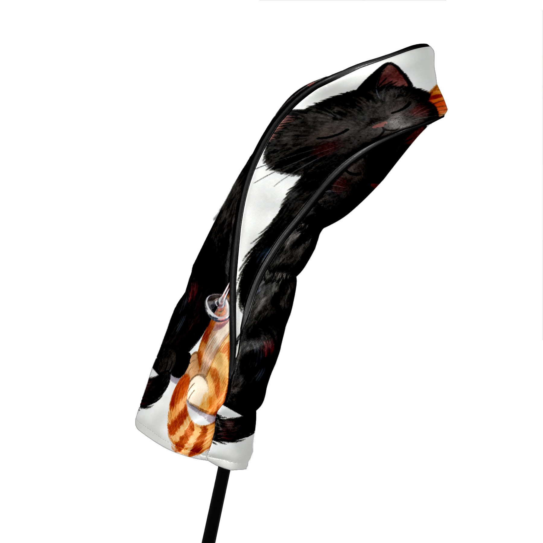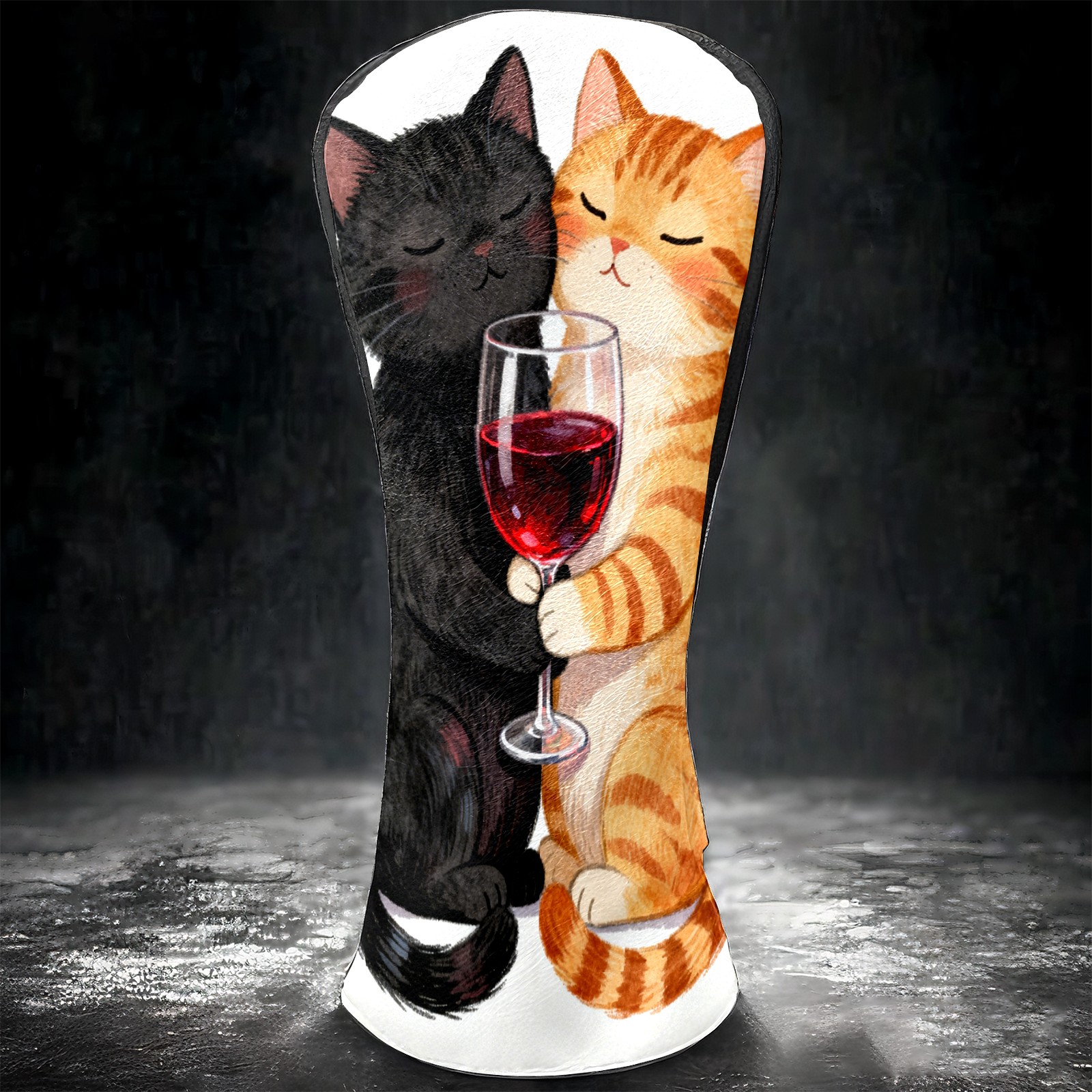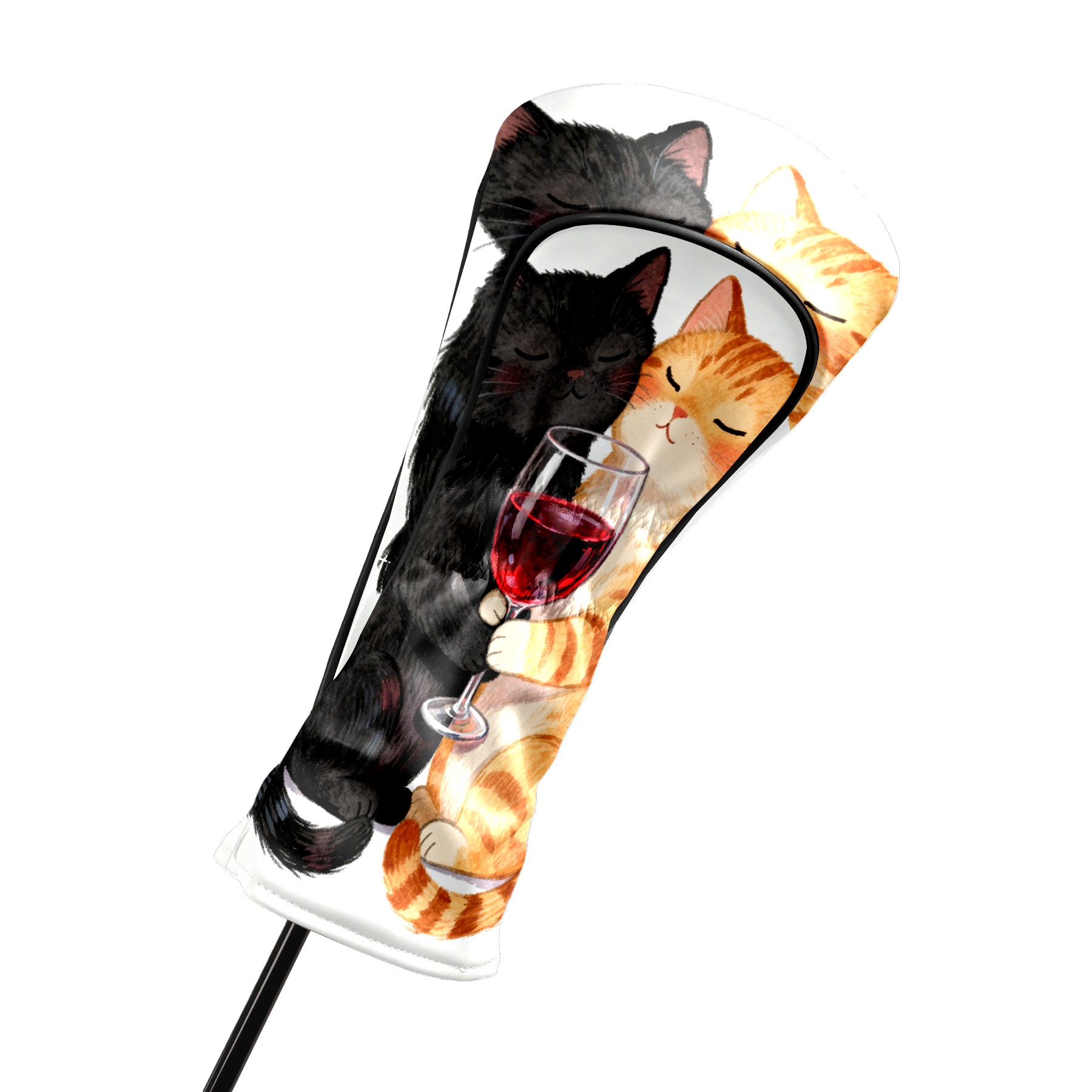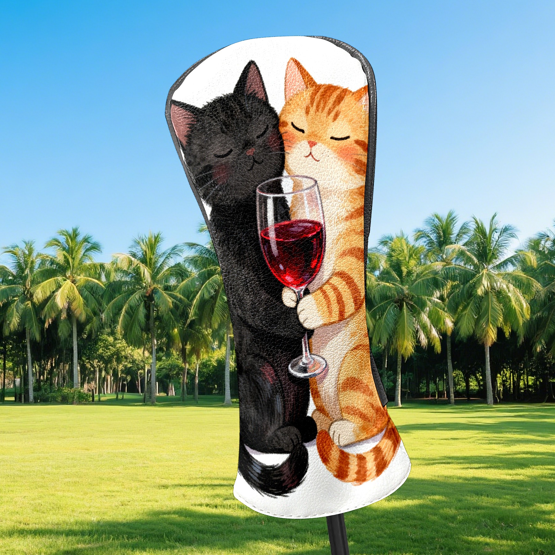 Golf Head Covers Leather Driver Headcovers, Premium Golf Club Covers with Anti-Scratch Lining 1/3/5 Wood Cover for golf clubs for Women Men (Jimeng-2025-10-20-5246-手绘插画风格的温馨场景,画面中央是两只可爱的猫咪相拥依偎,左边是一只纯黑色的小猫...)