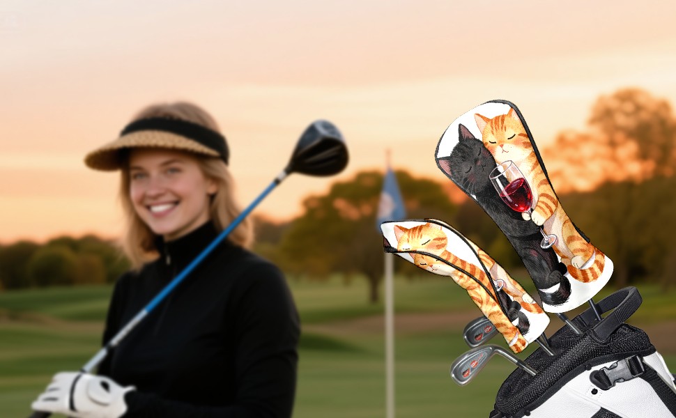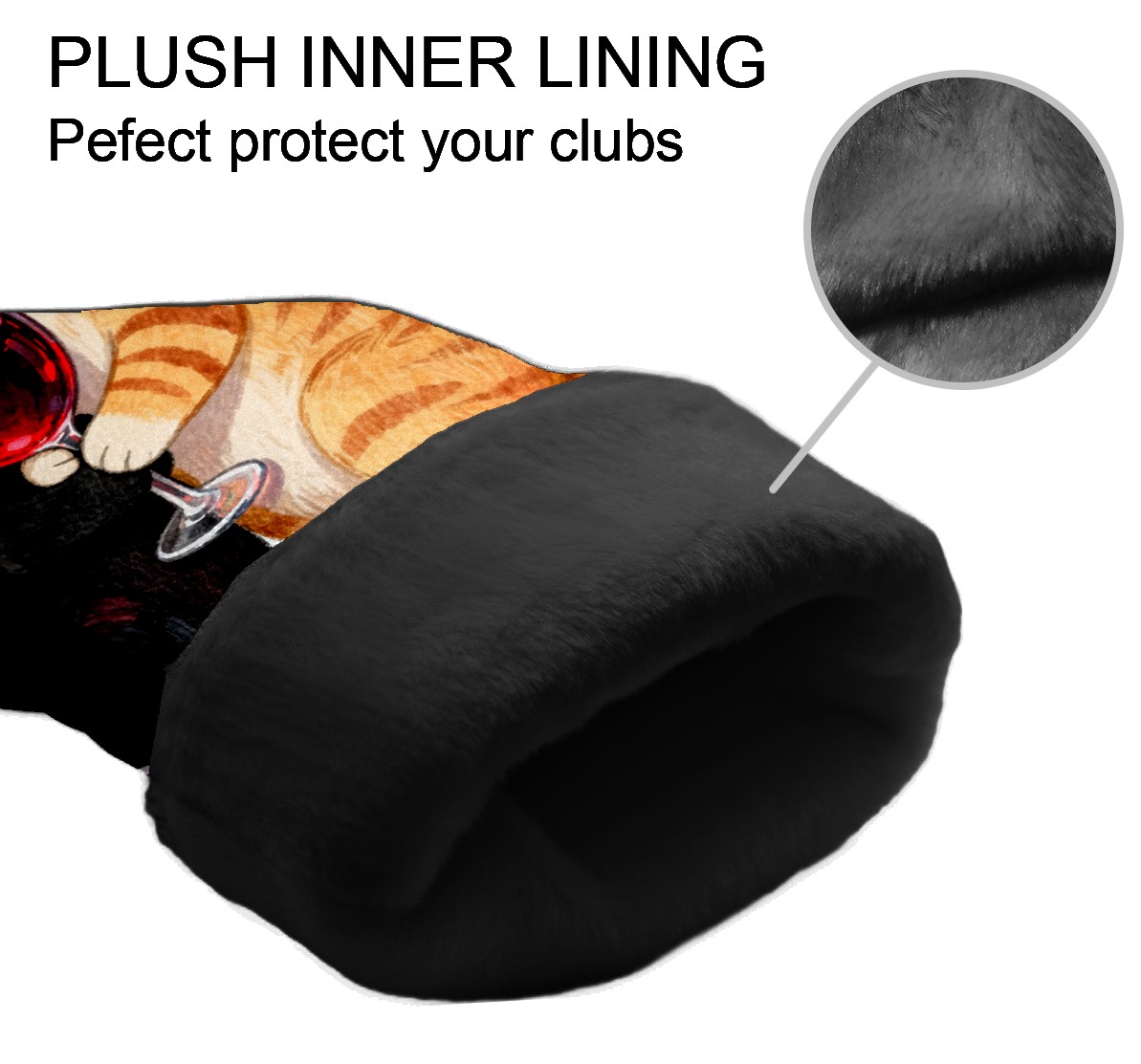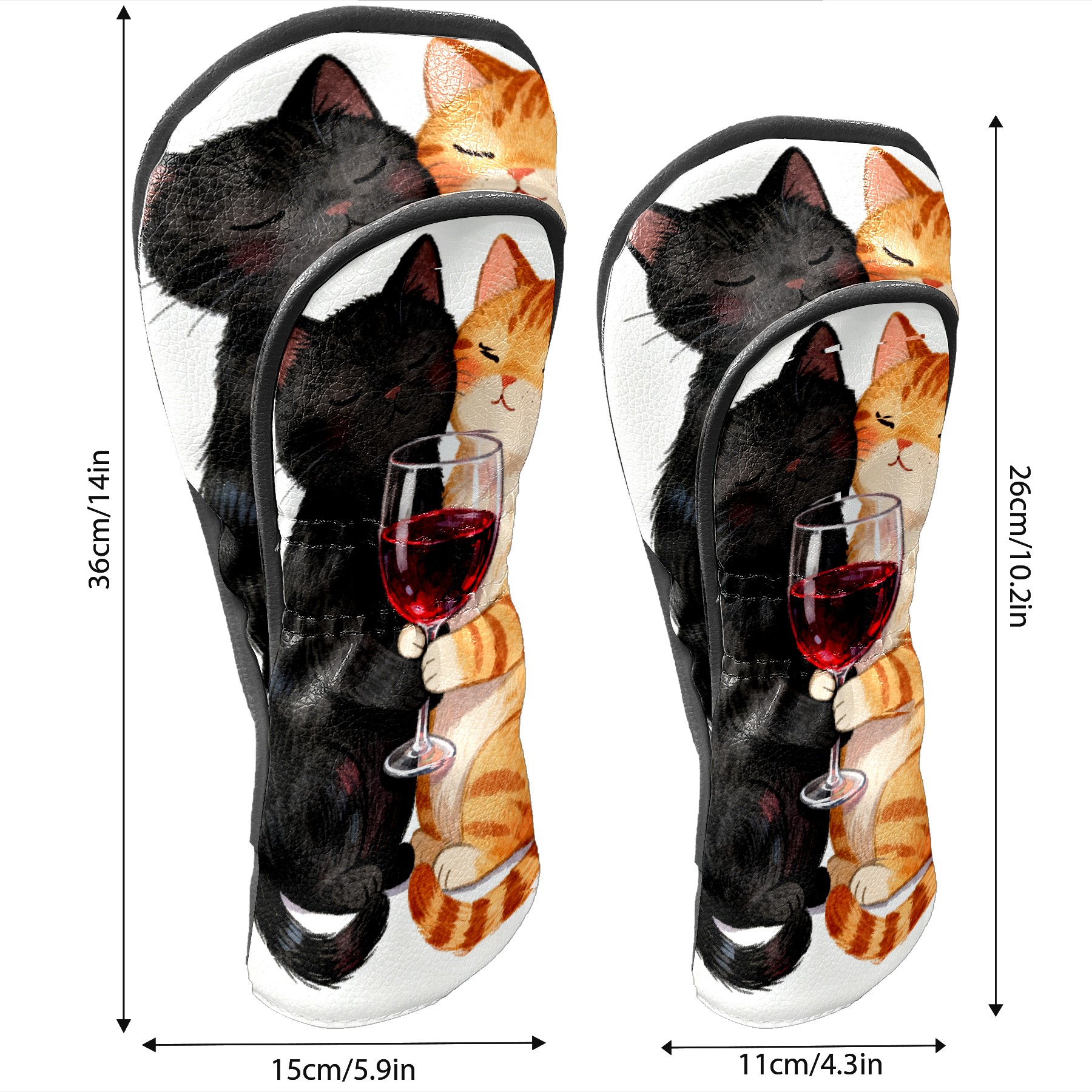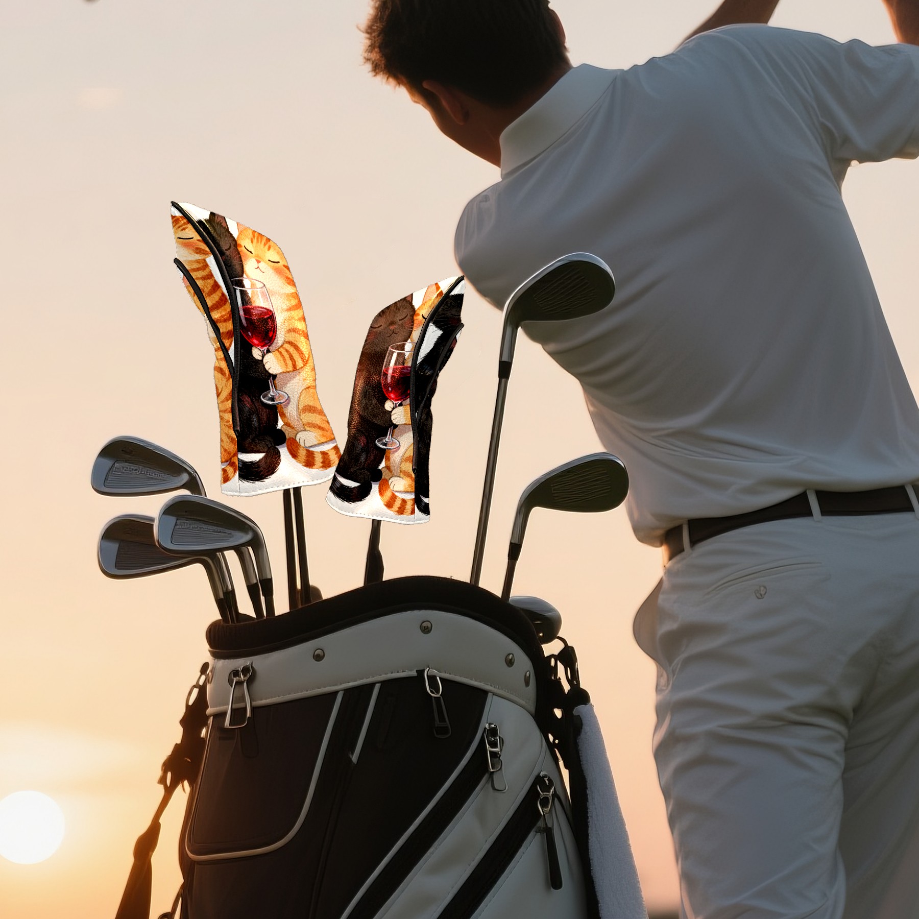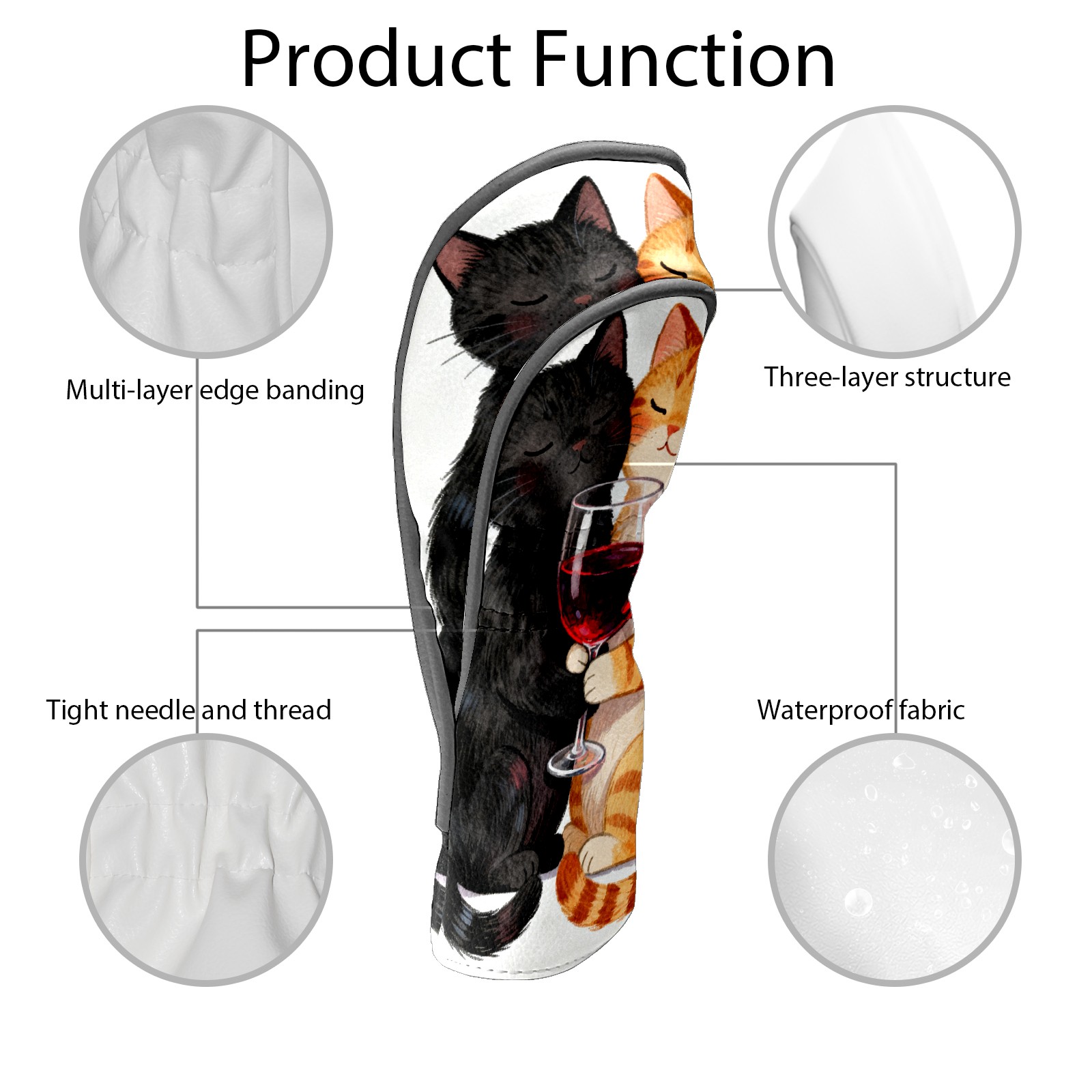 Golf Head Covers Leather Driver Headcovers, Premium Golf Club Covers with Anti-Scratch Lining 1/3/5 Wood Cover for golf clubs for Women Men (Jimeng-2025-10-20-5246-手绘插画风格的温馨场景,画面中央是两只可爱的猫咪相拥依偎,左边是一只纯黑色的小猫...)