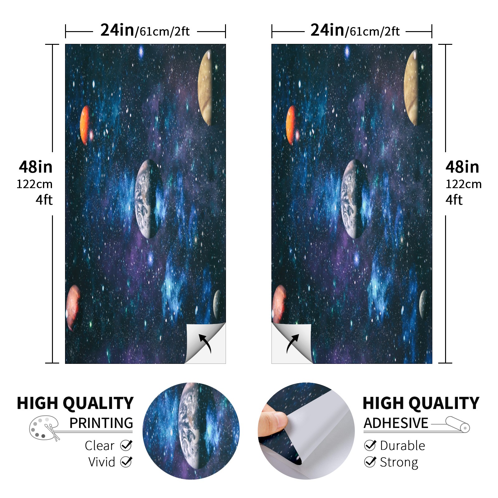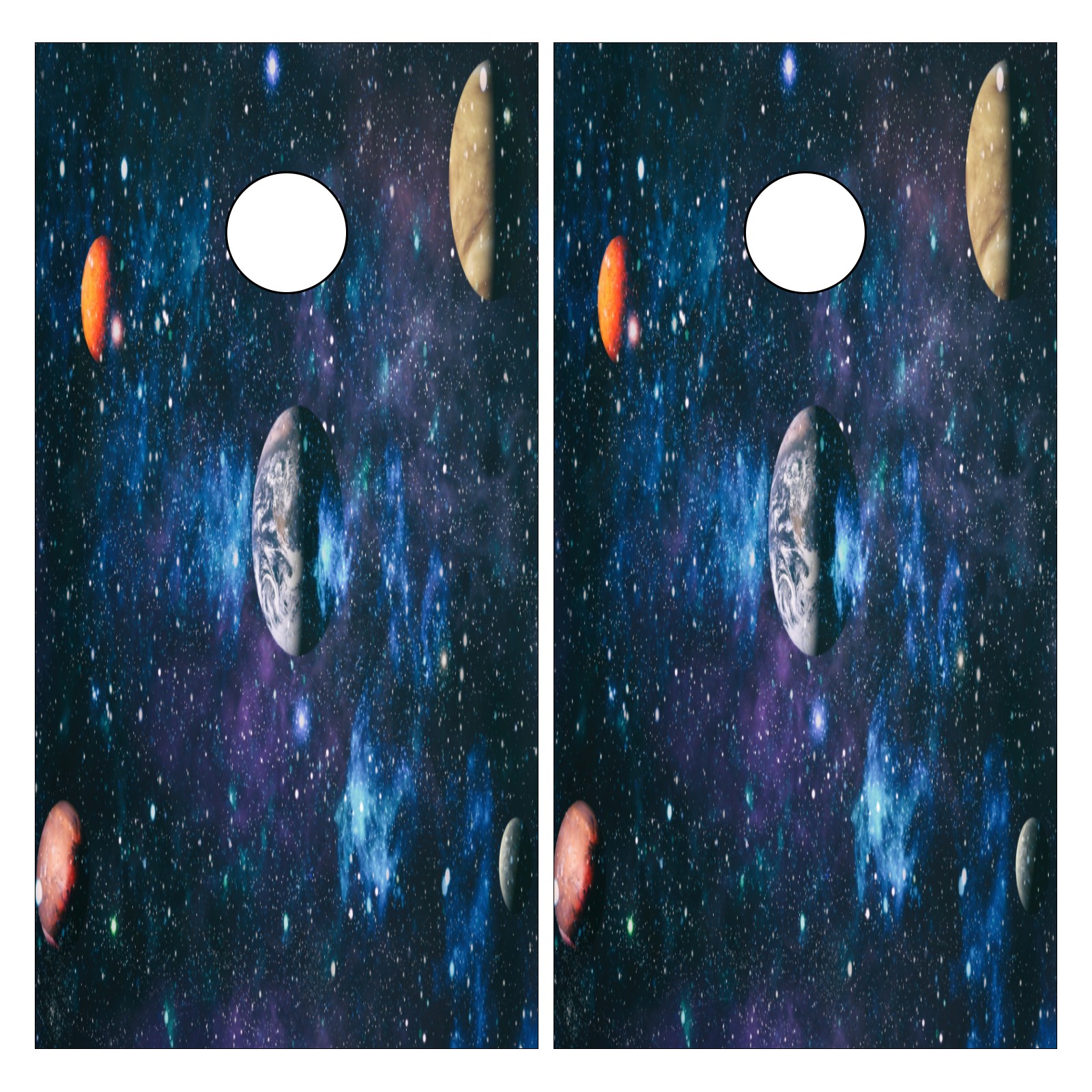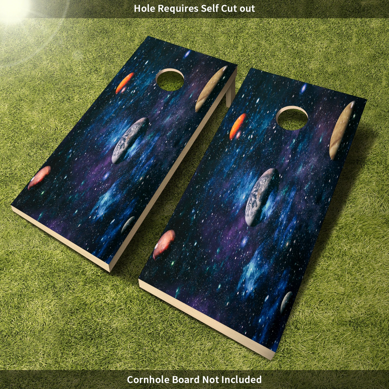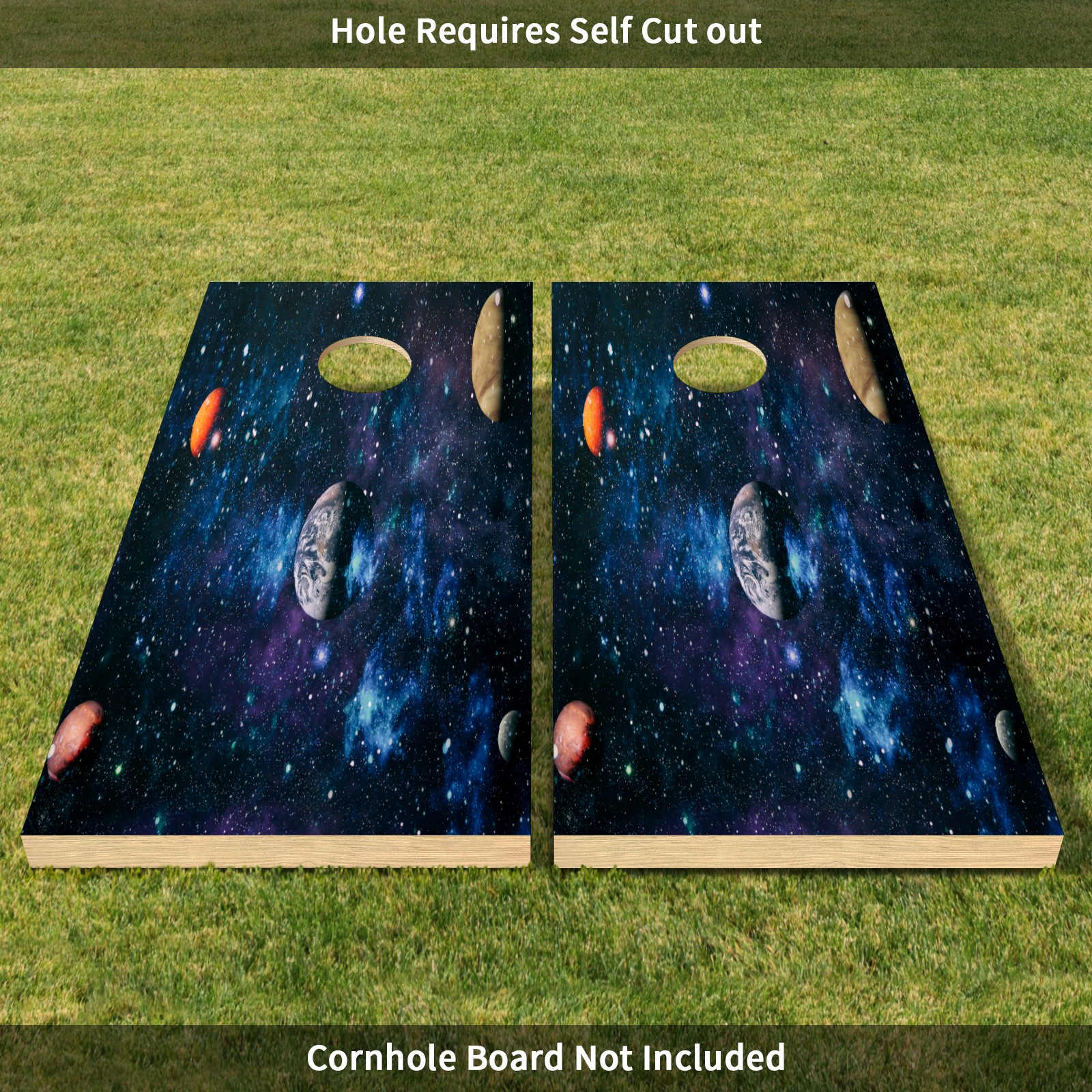 Cornhole Board Vinyl Wrap, 2-Pack Full-Size 4ft x 2ft Decal Sticker Set, Waterproof PET Material for DIY Replacement & Decoration, Easy to Apply for Indoor Outdoor Cornhole Game Galaxy Space Planets