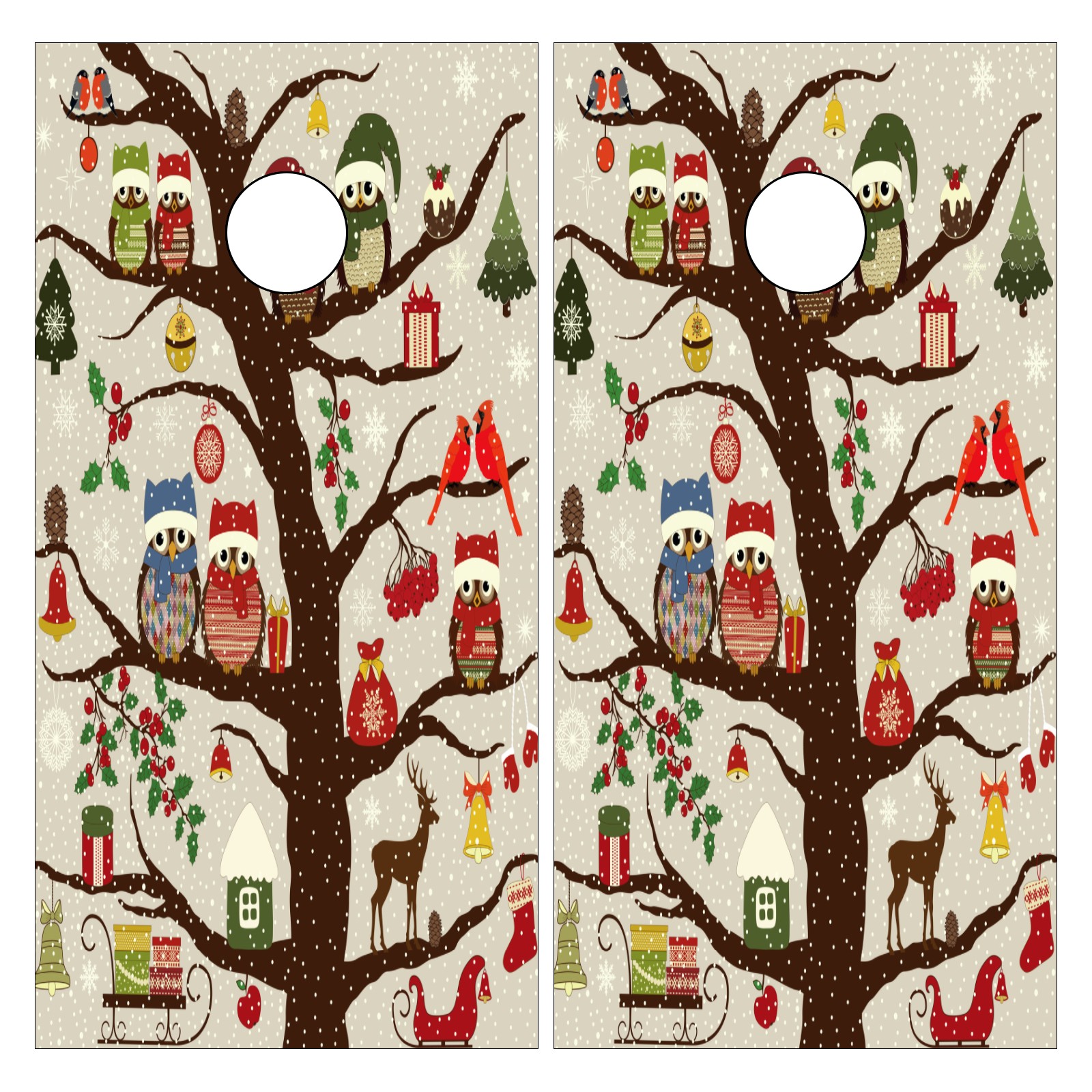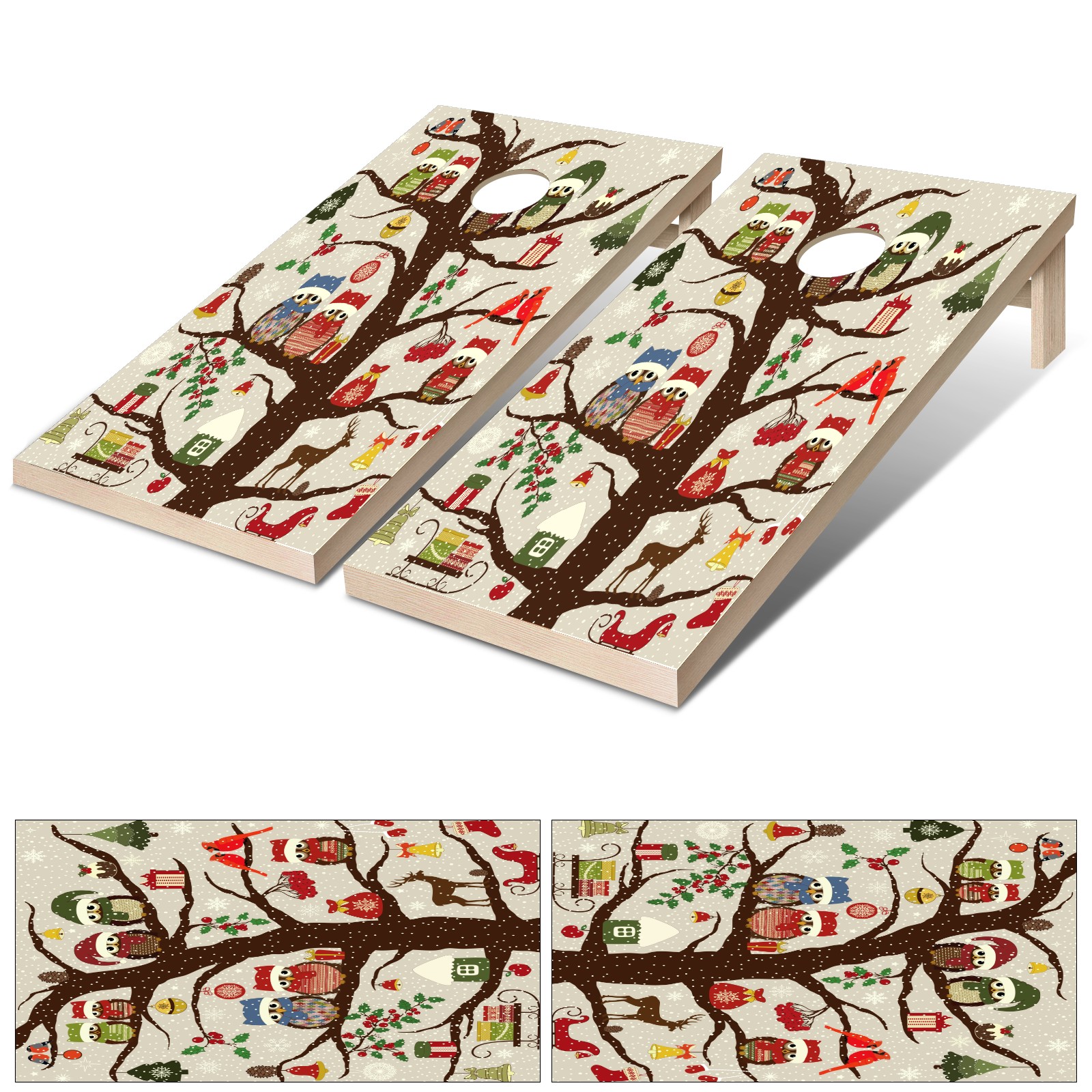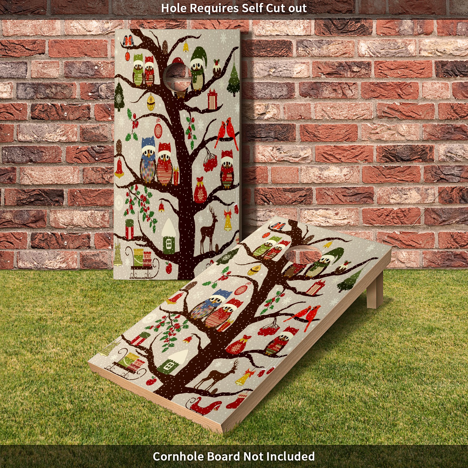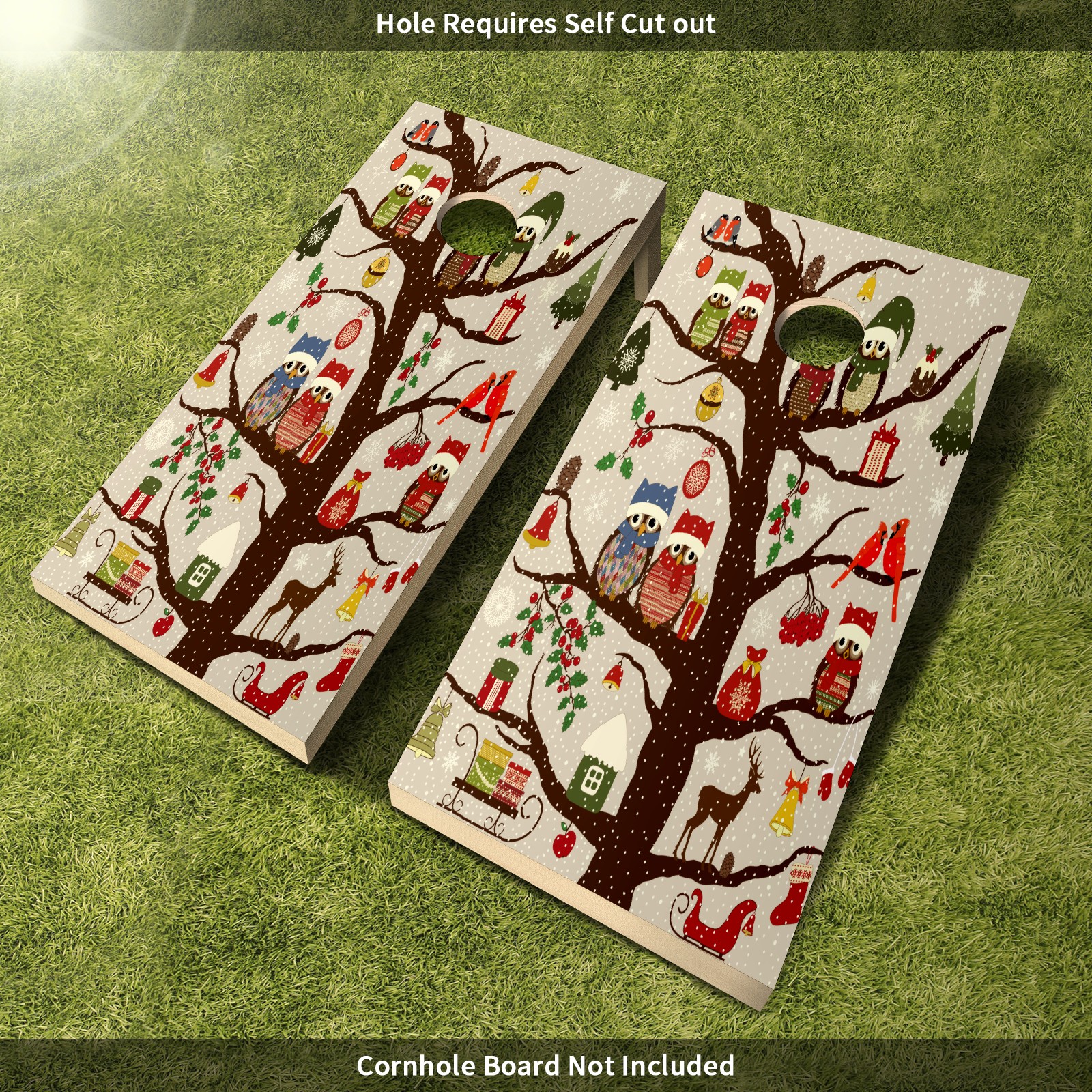 Cornhole Board Vinyl Wrap, 2-Pack Full-Size 4ft x 2ft Decal Sticker Set, Waterproof PET Material for DIY Replacement & Decoration, Easy to Apply for Indoor Outdoor Cornhole Game Christmas Tree Owl Bird