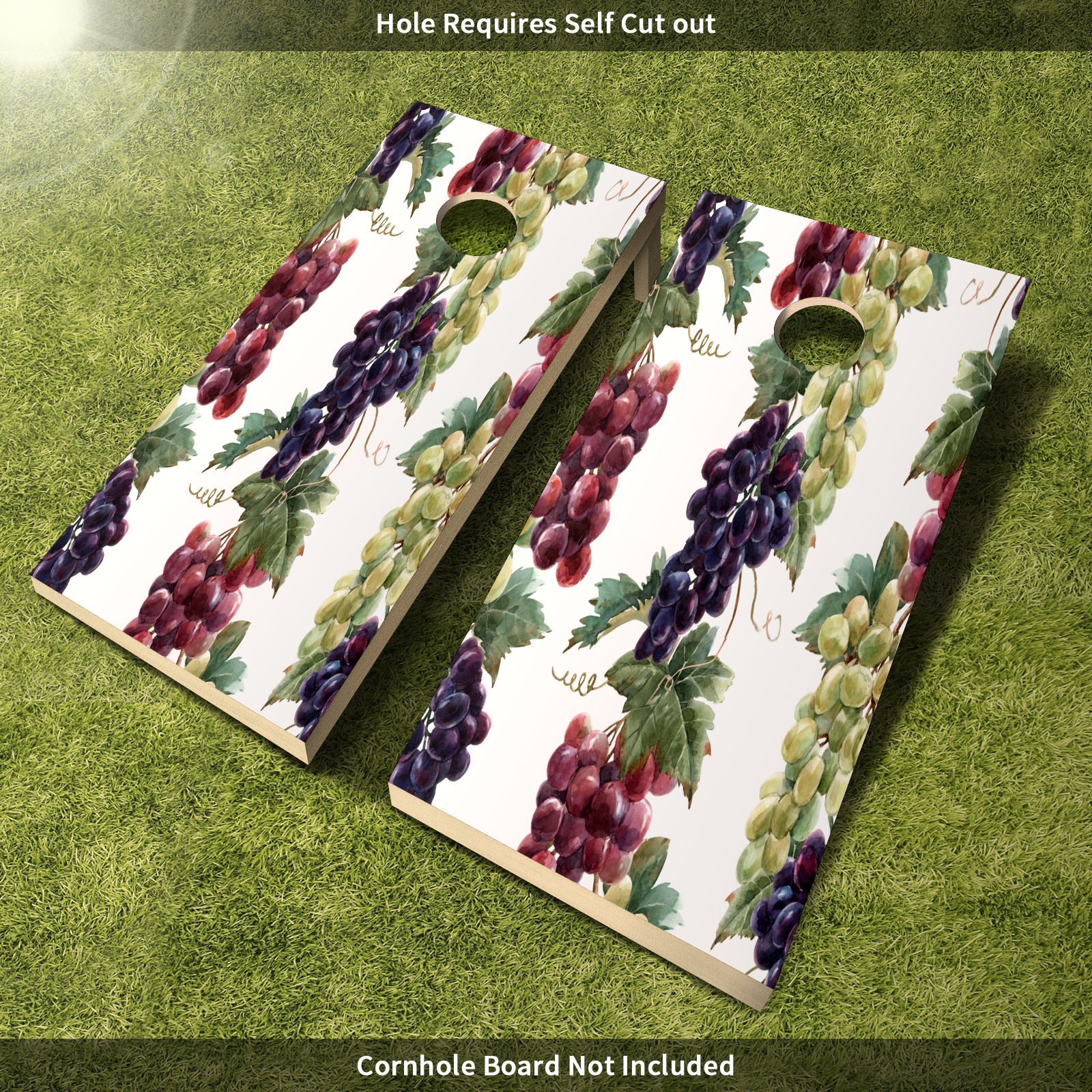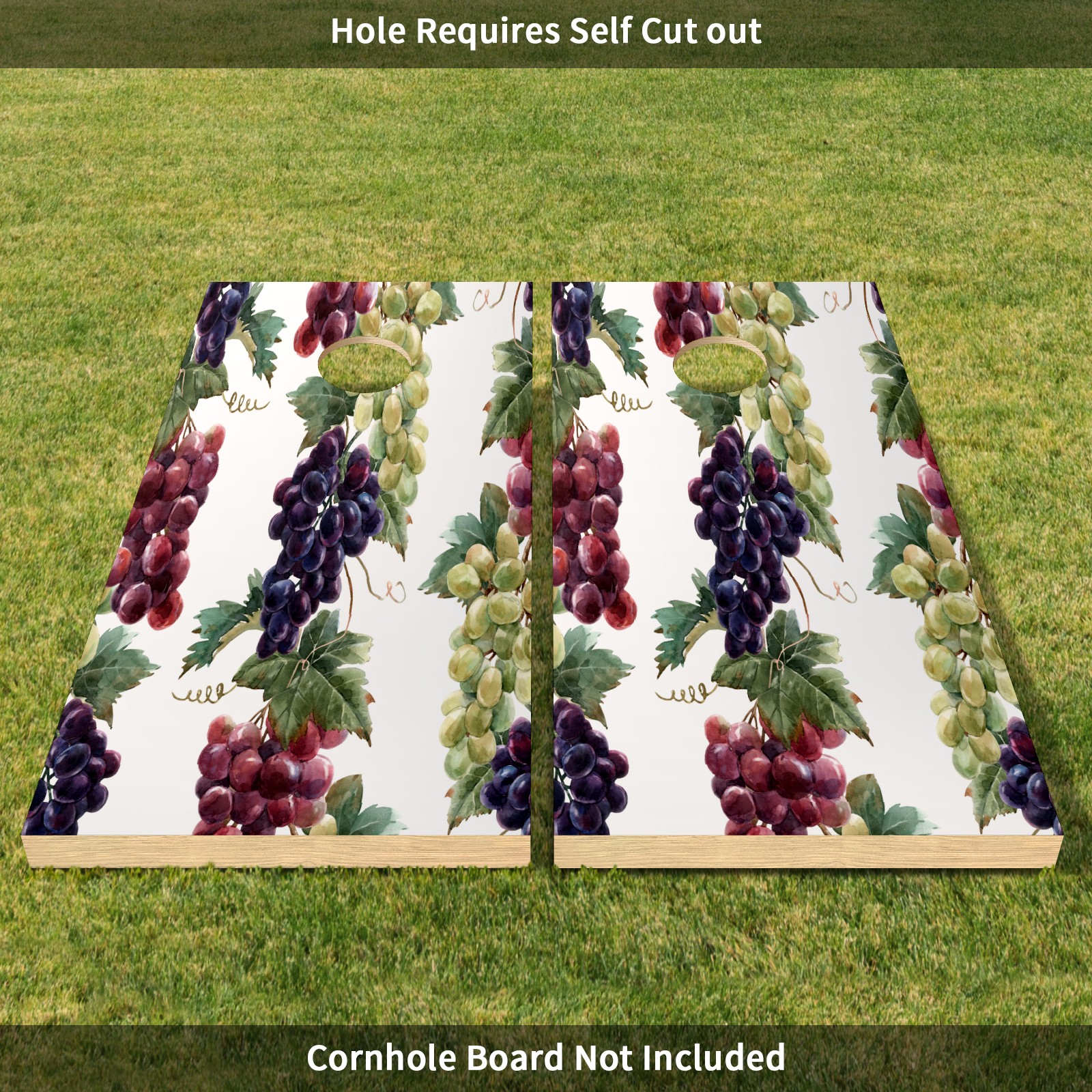 Cornhole Board Vinyl Wrap, 2-Pack Full-Size 4ft x 2ft Decal Sticker Set, Waterproof PET Material for DIY Replacement & Decoration, Easy to Apply for Indoor Outdoor Cornhole Game Watercolor Grapes Happy Sukkot