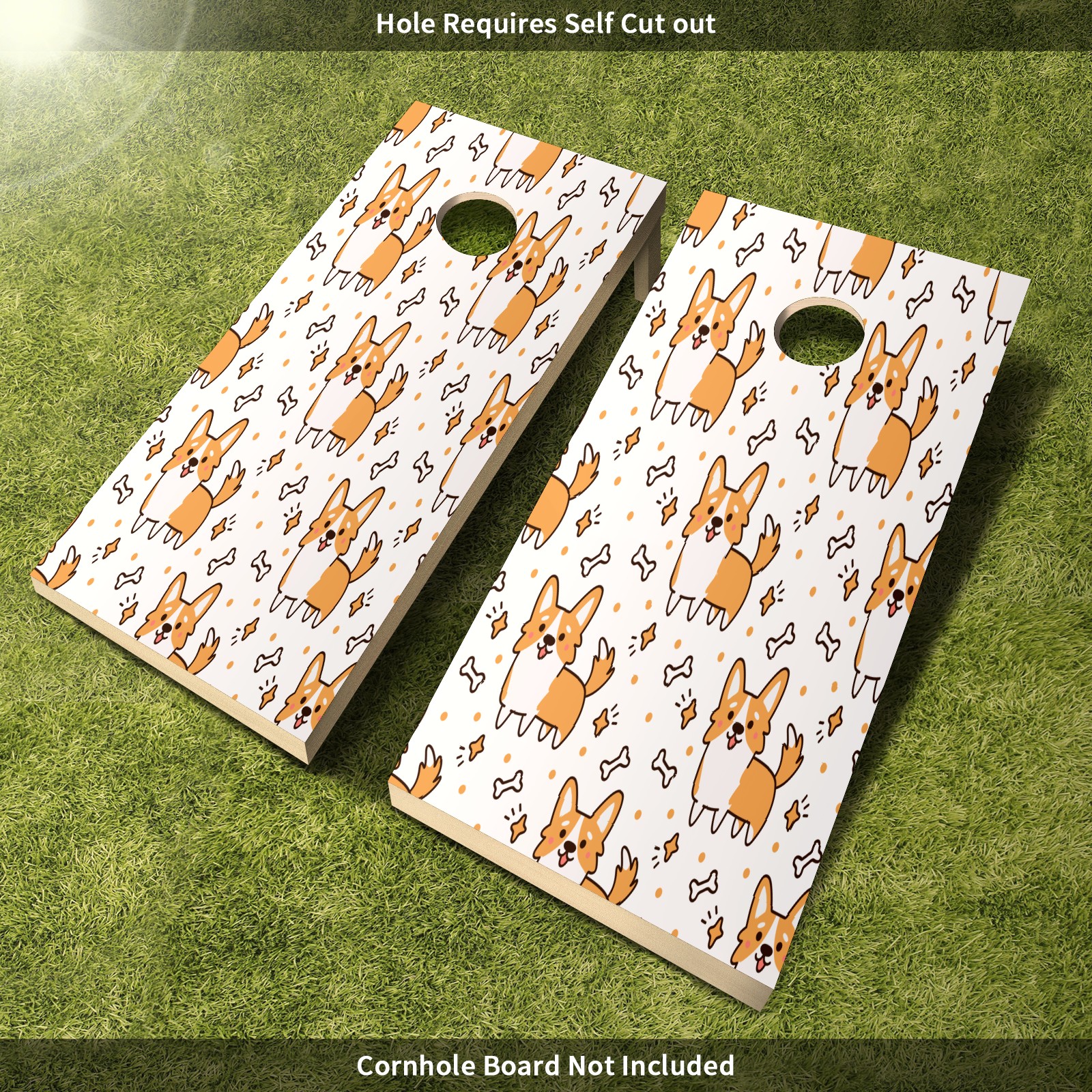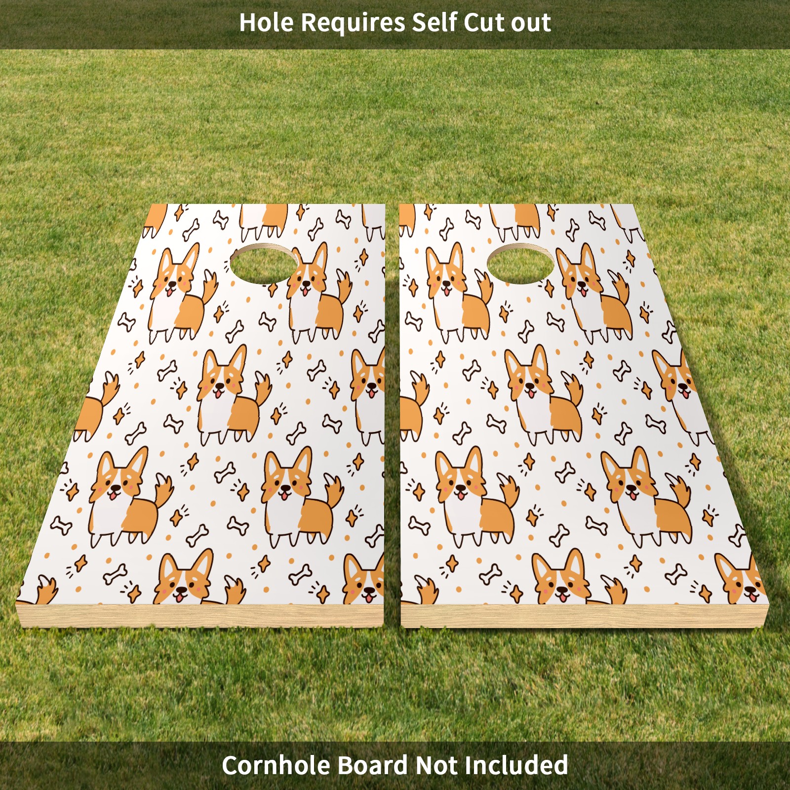 <p>Elevate Your Game with Premium Cornhole Board Wraps!Tired of your plain cornhole boards?</p><p>Our premium vinyl sticker set is the easiest and most affordable way to give them a stunning, personalized upgrade!</p><ul><li>PERFECT FIT - Includes two full-size (4ft x 2ft) vinyl sheets, designed to cover standard cornhole boards. </li><li>EASY DIY APPLICATION - Just clean, peel, and stick! The hole can be easily cut out by yourself for a perfect custom fit. DURABLE & WATERPROOF - Made of high-quality PET material, our sticker is waterproof and weather-resistant, built to last through countless outdoor games and parties. </li><li>INSTANT MAKEOVER - Breathe new life into your old set or customize a plain one. Perfect for tailgates, backyard BBQs, beaches, and family gatherings. </li></ul><p>Package Includes: 2 x Cornhole Board Stickers (Board NOT Included)</p>