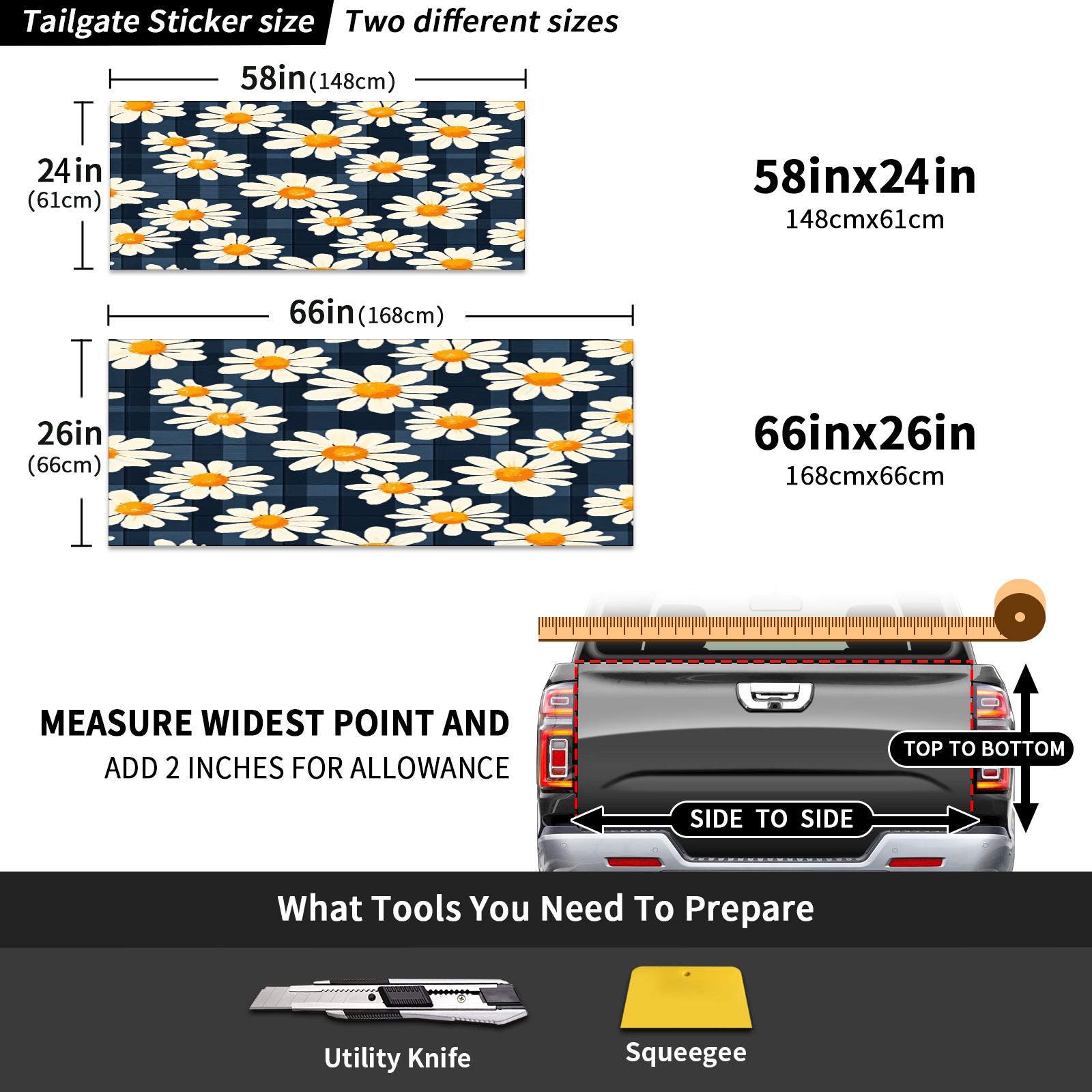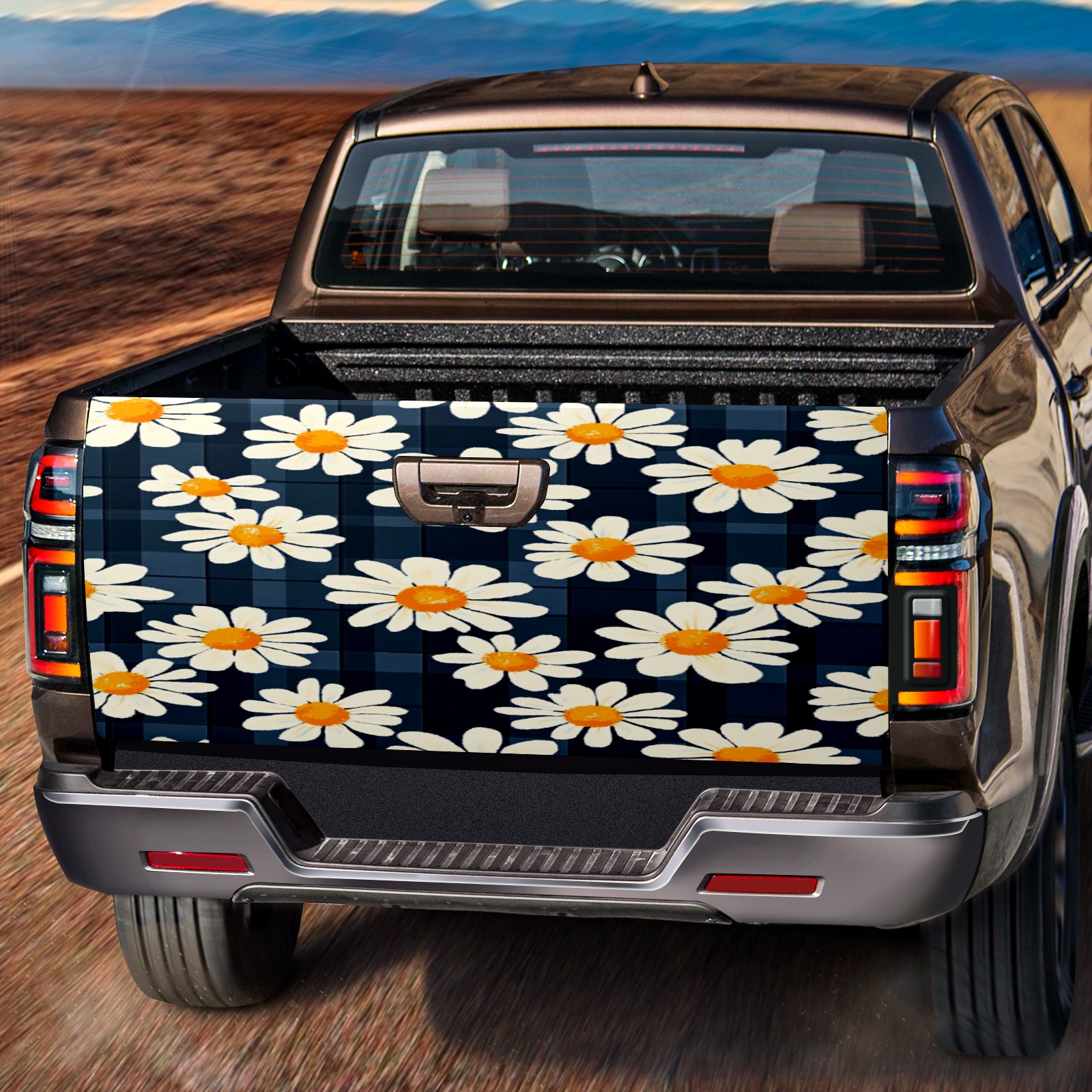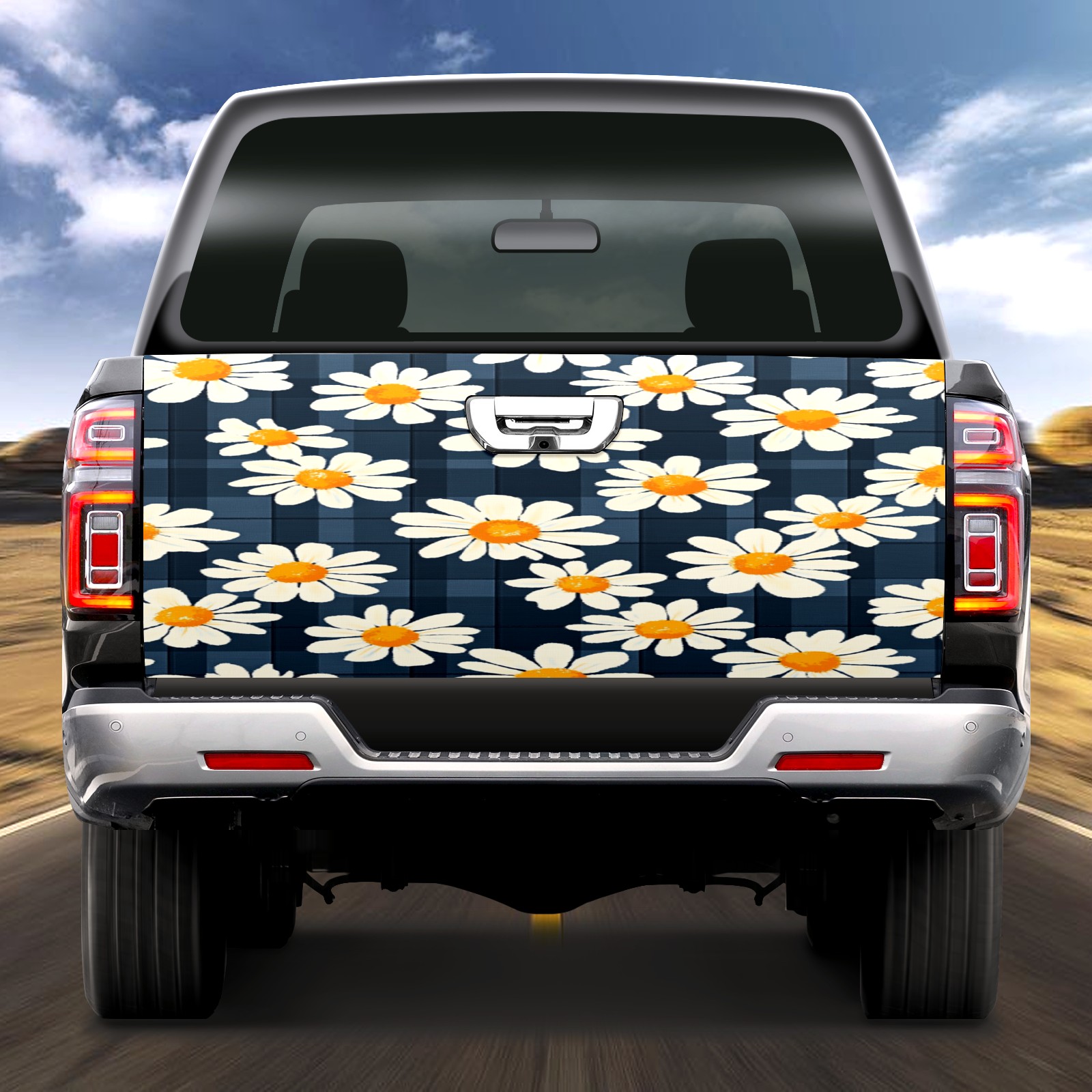 Professional Pickup Truck Decals - Custom Lettering Stickers for Cars, Trucks Doors, Tailgates & Vehicle Windows Retro Daisies Checkered Pattern