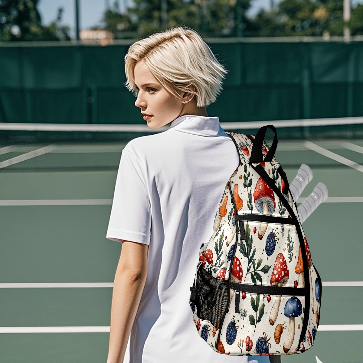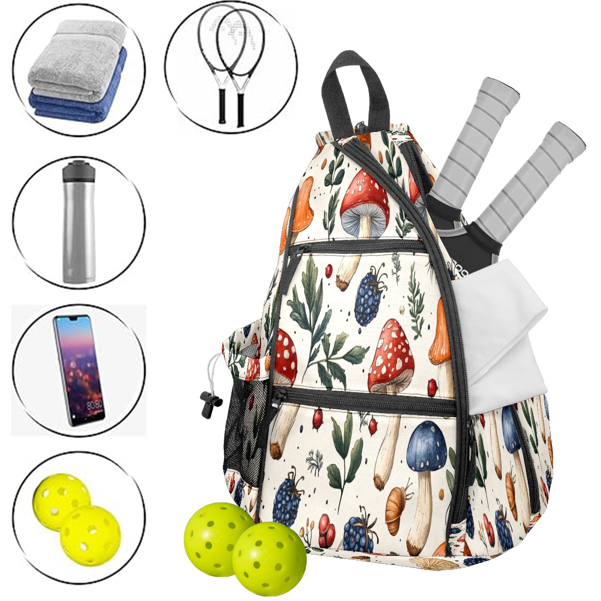 pickleball Bag - Mushroom Berries Unisex pickleball Backpack with Fence Hook, Adjustable Shoulder Straps, Security Pocket, Gift for pickle ball enthusiasts
