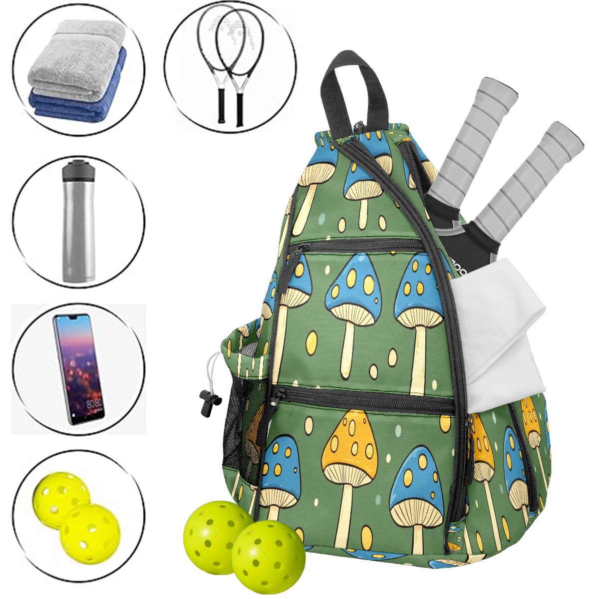pickleball Bag - Colorful Mushroom Unisex pickleball Backpack with Fence Hook, Adjustable Shoulder Straps, Security Pocket, Gift for pickle ball enthusiasts