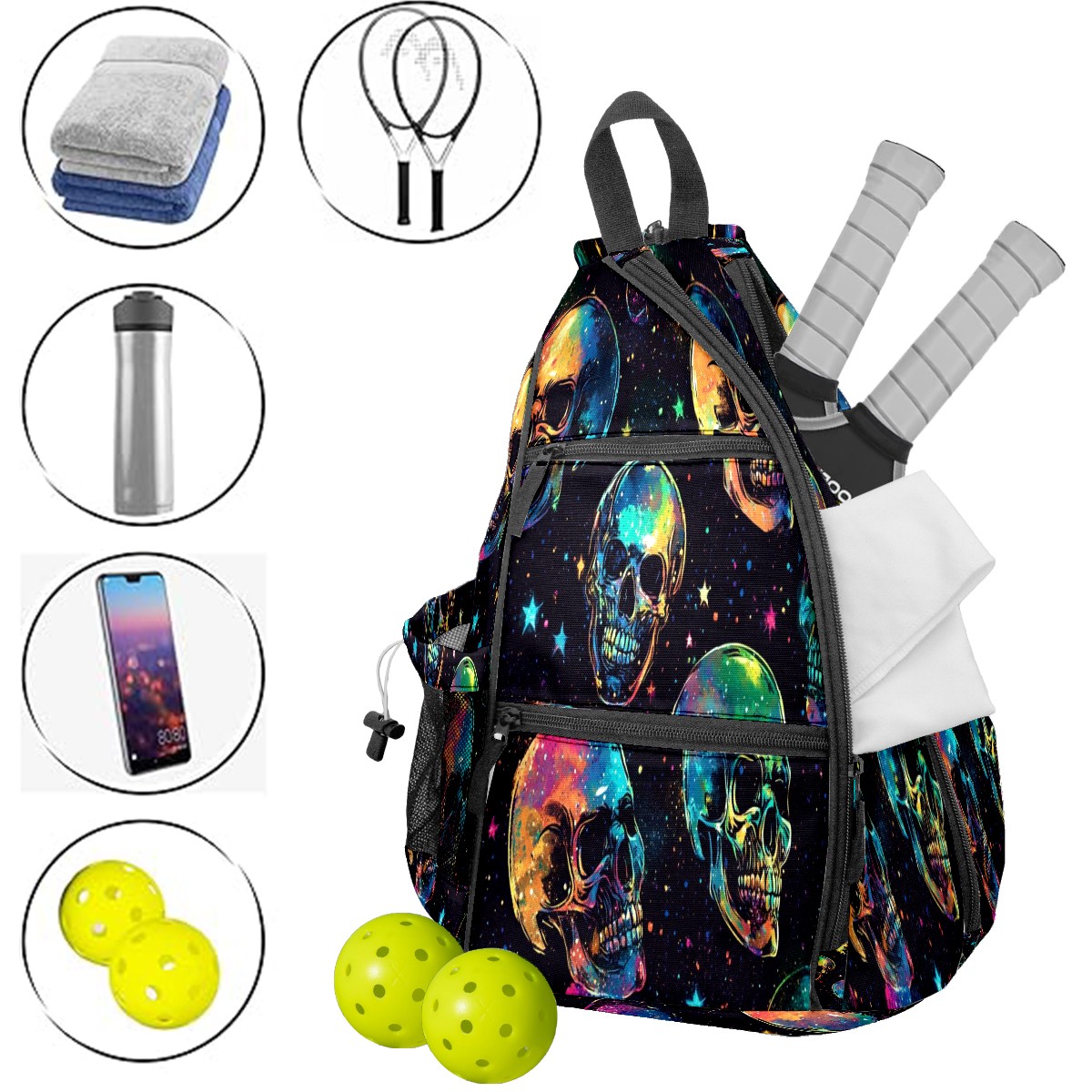 pickleball Bag - Skull Unisex pickleball Backpack with Fence Hook, Adjustable Shoulder Straps, Security Pocket, Gift for pickle ball enthusiasts