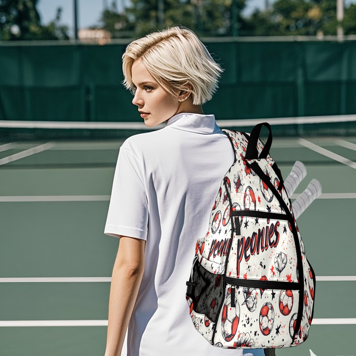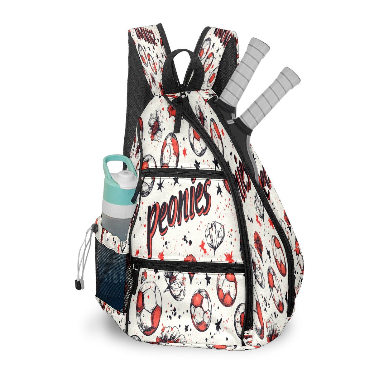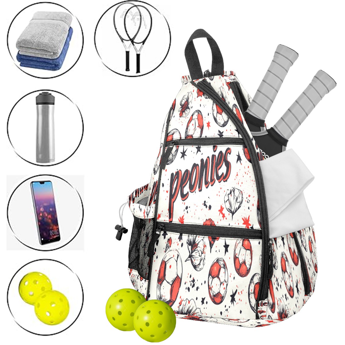 pickleball Bag - Football Peonies Unisex pickleball Backpack with Fence Hook, Adjustable Shoulder Straps, Security Pocket, Gift for pickle ball enthusiasts