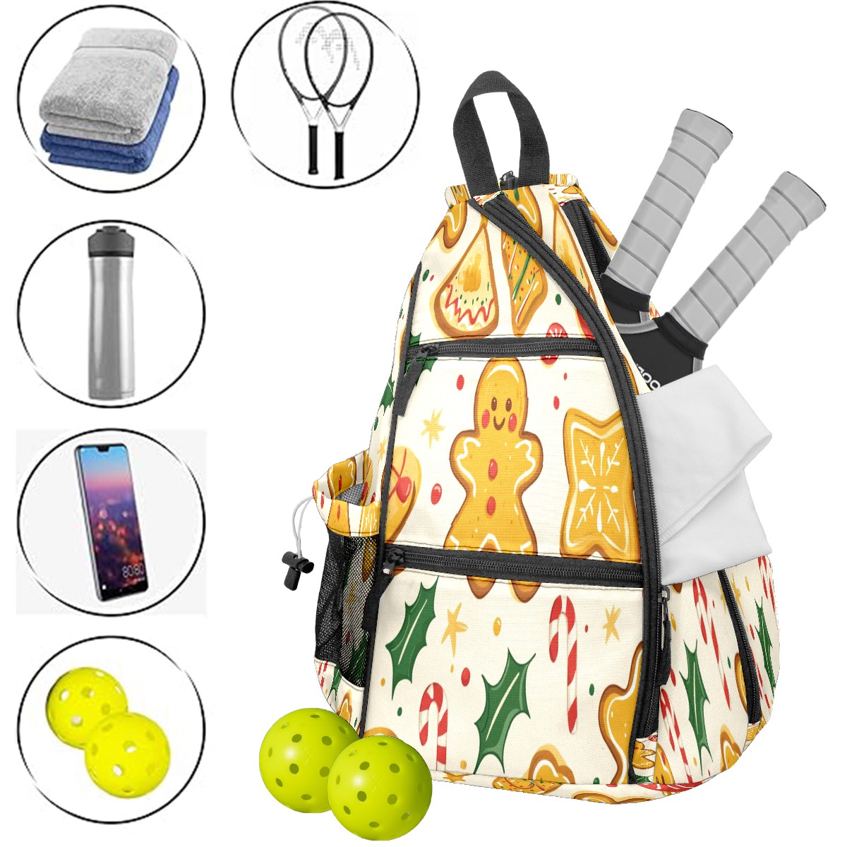 pickleball Bag - Gingerbread Man Unisex pickleball Backpack with Fence Hook, Adjustable Shoulder Straps, Security Pocket, Gift for pickle ball enthusiasts