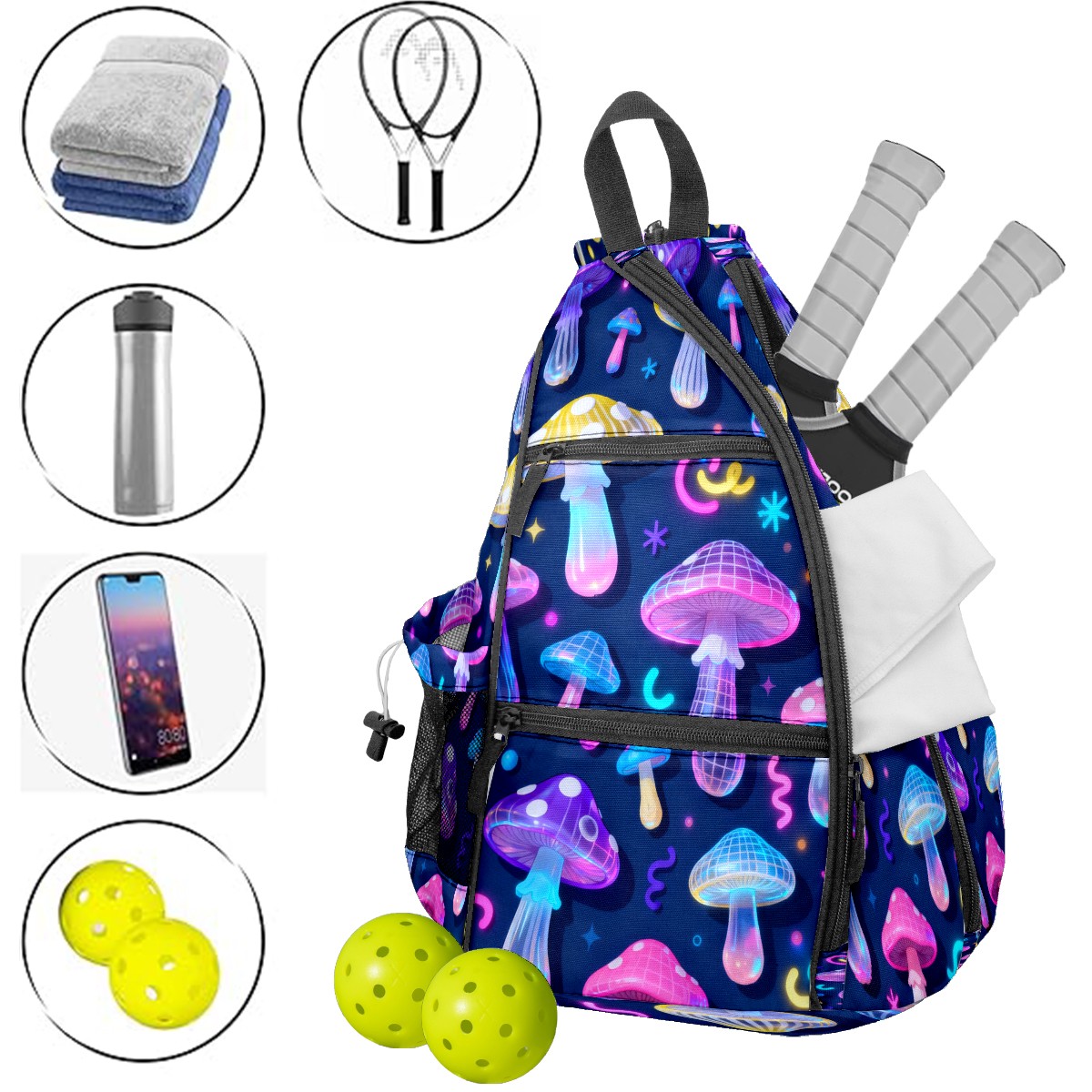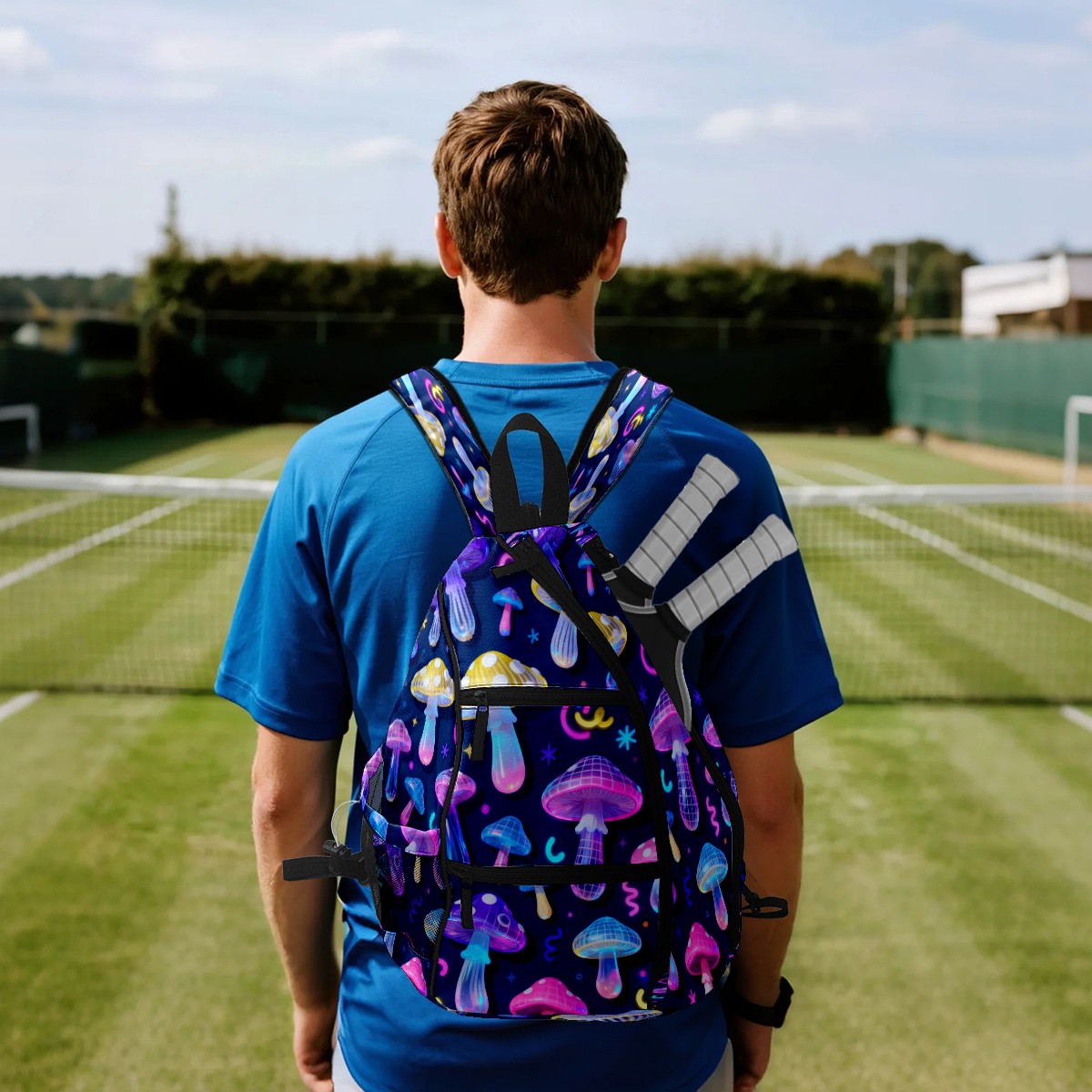 pickleball Bag - Watercolor Mushroom Park Unisex pickleball Backpack with Fence Hook, Adjustable Shoulder Straps, Security Pocket, Gift for pickle ball enthusiasts