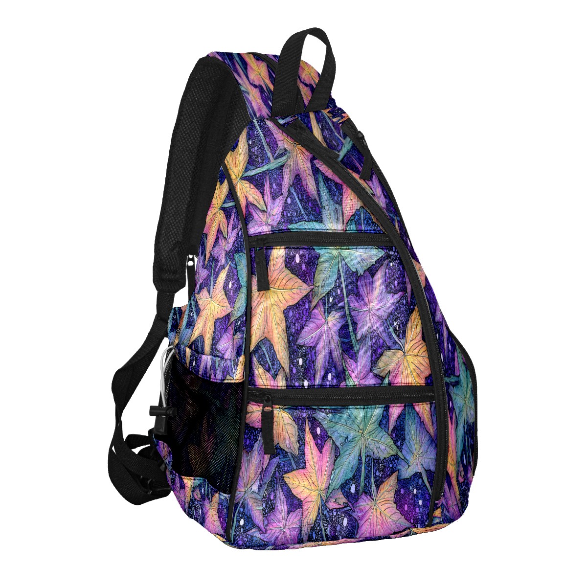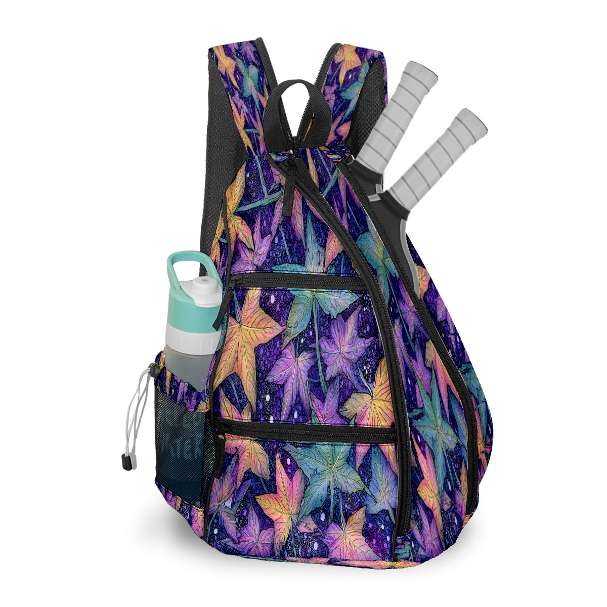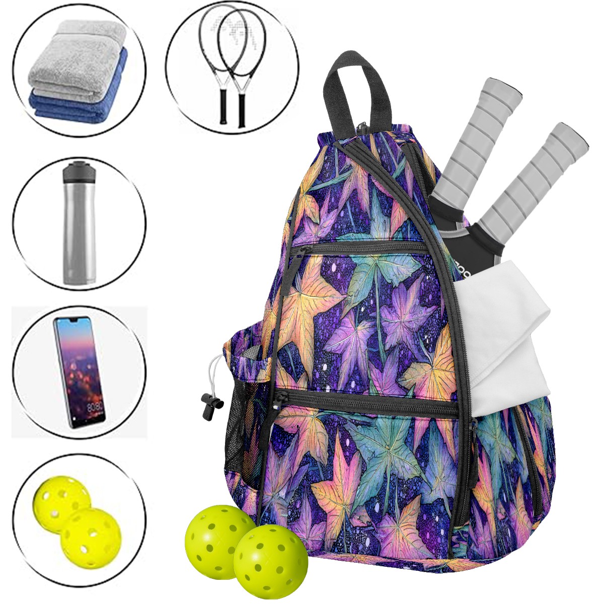 Pickleball Bag with Padded Back, Maple Leaf PurpleBlue Multi-Compartment Paddle Backpack, Lightweight Nylon Sports Bag for Men & Women