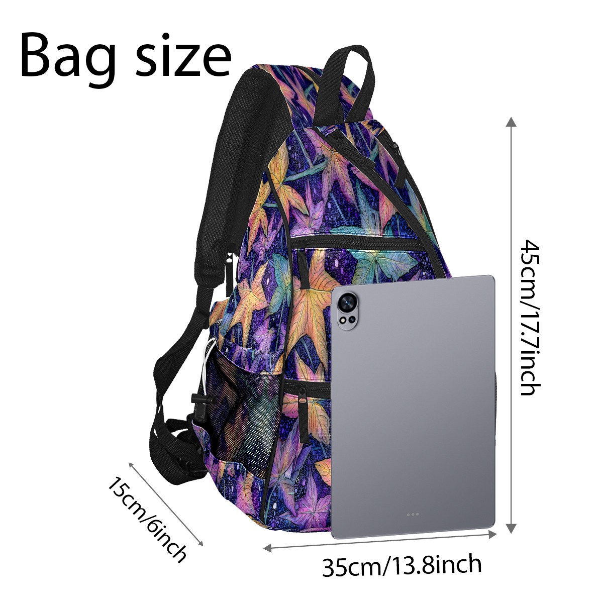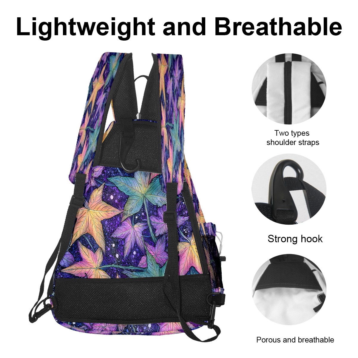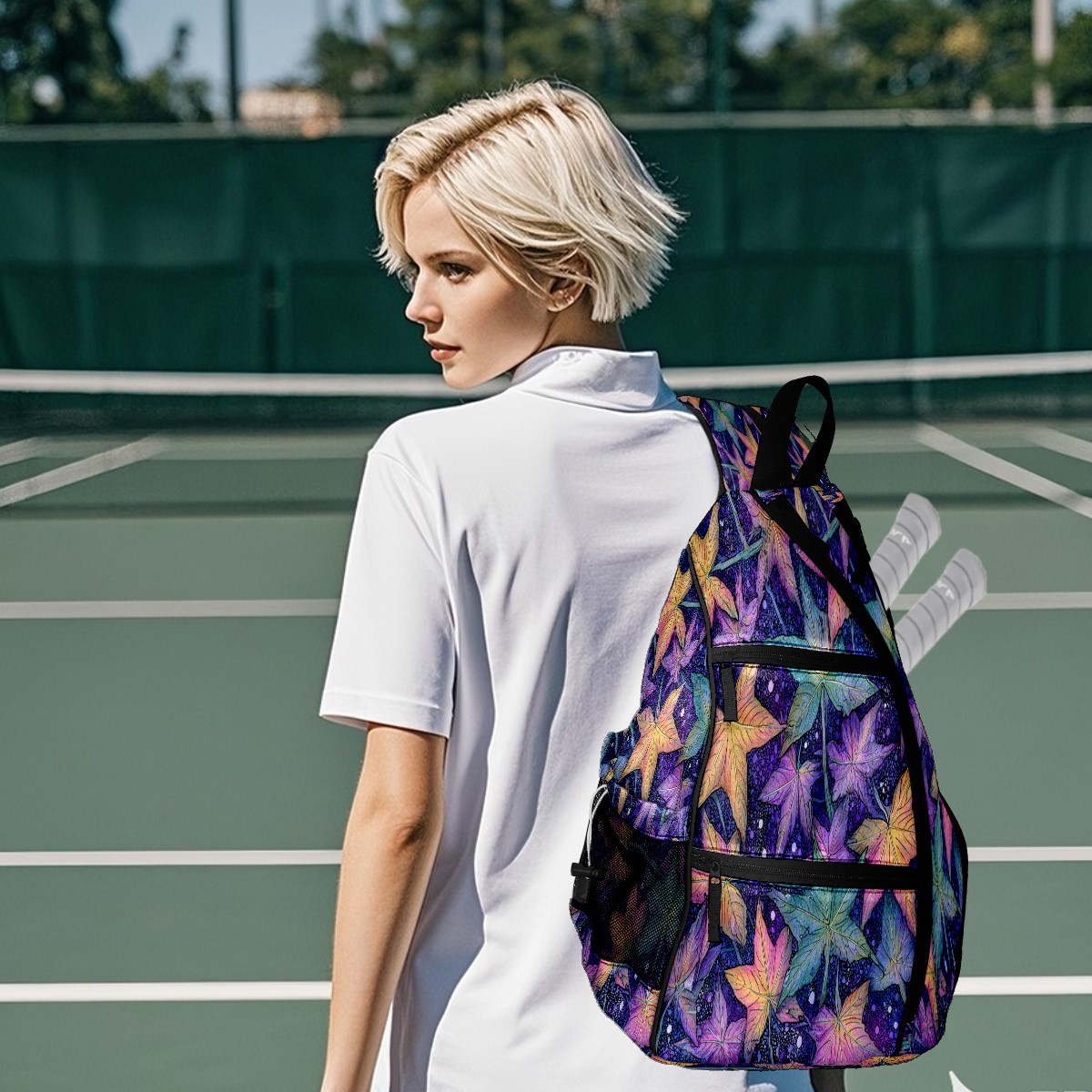 Pickleball Bag with Padded Back, Maple Leaf PurpleBlue Multi-Compartment Paddle Backpack, Lightweight Nylon Sports Bag for Men & Women