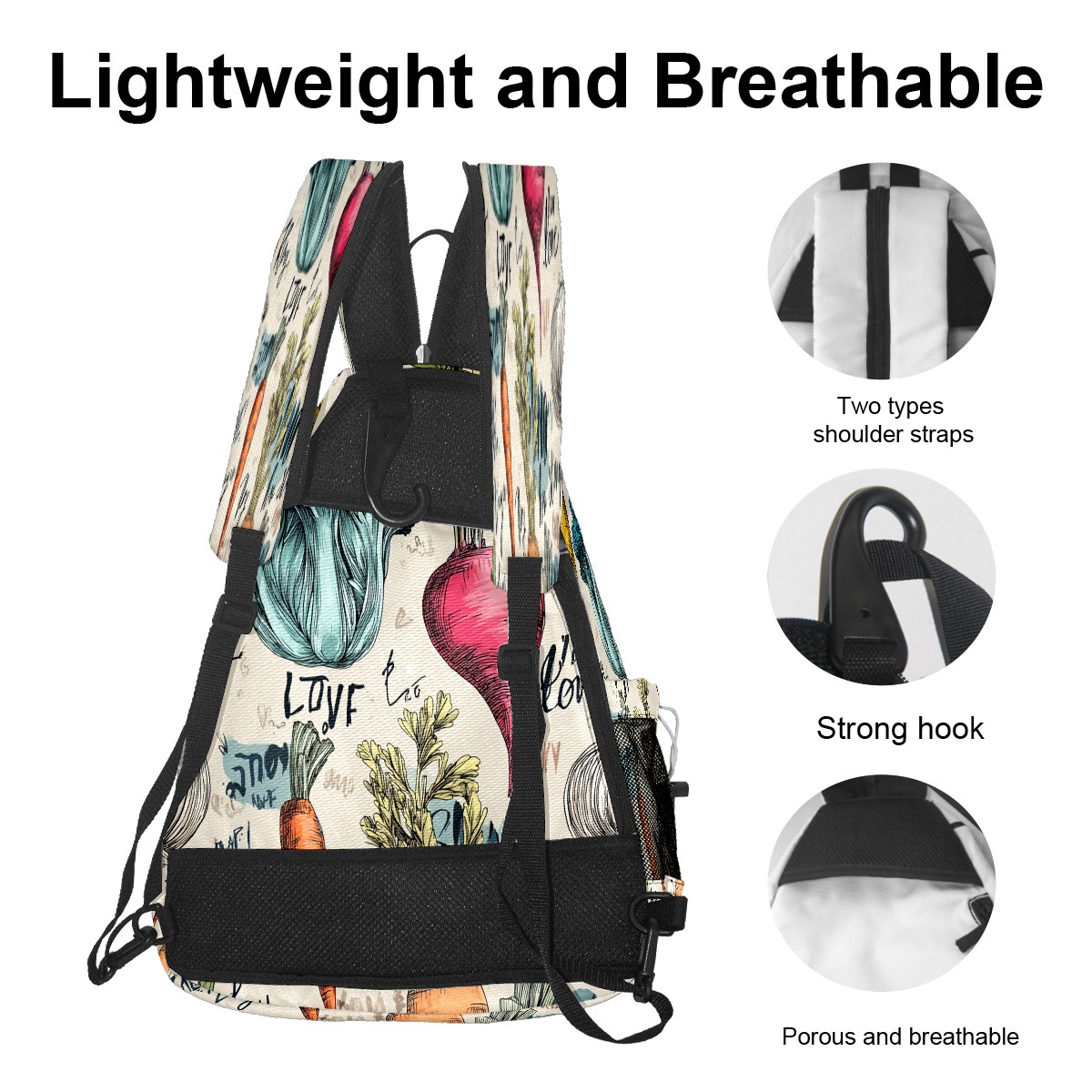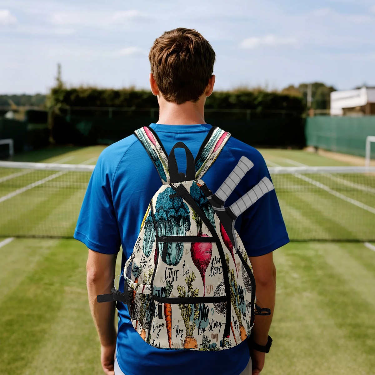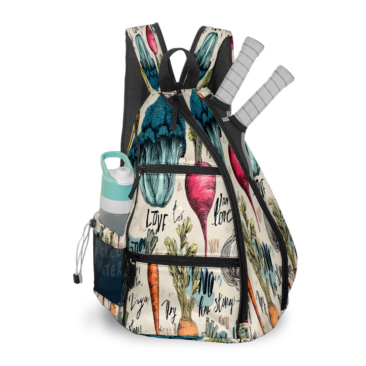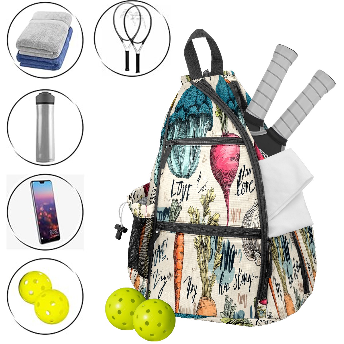 Pickleball Bag with Padded Back, Vegetables GreenBrown Multi-Compartment Paddle Backpack, Lightweight Nylon Sports Bag for Men & Women