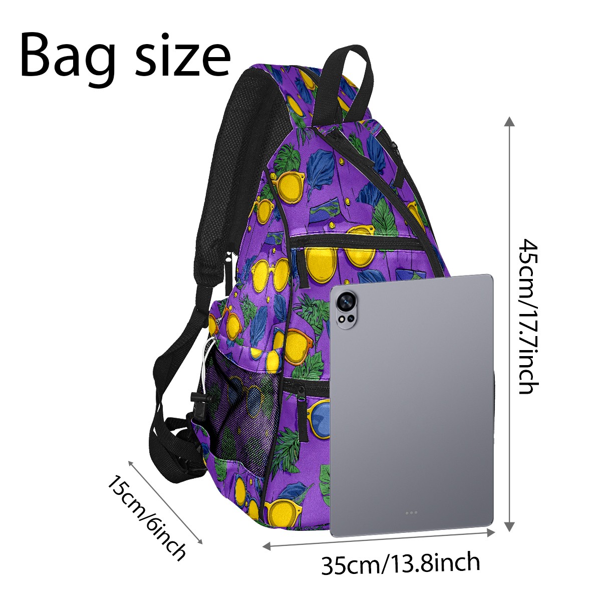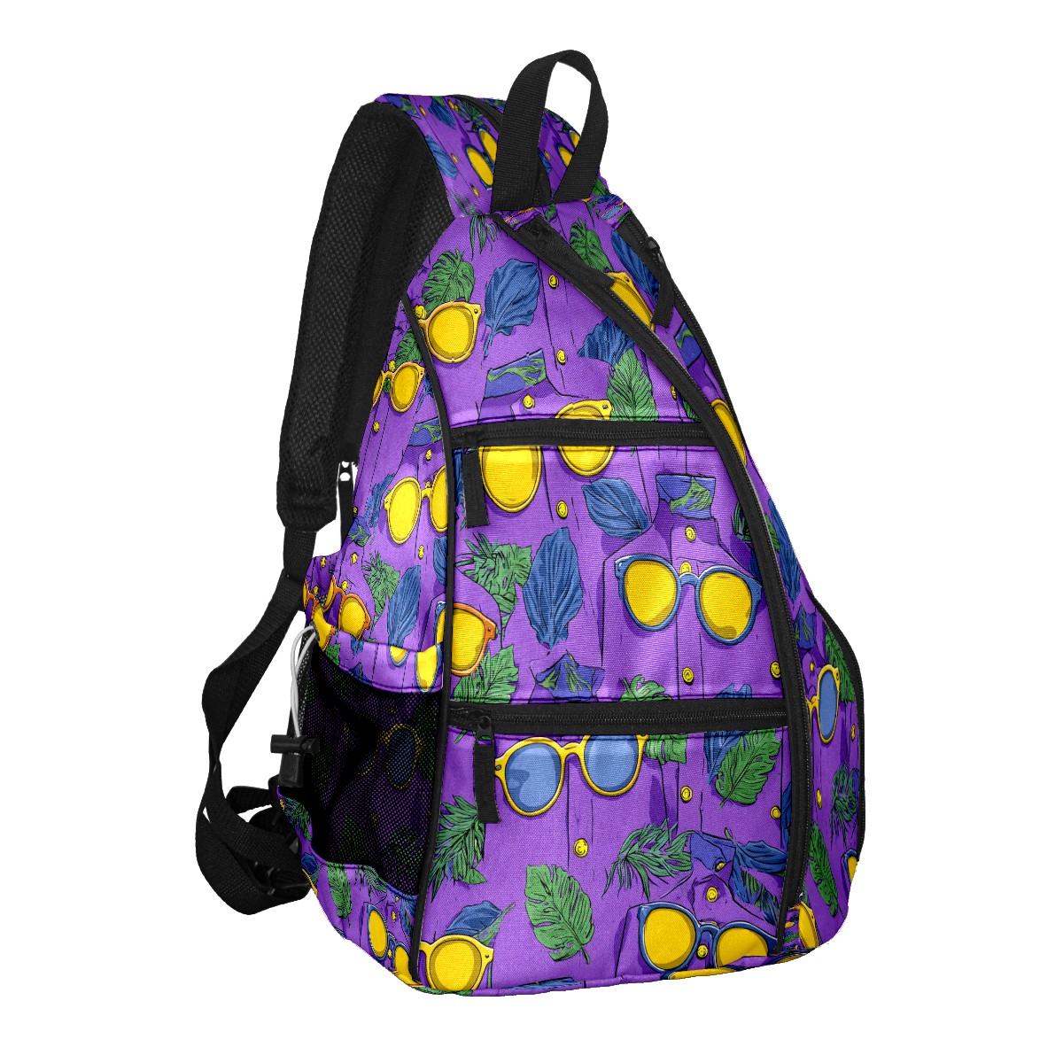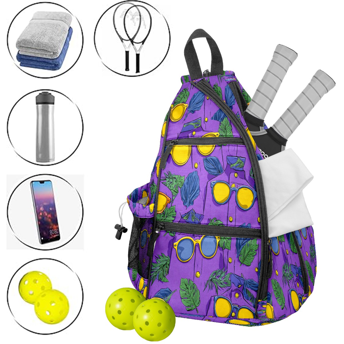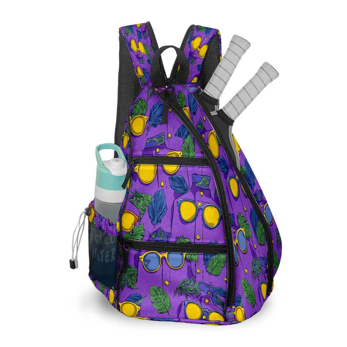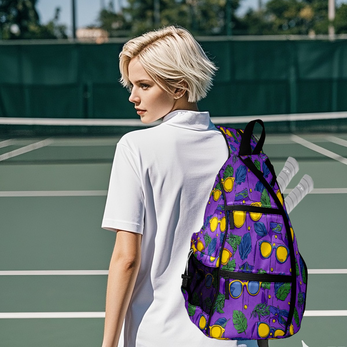 Pickleball Bag with Padded Back, Lemon Glasses Purple Multi-Compartment Paddle Backpack, Lightweight Nylon Sports Bag for Men & Women