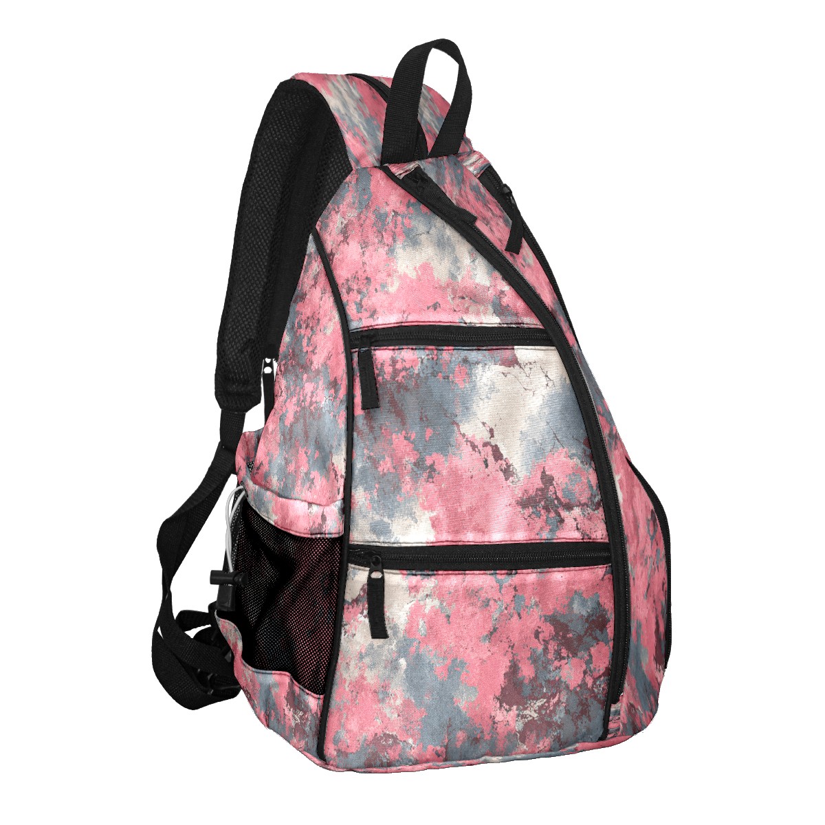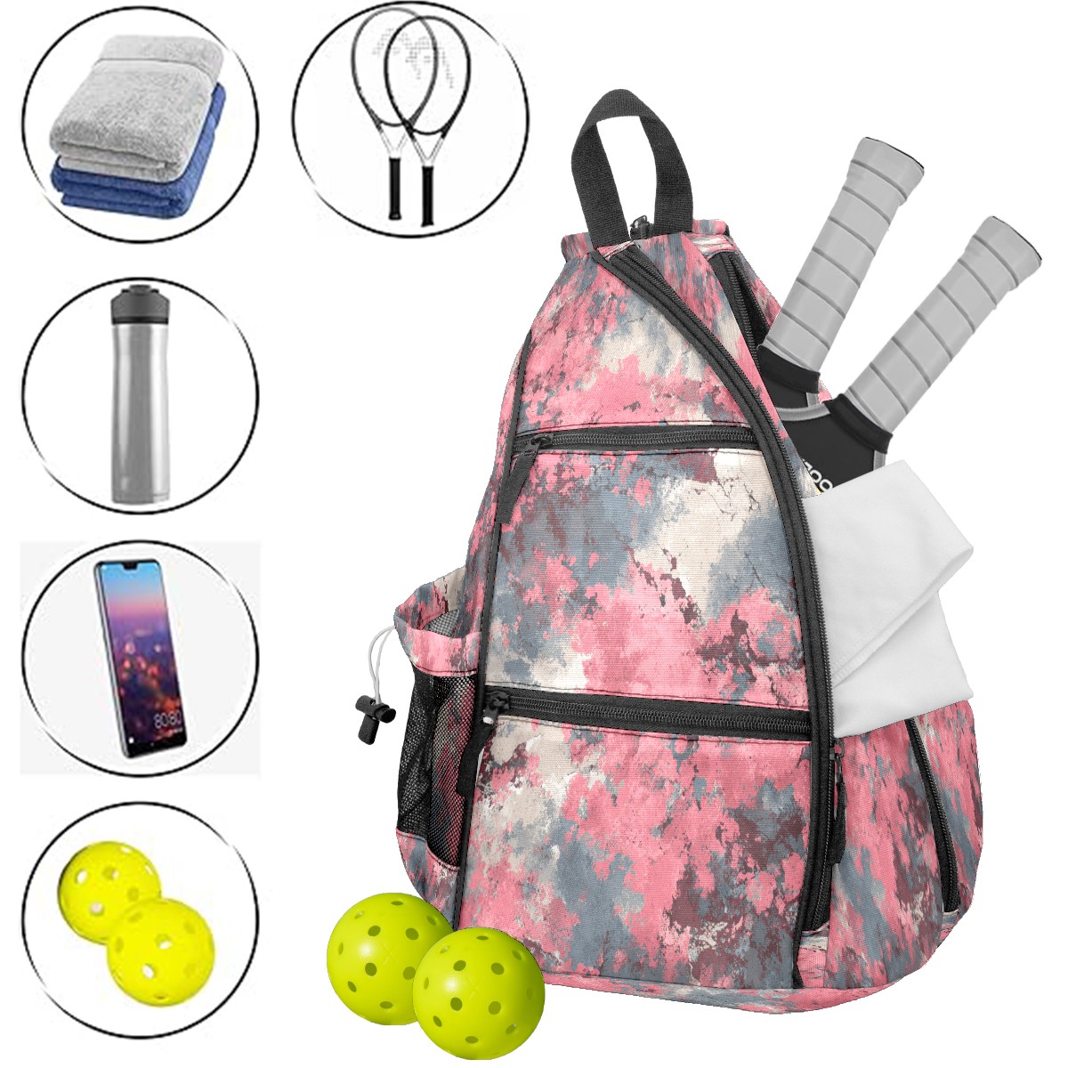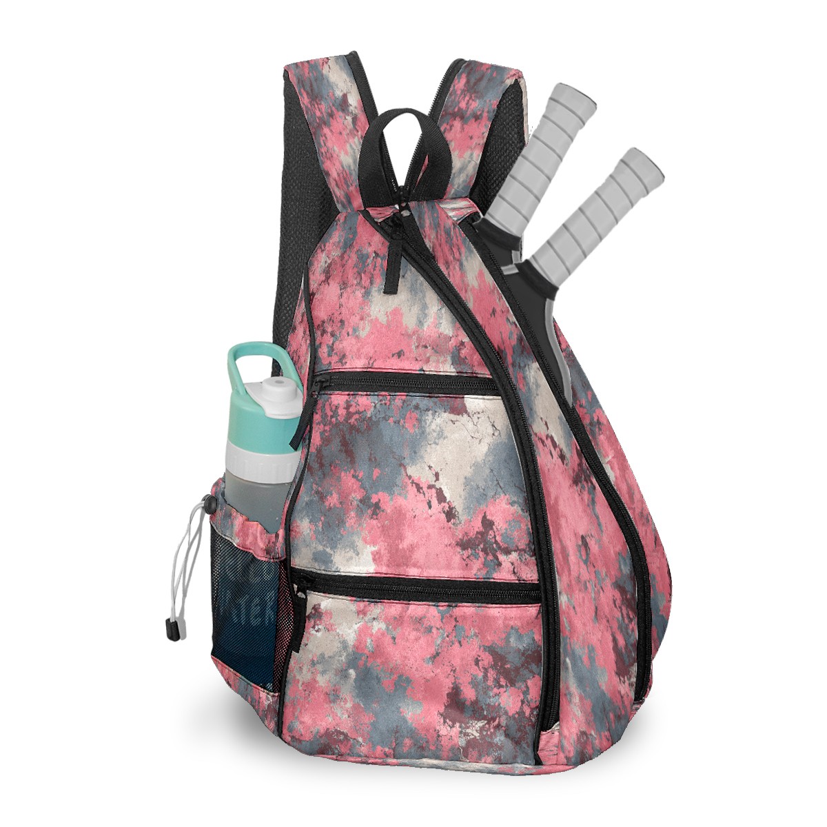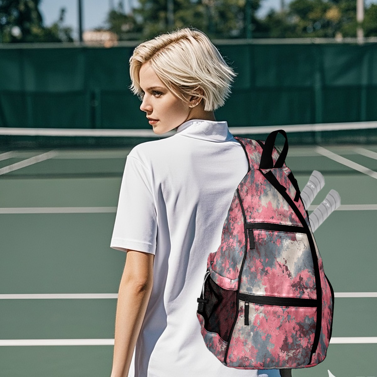 Pickleball Bag with Padded Back, Marble PinkGray Multi-Compartment Paddle Backpack, Lightweight Nylon Sports Bag for Men & Women