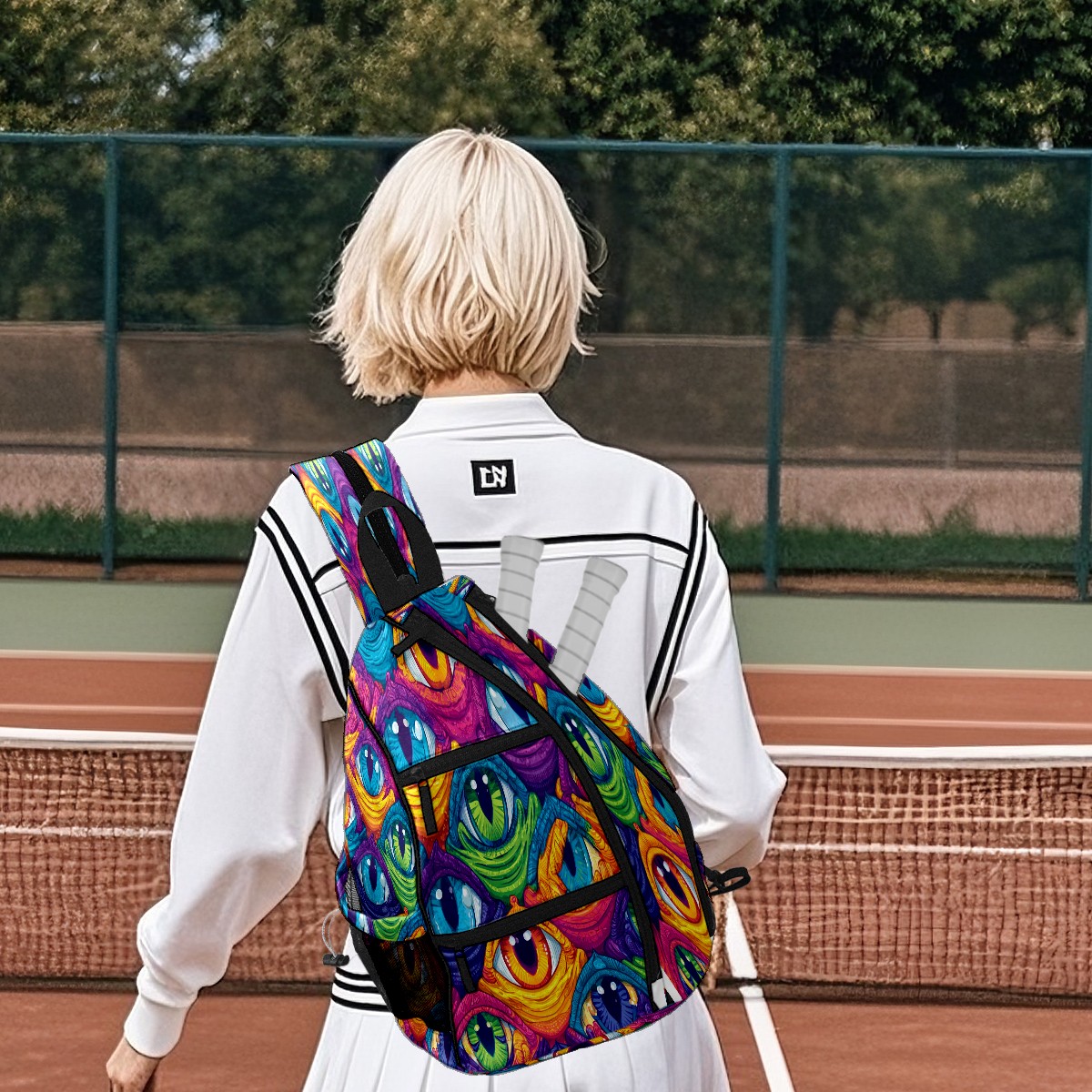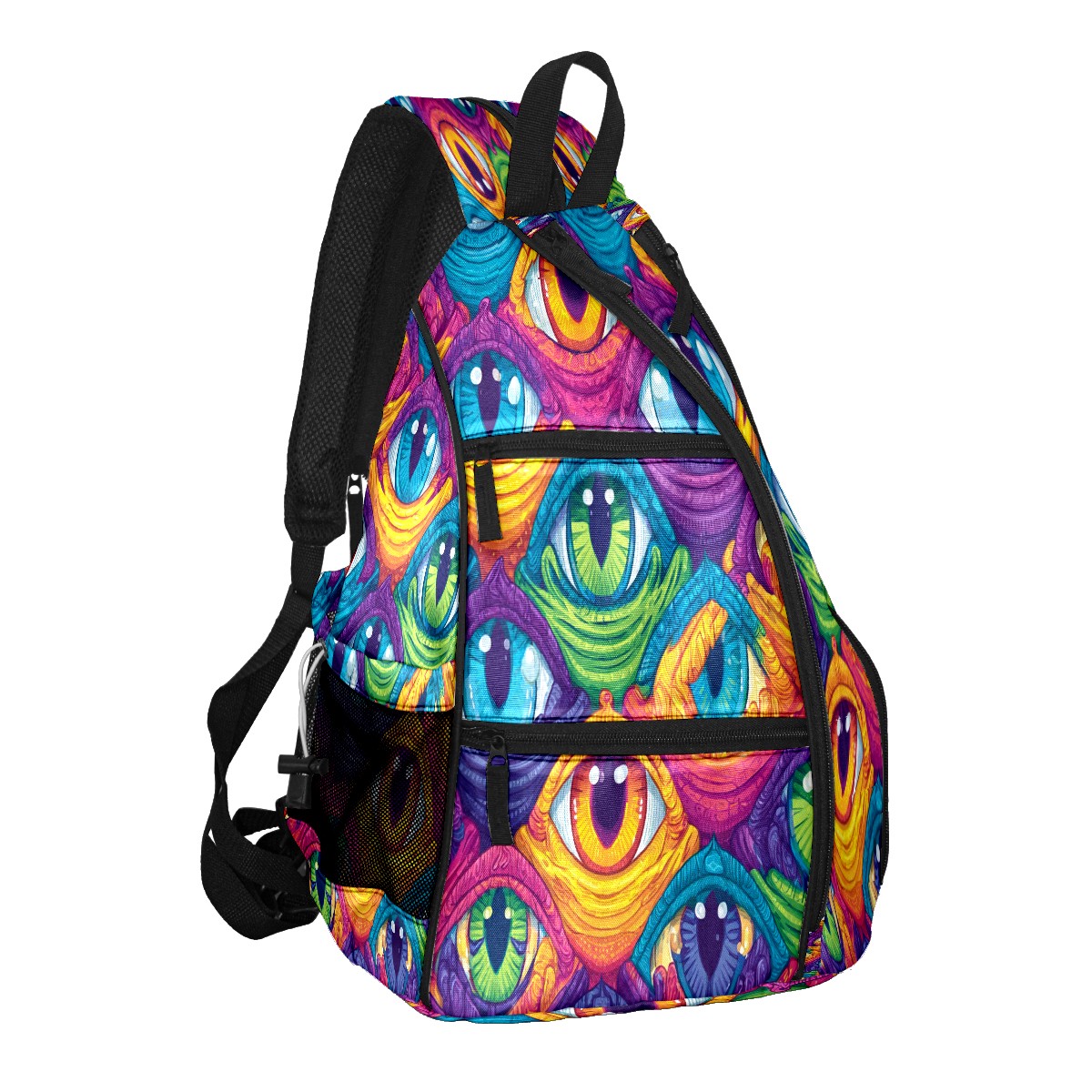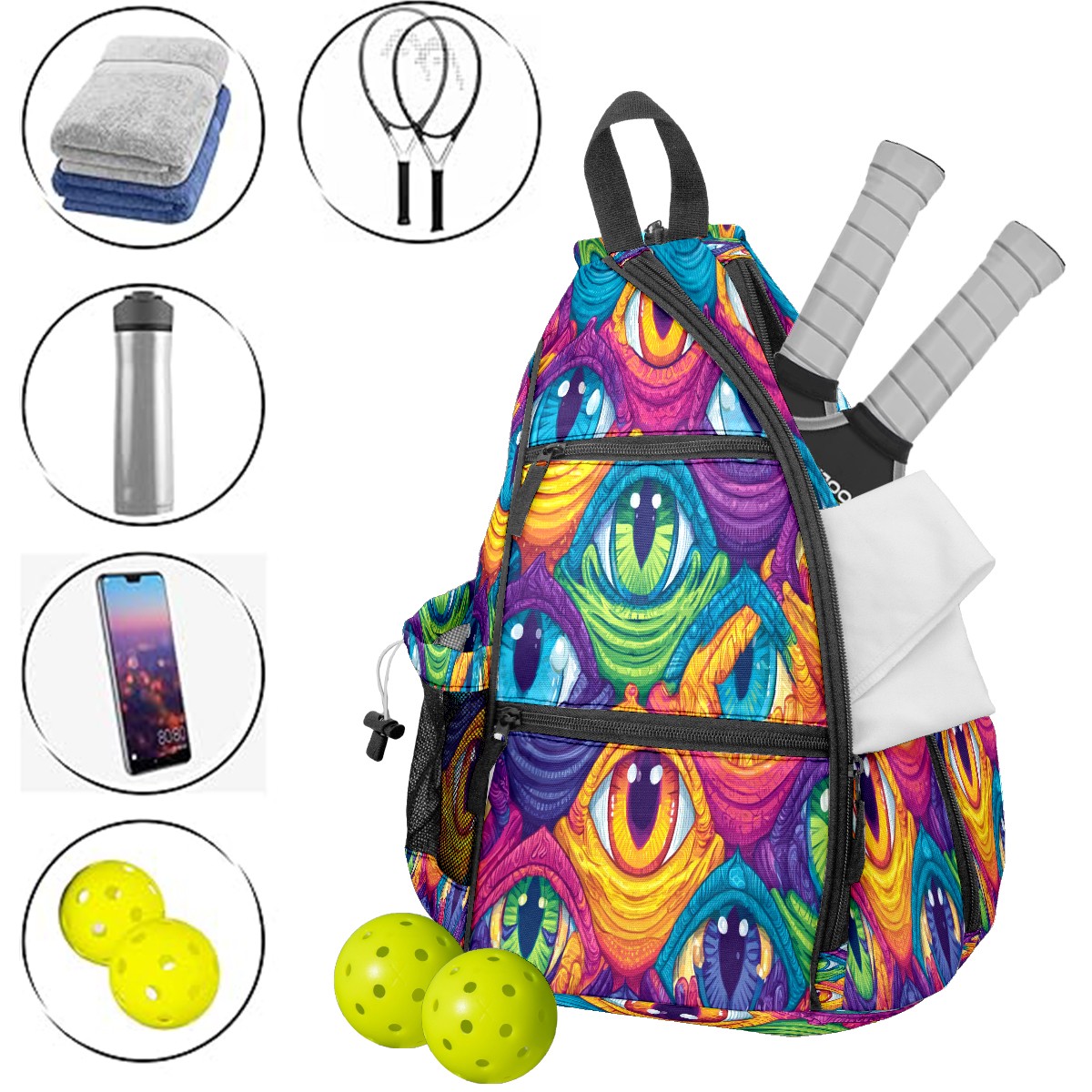 Pickleball Bag with Padded Back, Eyes Multicolor Multi-Compartment Paddle Backpack, Lightweight Nylon Sports Bag for Men & Women