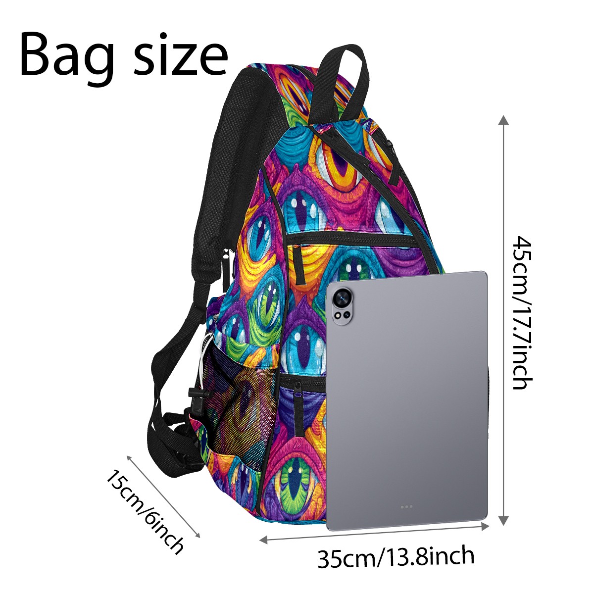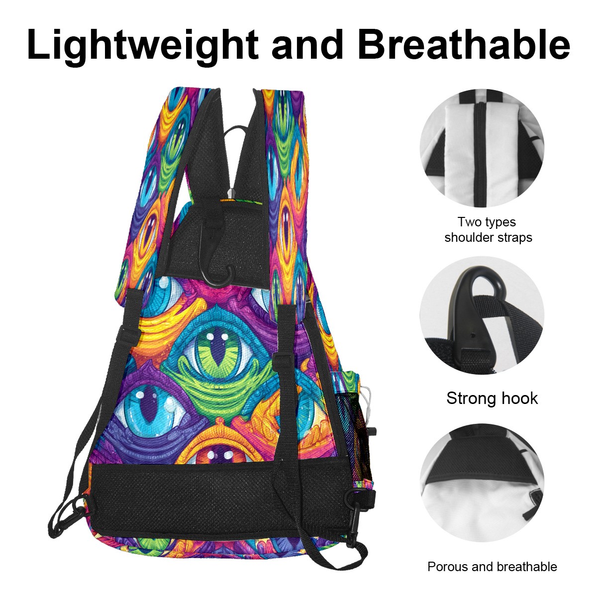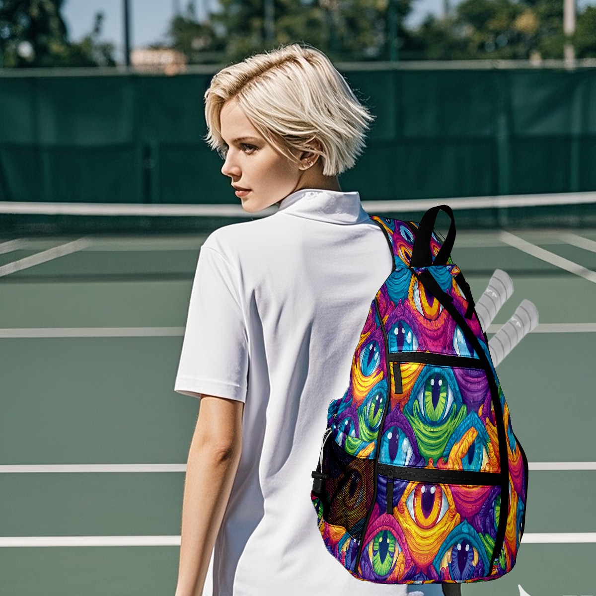 Pickleball Bag with Padded Back, Eyes Multicolor Multi-Compartment Paddle Backpack, Lightweight Nylon Sports Bag for Men & Women