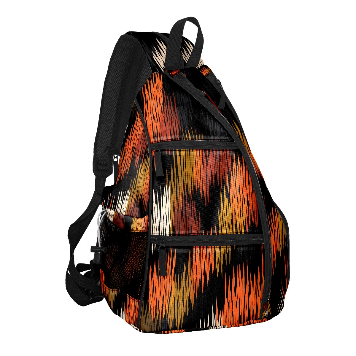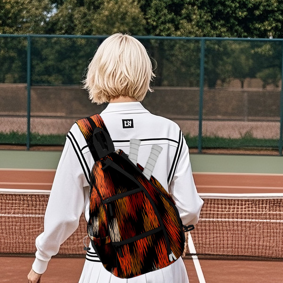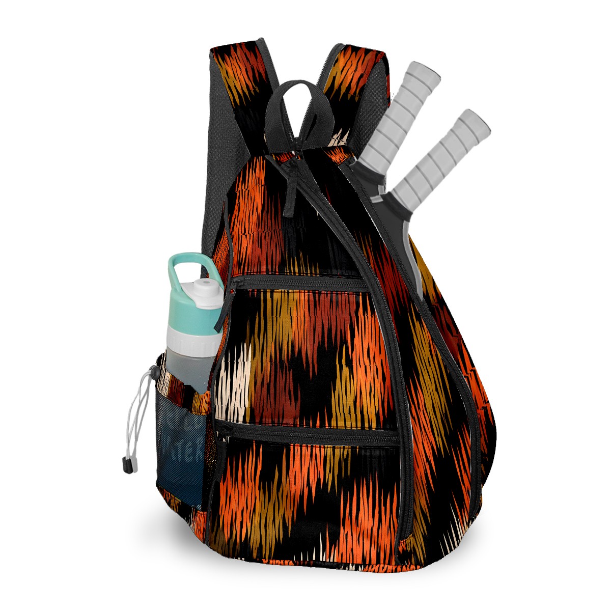 Pickleball Bag with Padded Back, Glitch Stripes BlackOrange Multi-Compartment Paddle Backpack, Lightweight Nylon Sports Bag for Men & Women