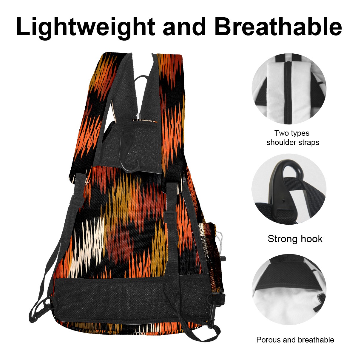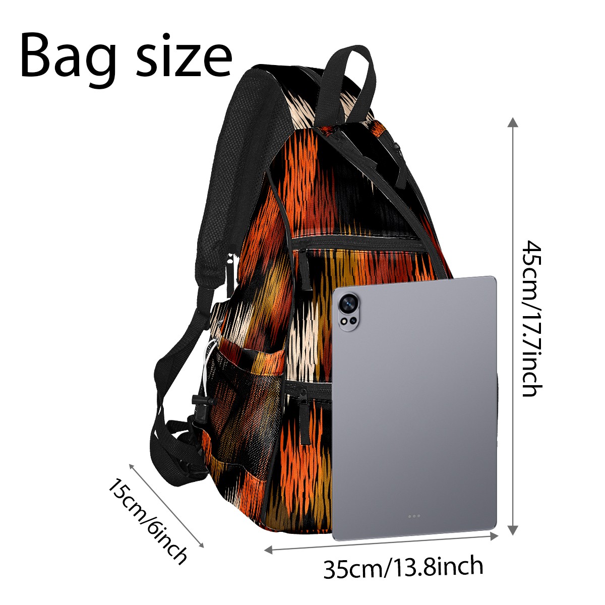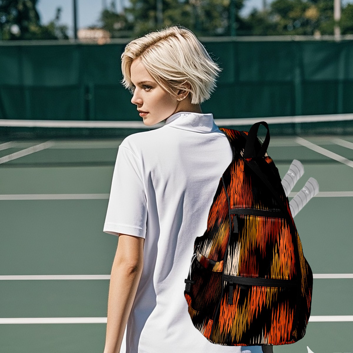 Pickleball Bag with Padded Back, Glitch Stripes BlackOrange Multi-Compartment Paddle Backpack, Lightweight Nylon Sports Bag for Men & Women
