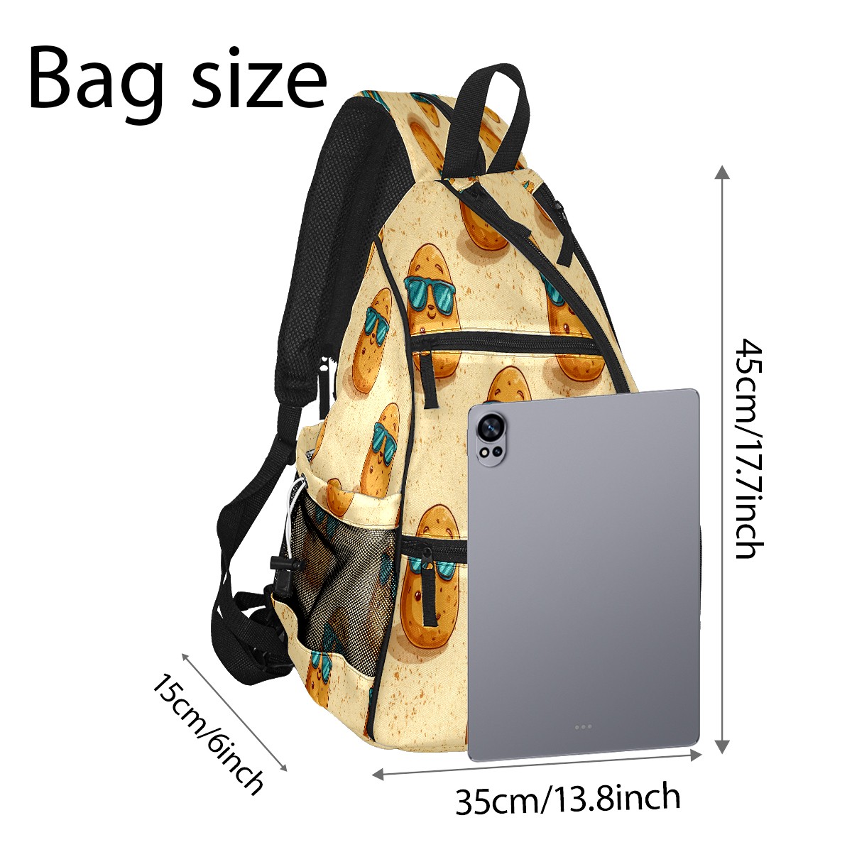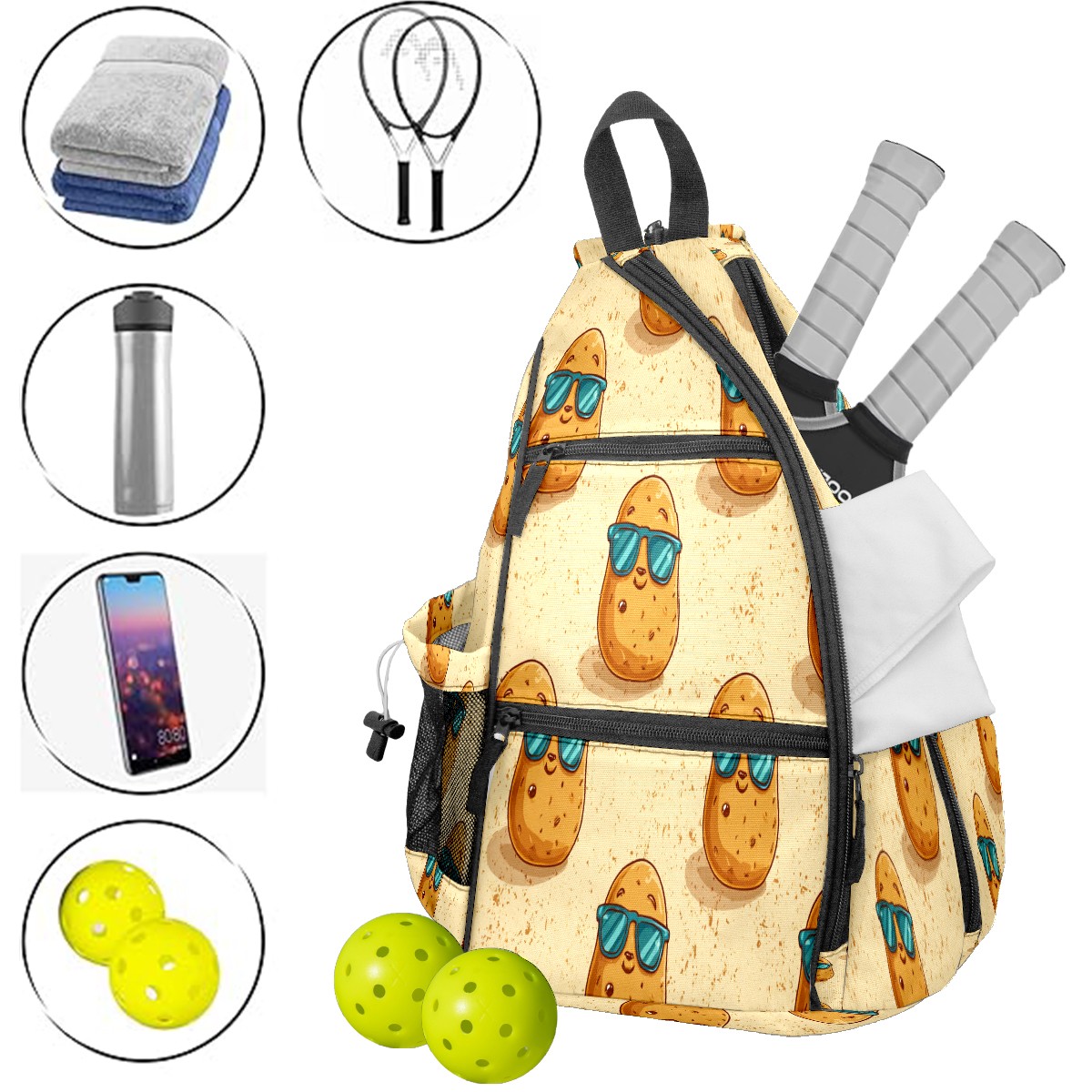 Pickleball Bag with Padded Back, Potato Cartoon Beige Multi-Compartment Paddle Backpack, Lightweight Nylon Sports Bag for Men & Women