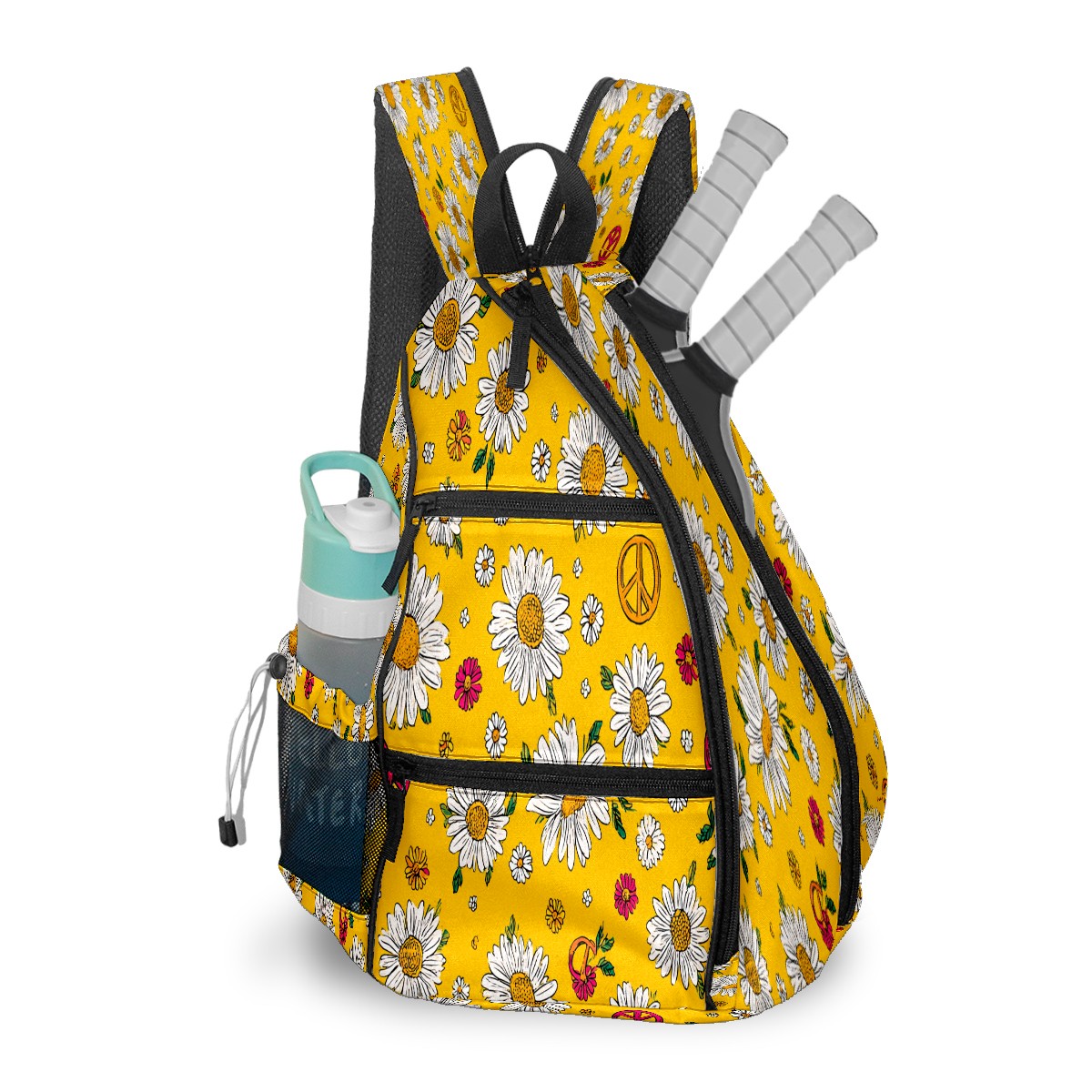 Pickleball Bag with Padded Back, Daisy Peace Yellow Multi-Compartment Paddle Backpack, Lightweight Nylon Sports Bag for Men & Women