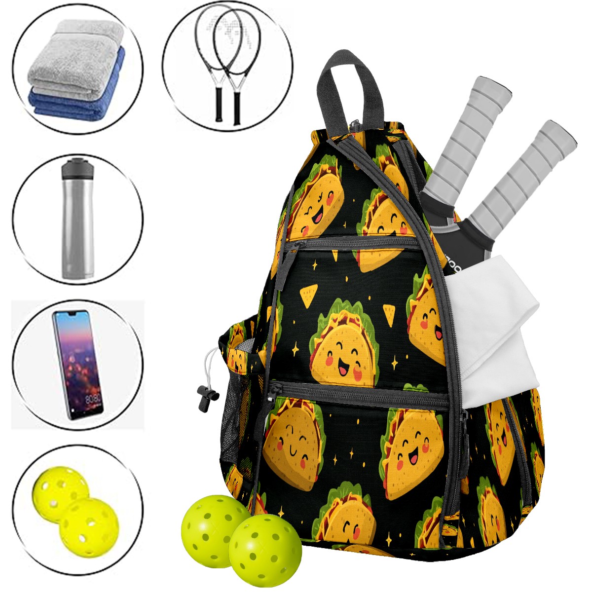 Pickleball Bag with Padded Back, Taco BlackYellow Multi-Compartment Paddle Backpack, Lightweight Nylon Sports Bag for Men & Women