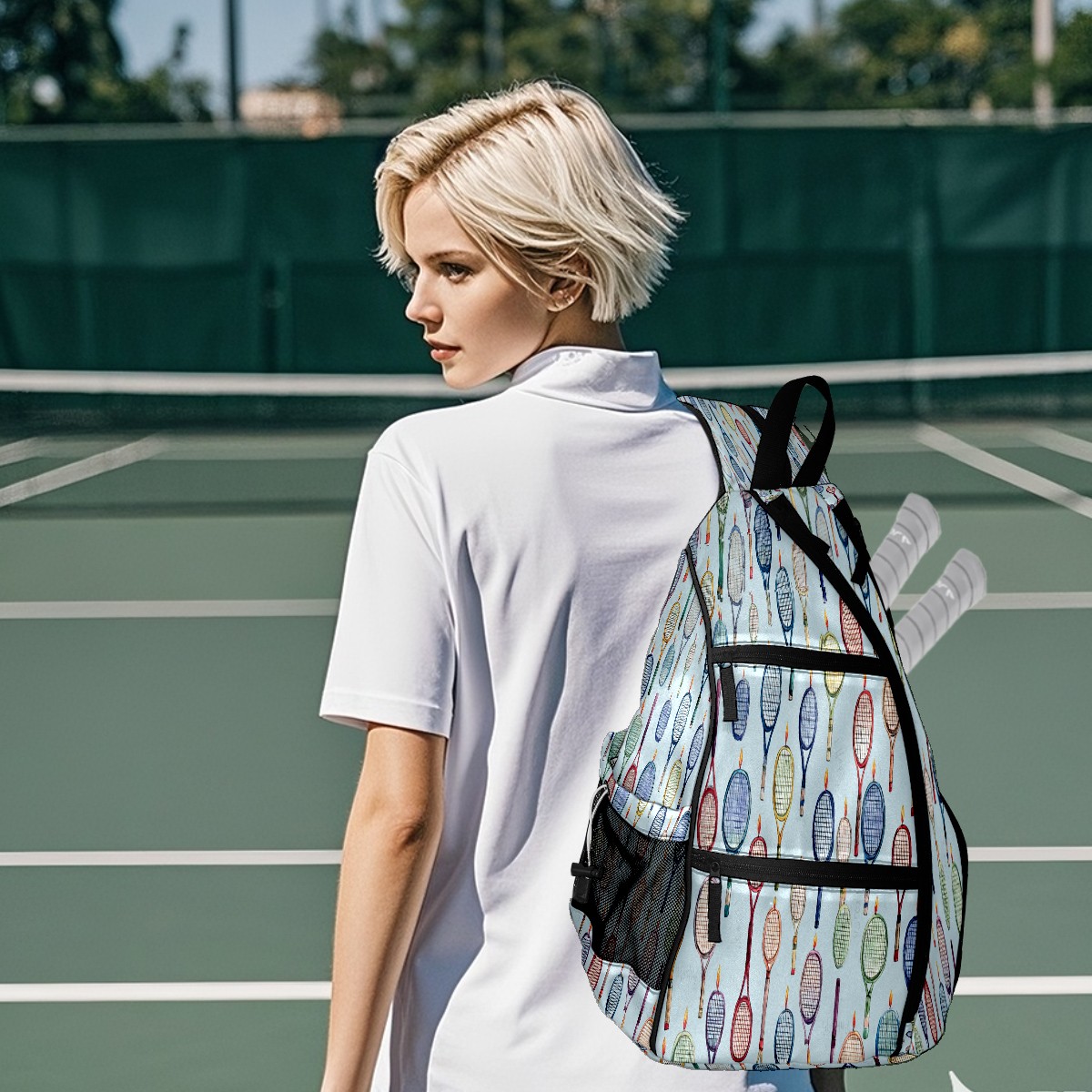 Pickleball Bag with Padded Back, Light Blue Tennis Rackets Multi-Compartment Paddle Backpack, Lightweight Nylon Sports Bag for Men & Women