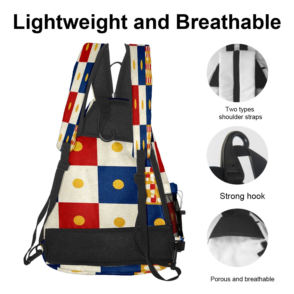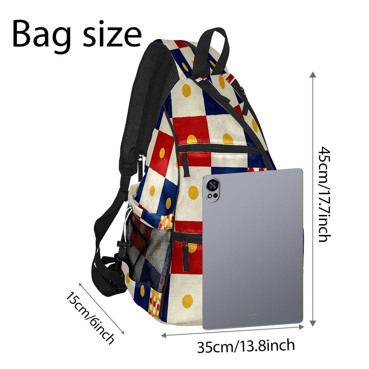 Pickleball Bag with Padded Back, Multicolor Checker Multi-Compartment Paddle Backpack, Lightweight Nylon Sports Bag for Men & Women