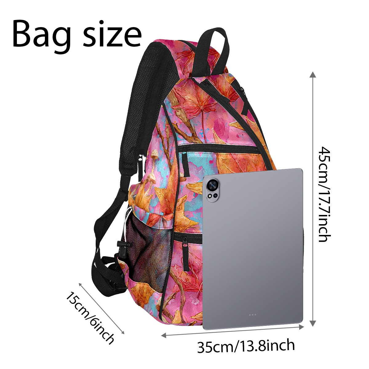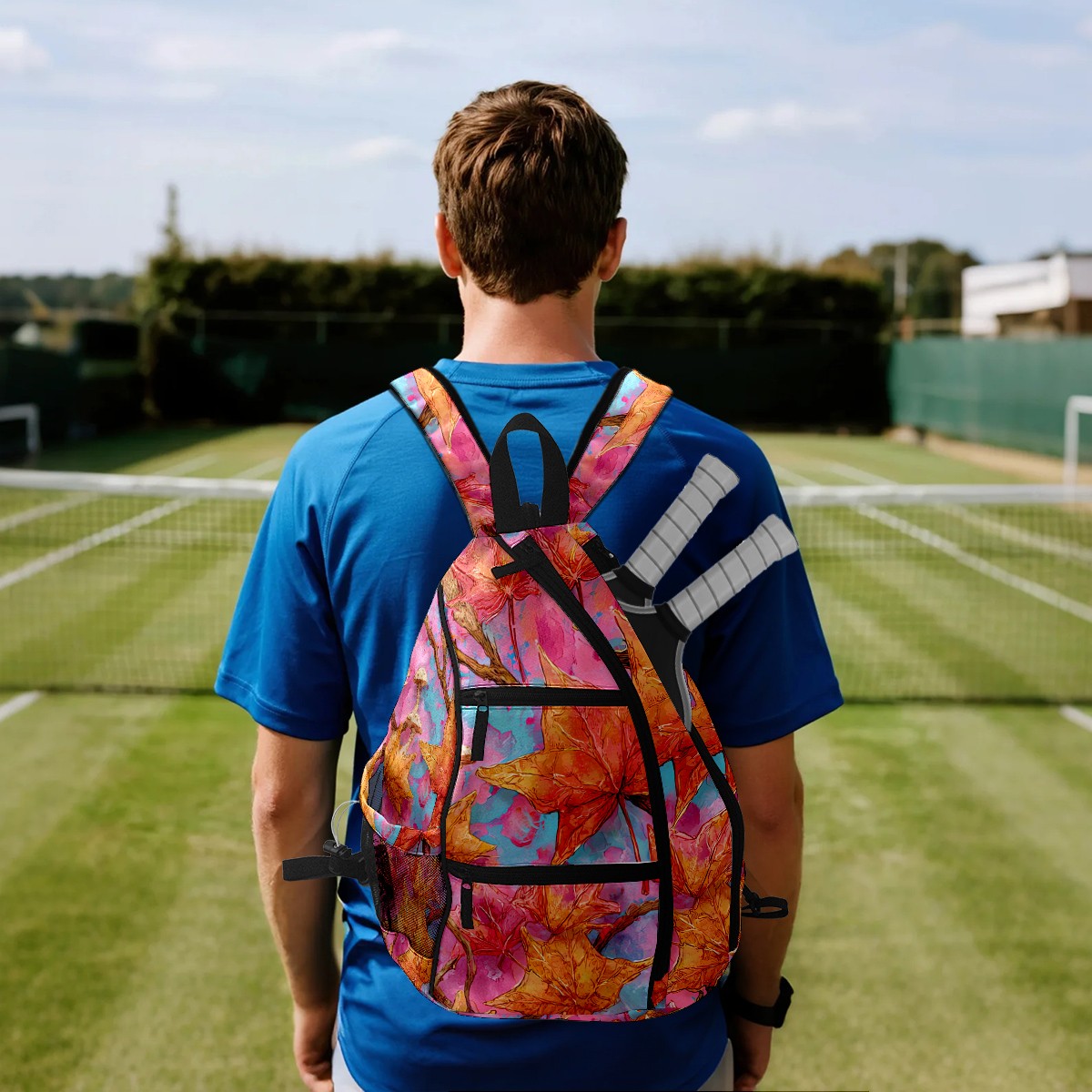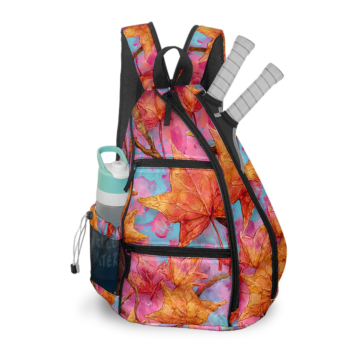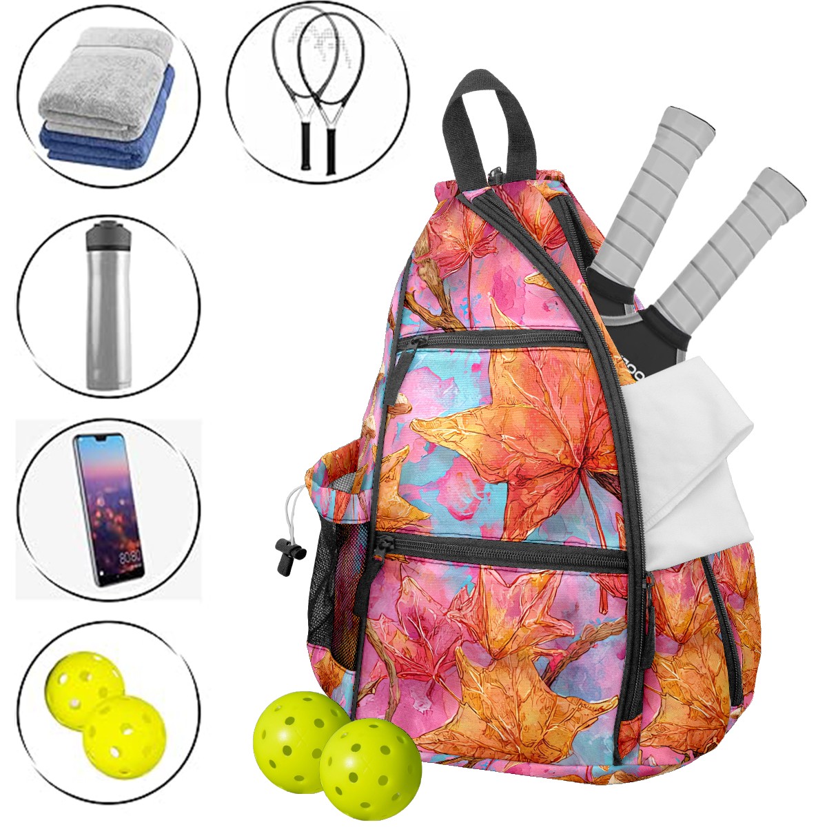 Pickleball Bag with Padded Back, Pink Autumn Leaves Multi-Compartment Paddle Backpack, Lightweight Nylon Sports Bag for Men & Women