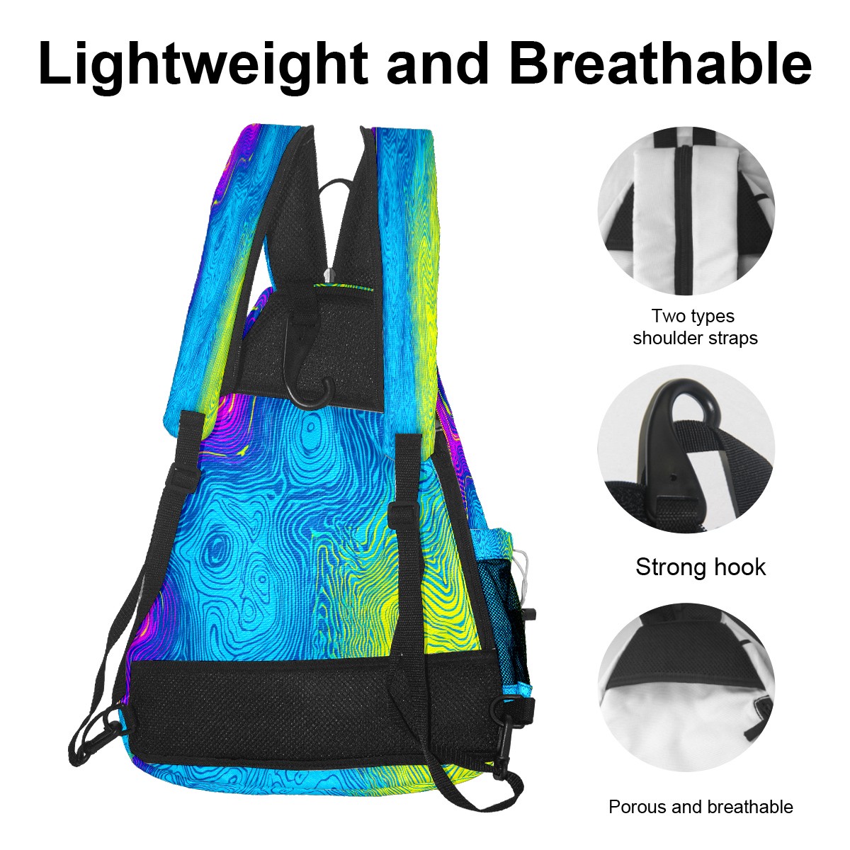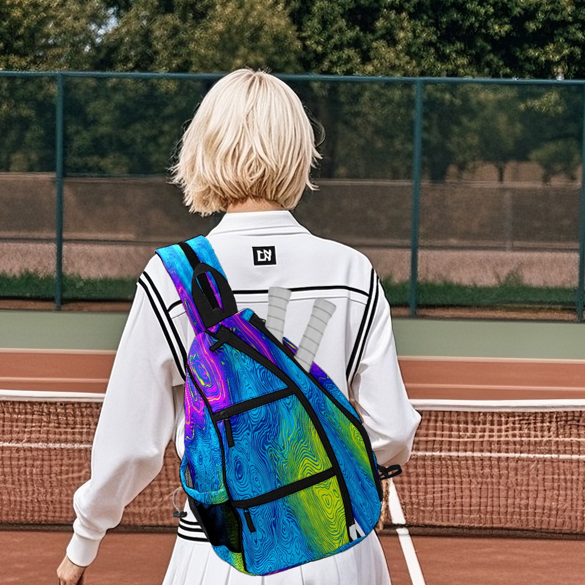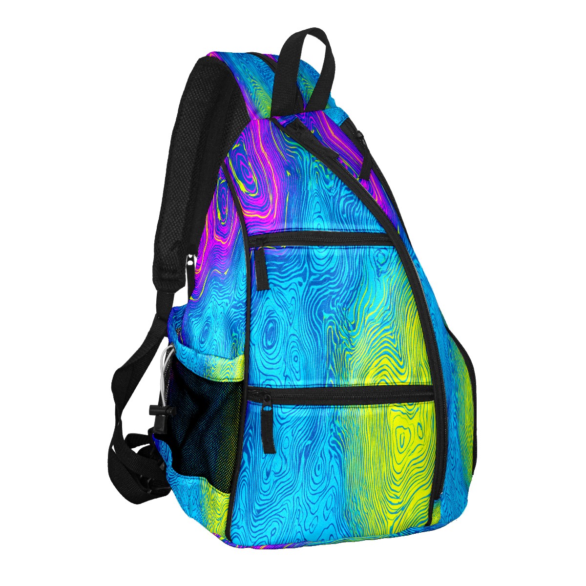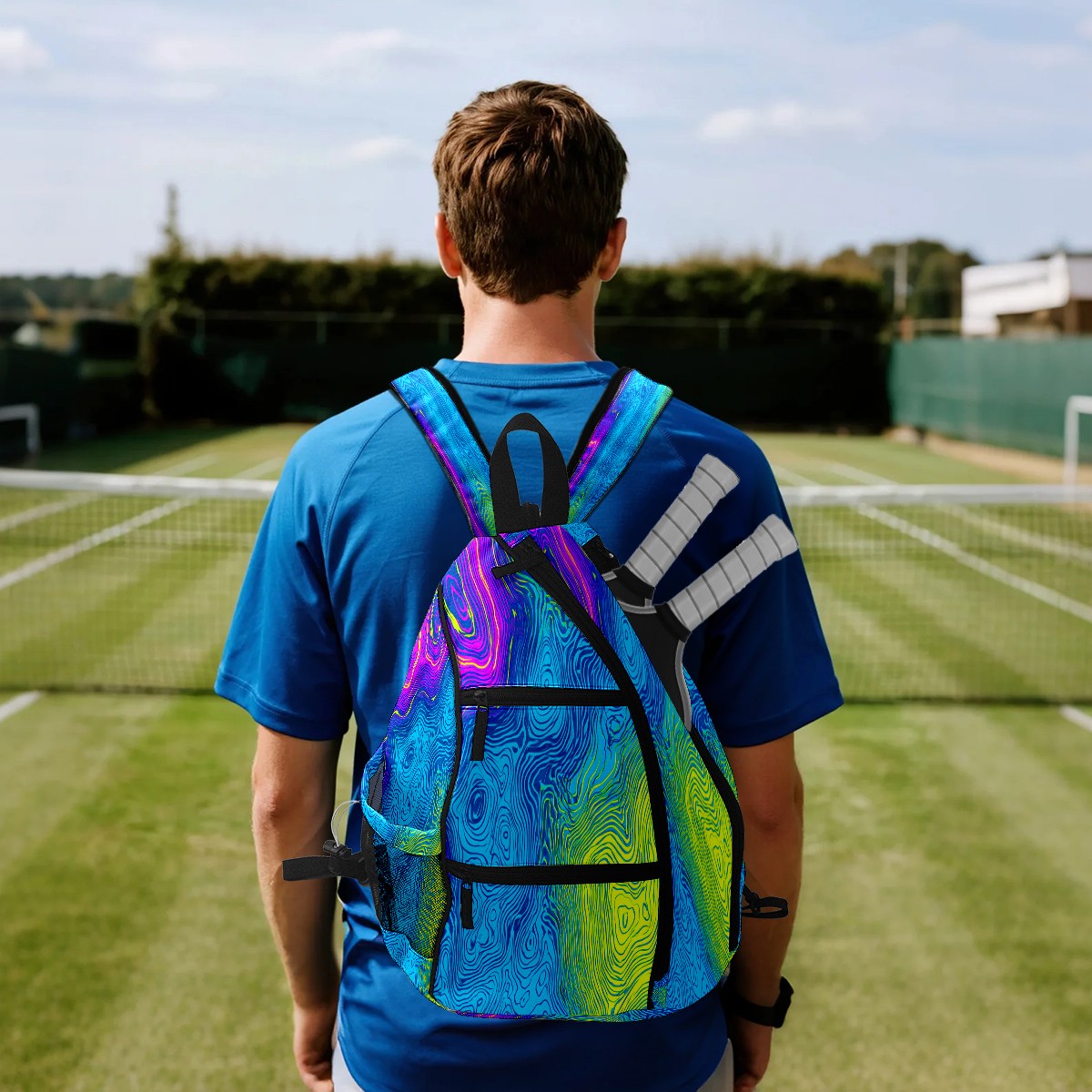 Pickleball Bag with Padded Back, Neon Blue Fluid Multi-Compartment Paddle Backpack, Lightweight Nylon Sports Bag for Men & Women