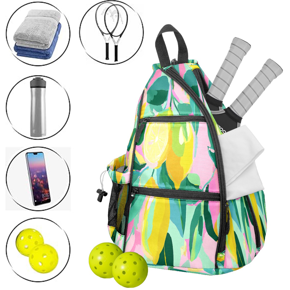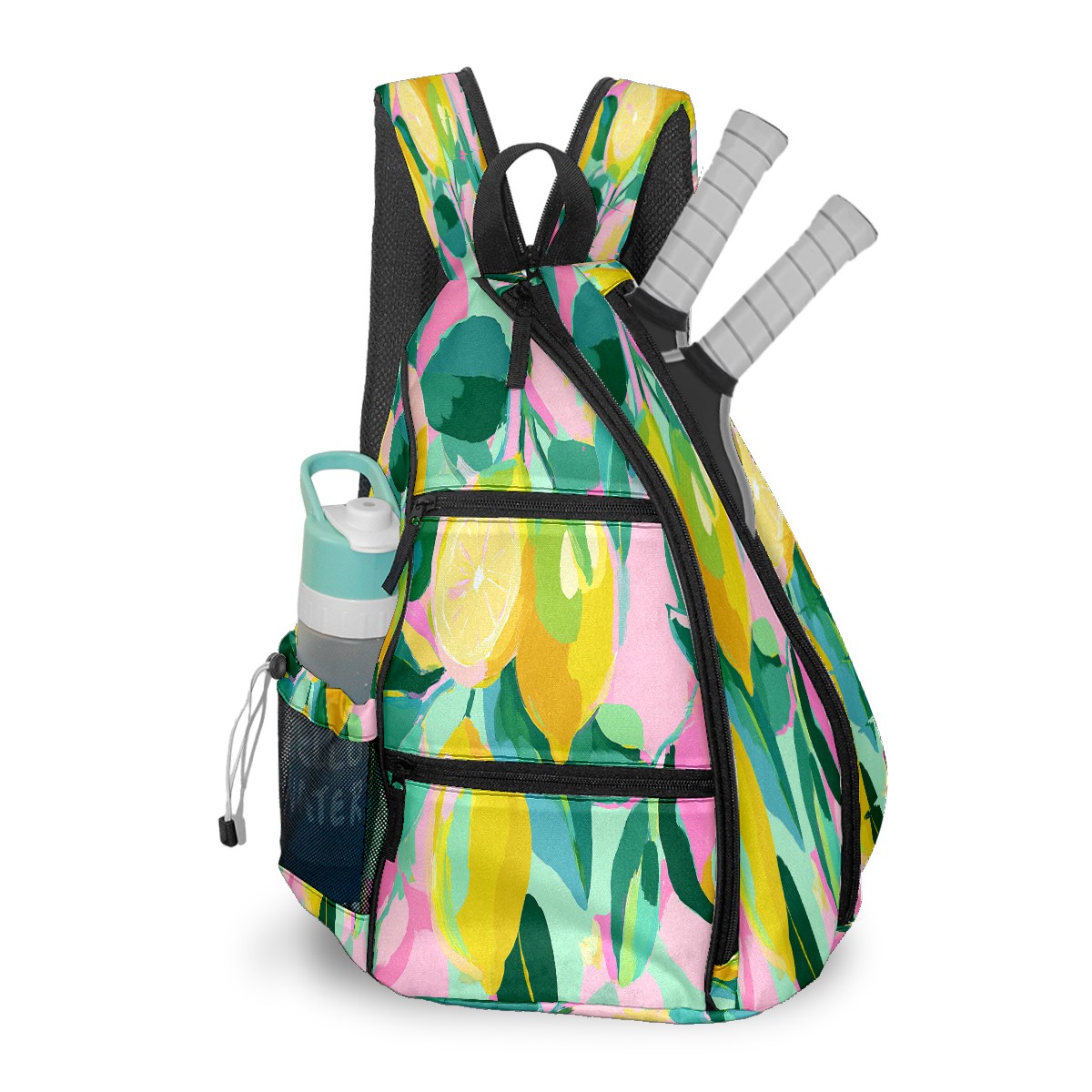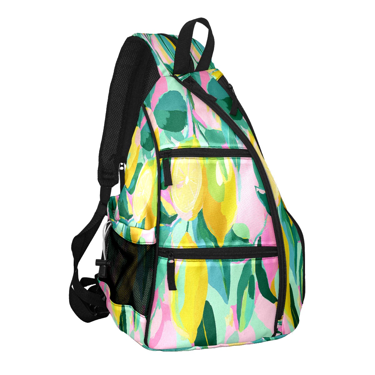 Pickleball Bag with Padded Back, Lemons PinkYellow Multi-Compartment Paddle Backpack, Lightweight Nylon Sports Bag for Men & Women