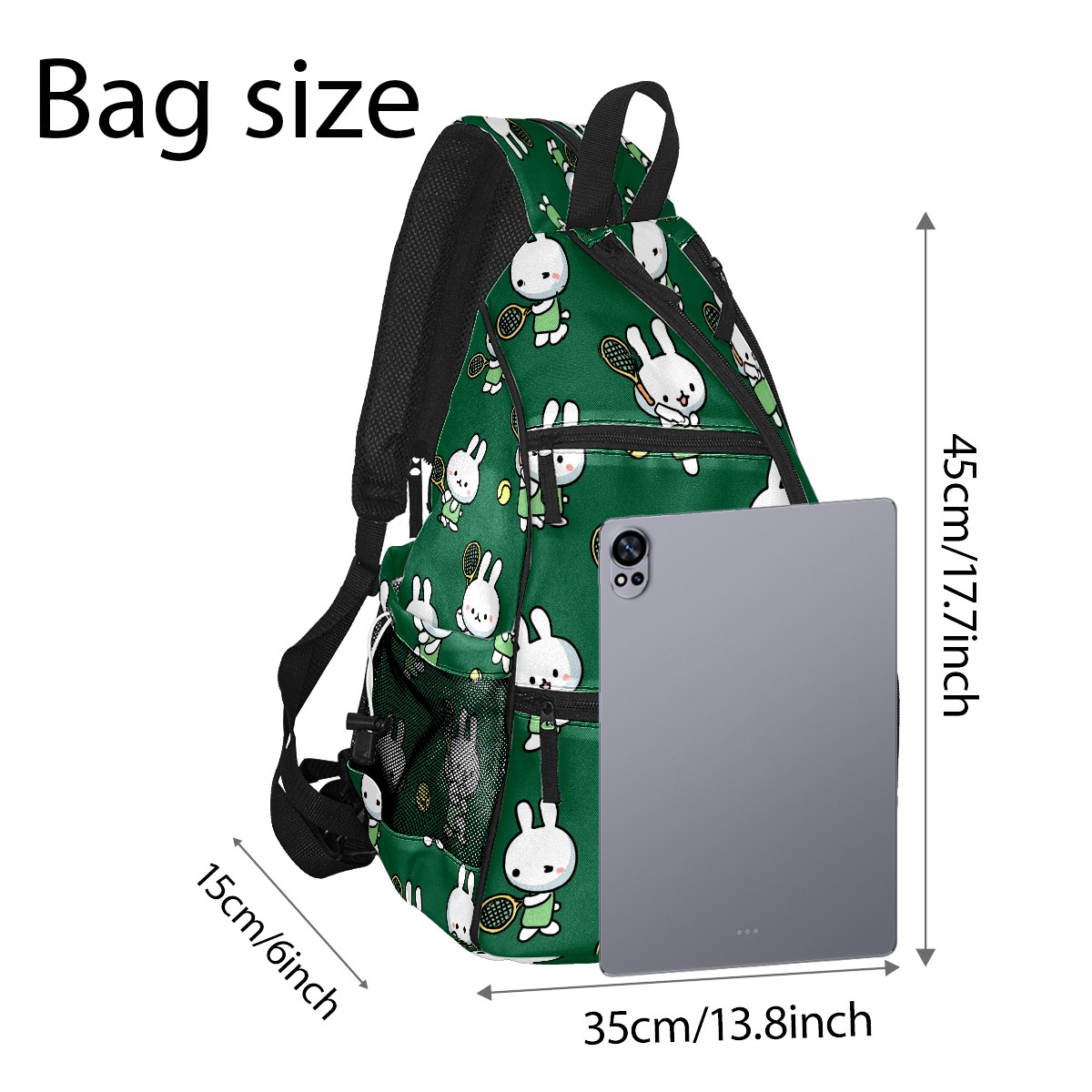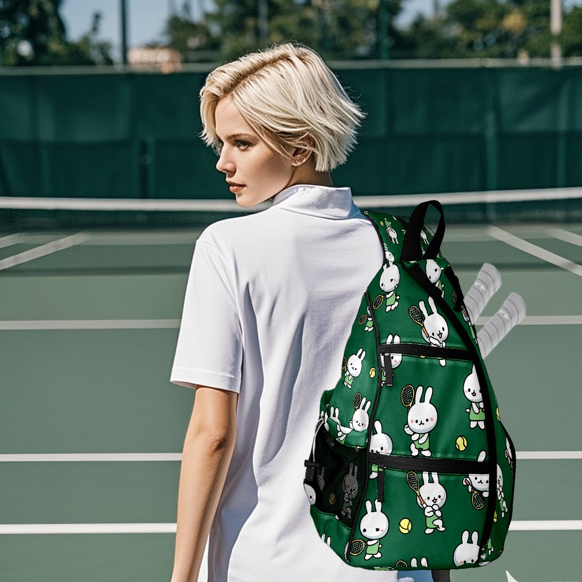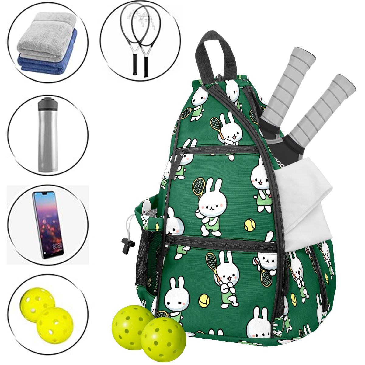 Pickleball Bag with Padded Back, Rabbits Tennis Green Multi-Compartment Paddle Backpack, Lightweight Nylon Sports Bag for Men & Women