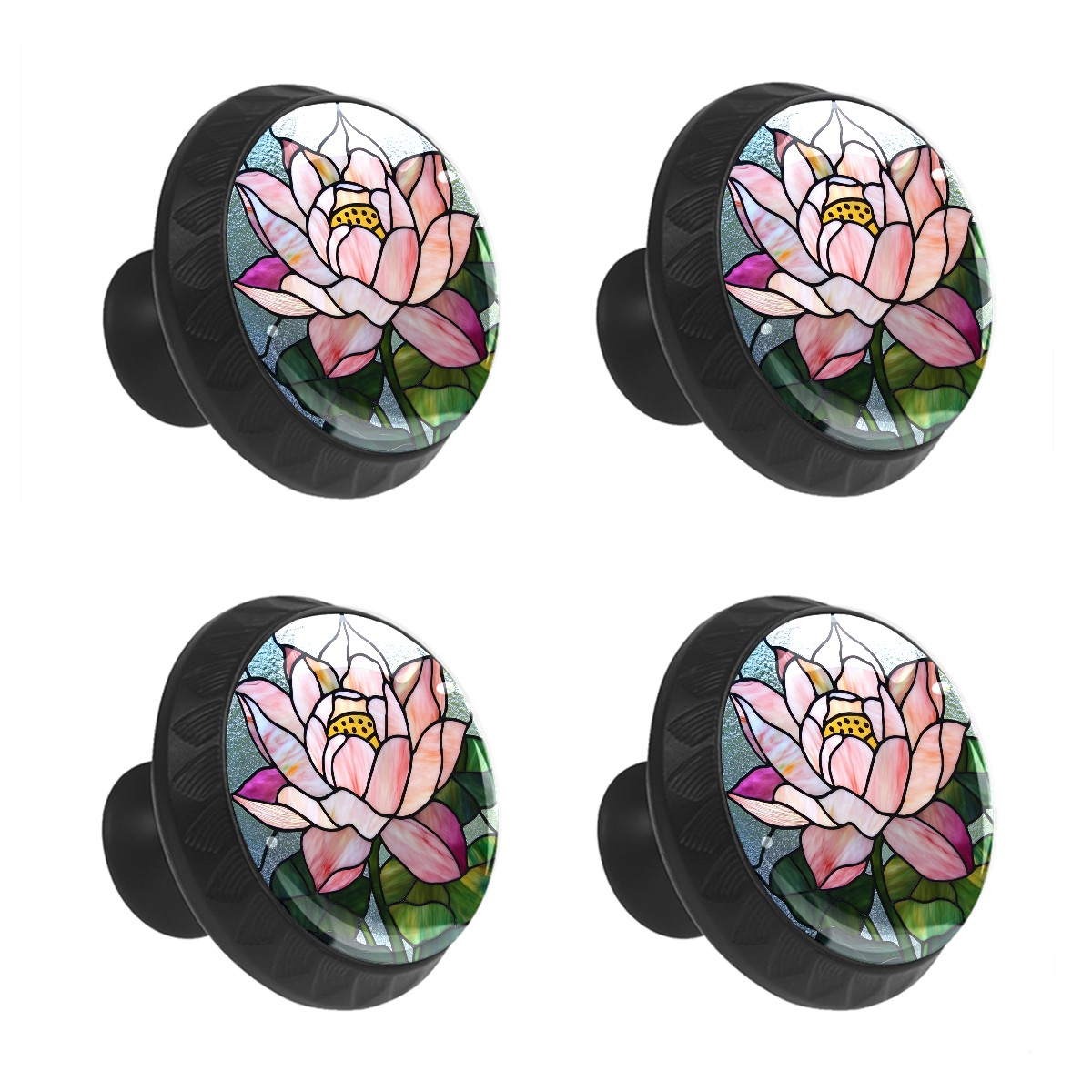 4 Pcs Drawer Pulls Knobs Stained Glass Pink Lotus Flower Round Crystal Glass Knobs Pulls for Dressers Kitchen Cabinets Drawers Wardrobe Cupboard Furniture Hardware Handles