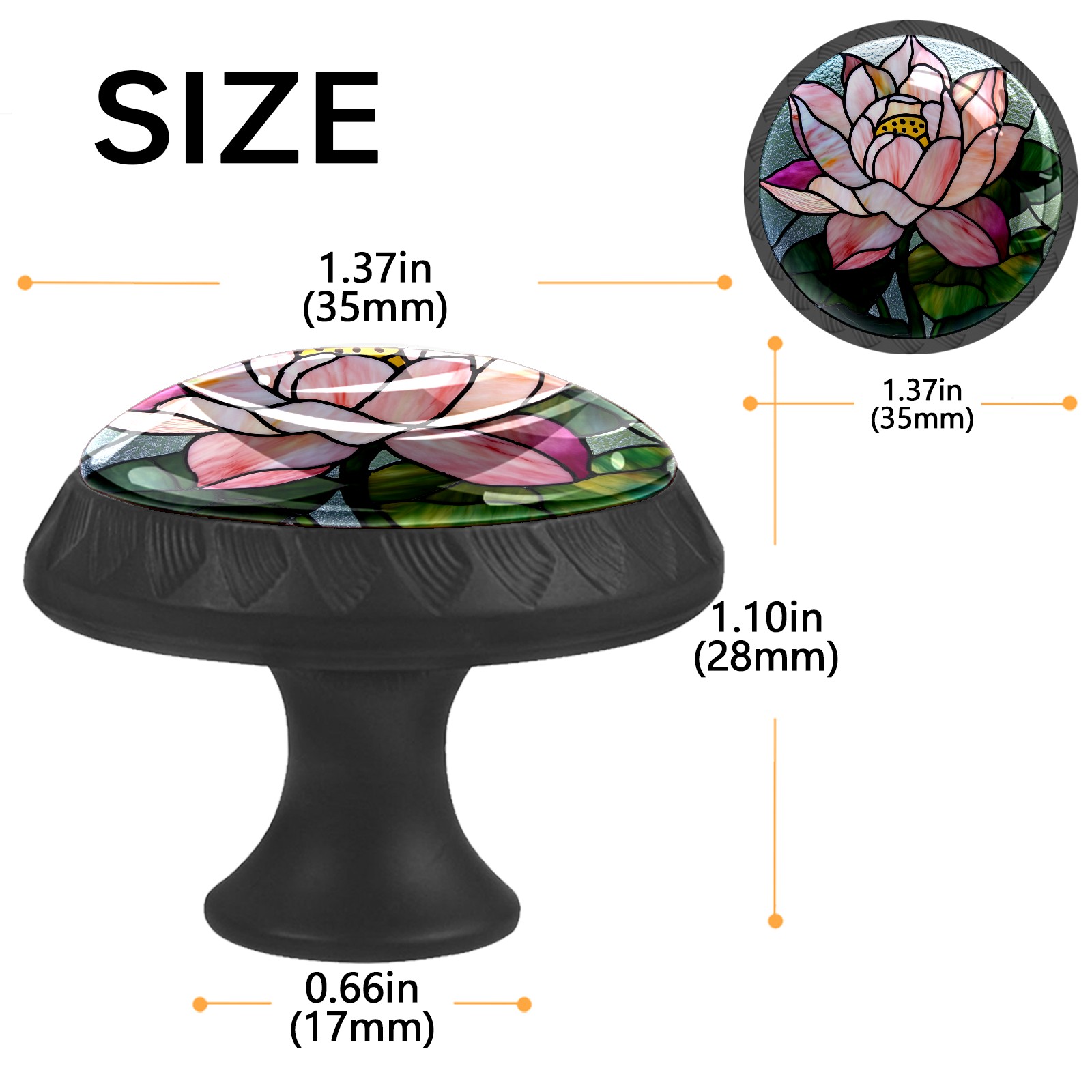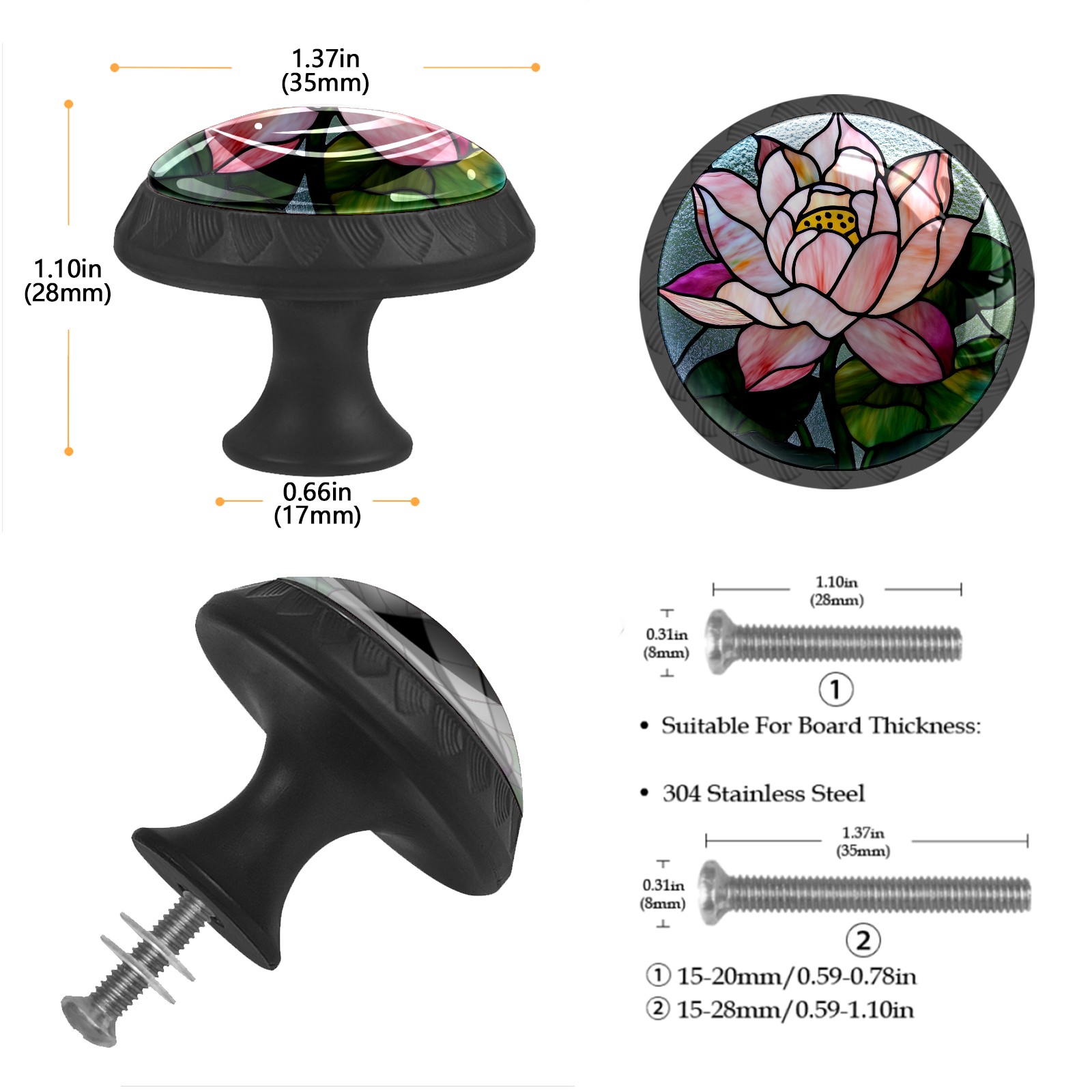 <p><b>Package includes:</b></p> <p>4 x cabinet knobs</p> <p>4 x screws 1.1'' (28 mm) </p> <p>4 x screws 1.37'' (35 mm)</p> <p><b>How to Install?</b></p> <p>1. Drill a hole in the drawer panel.</p> <p>2. Pass the screw through from the backside of the drawer.</p> <p>3. Tighten the knob onto the screw.</p> <p>ABS + Glass: The combination of sturdy ABS with high-transparency glass offers a long-lasting shine that enhances the quality of your home. Suitable for cabinets, drawers, dressers, wardrobes, office furniture, etc.</p> <p>Easy Maintenance: The smooth glass surface wipes clean easily, making it ideal for long-term use in kitchens and bathrooms.</p>