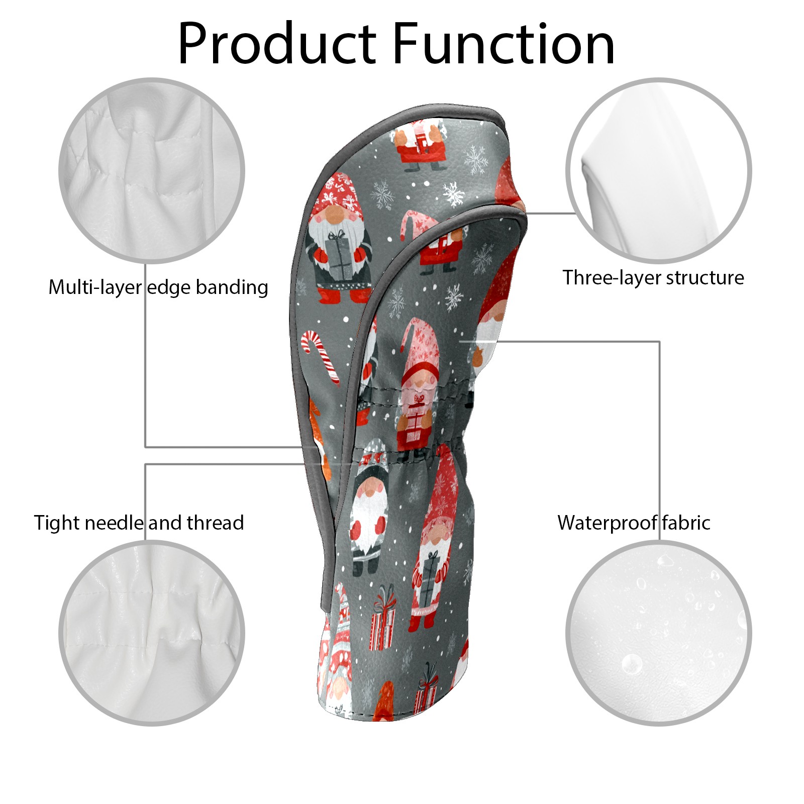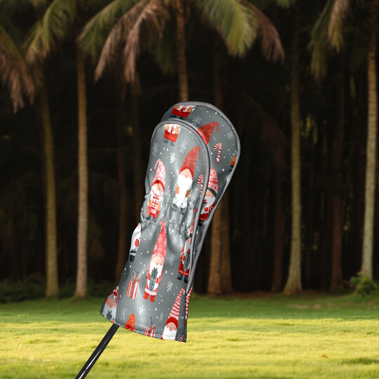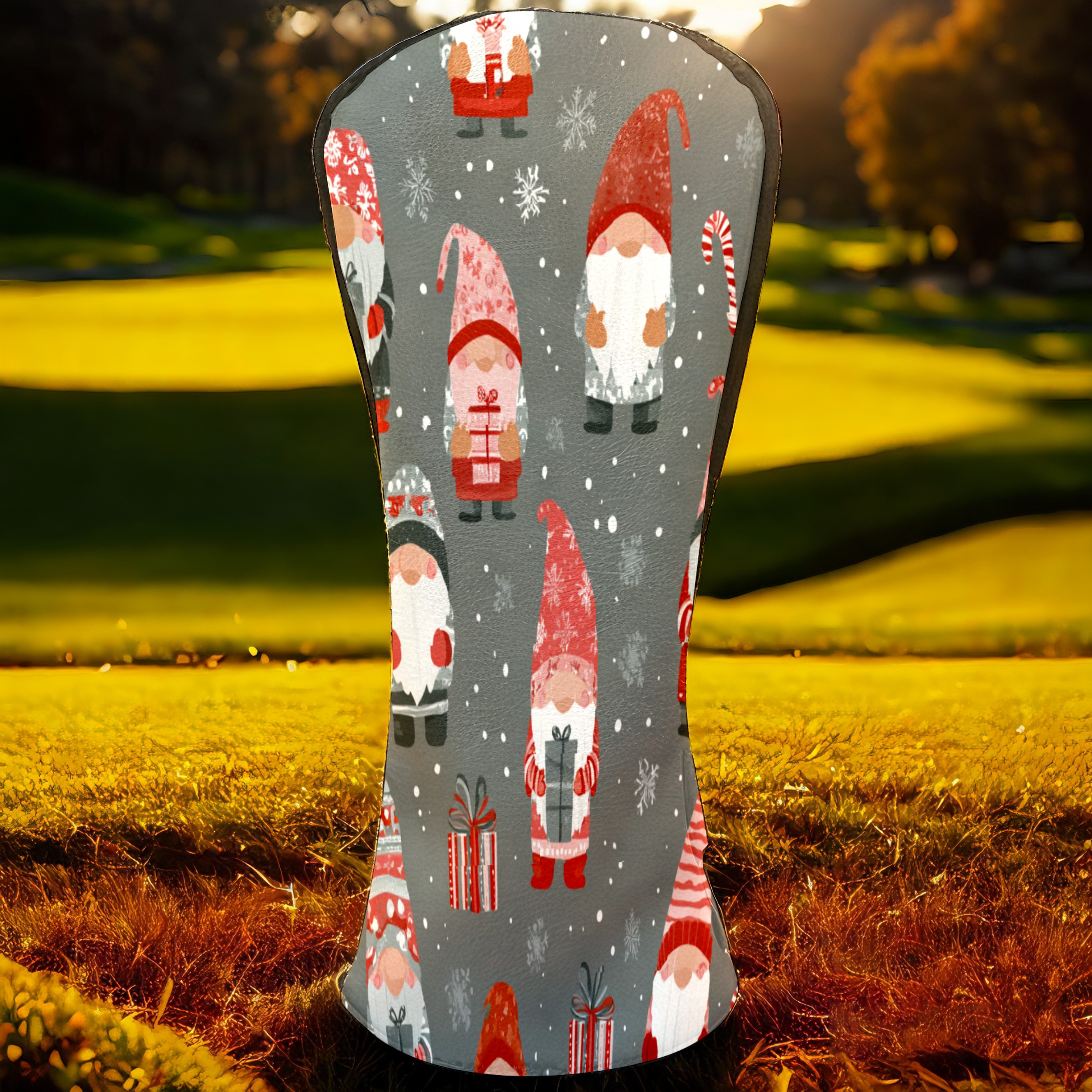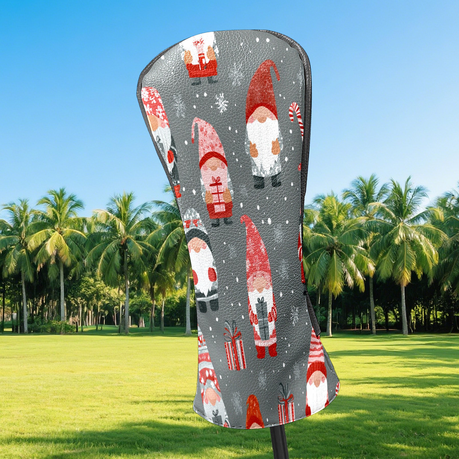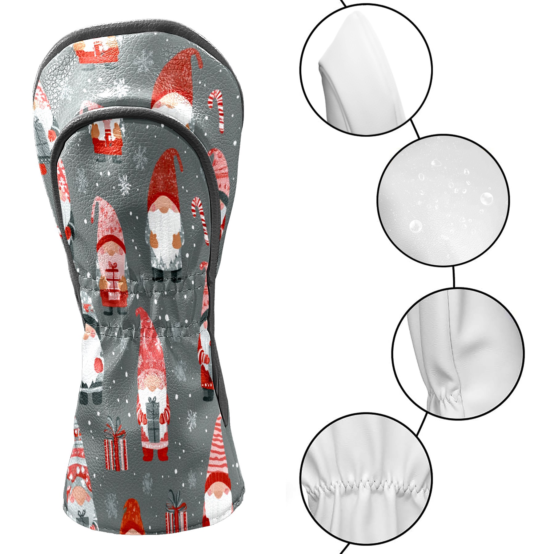 Golf Club Head Cover Waterproof Leather for Driver & Fairway Wood, Driver Headcovers, Golf Accessories for Men Women, Anti-Scratch, Golf Gift for Golfers, 1/3/5 Wood Cover Gray Xmas Gnomes