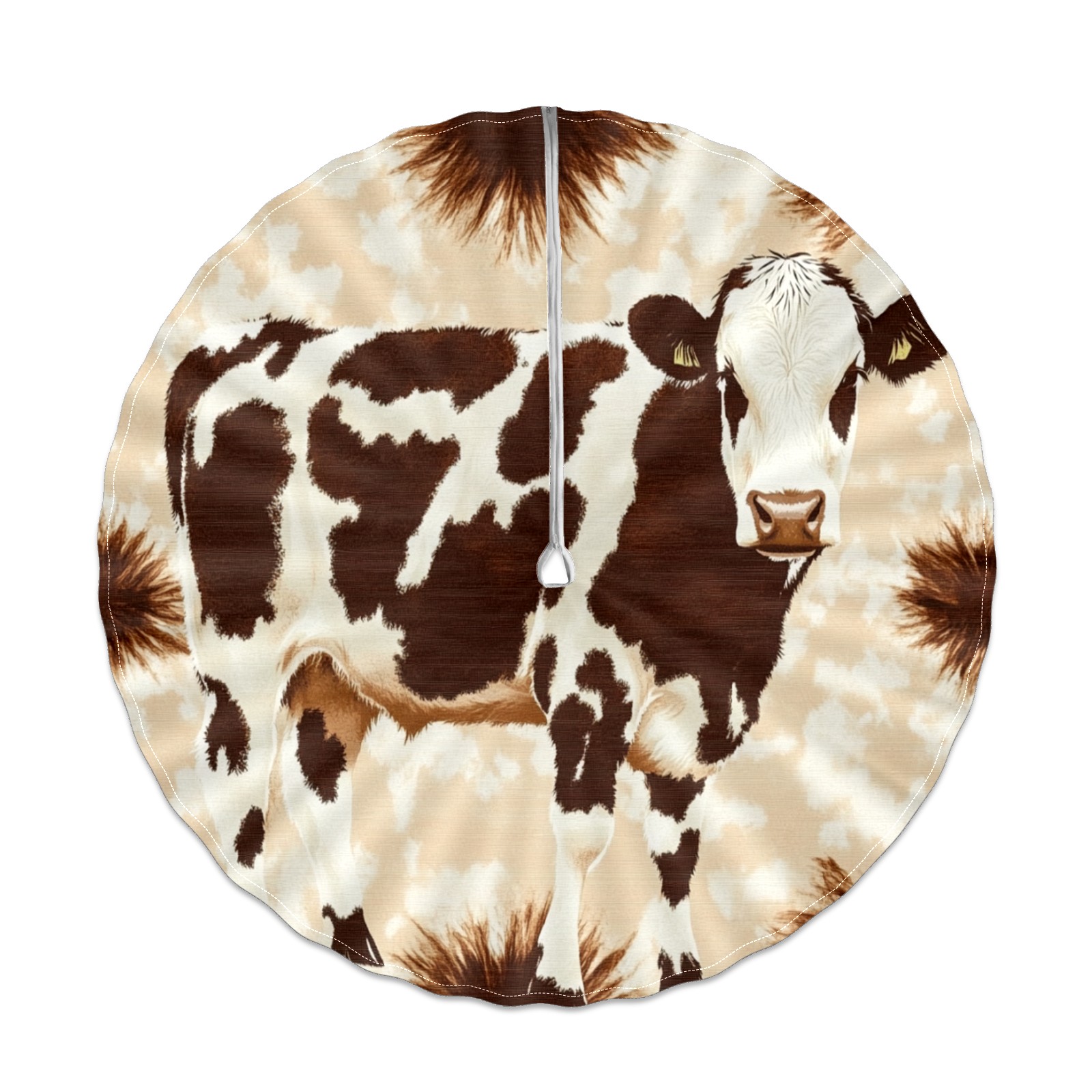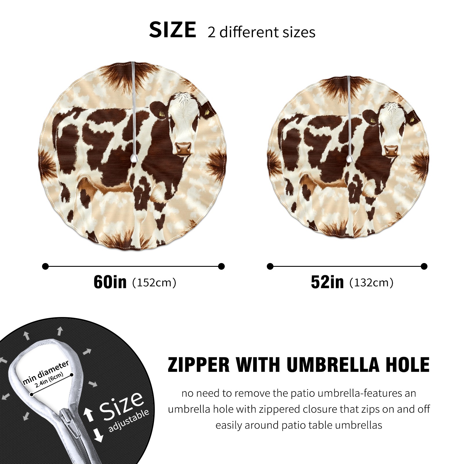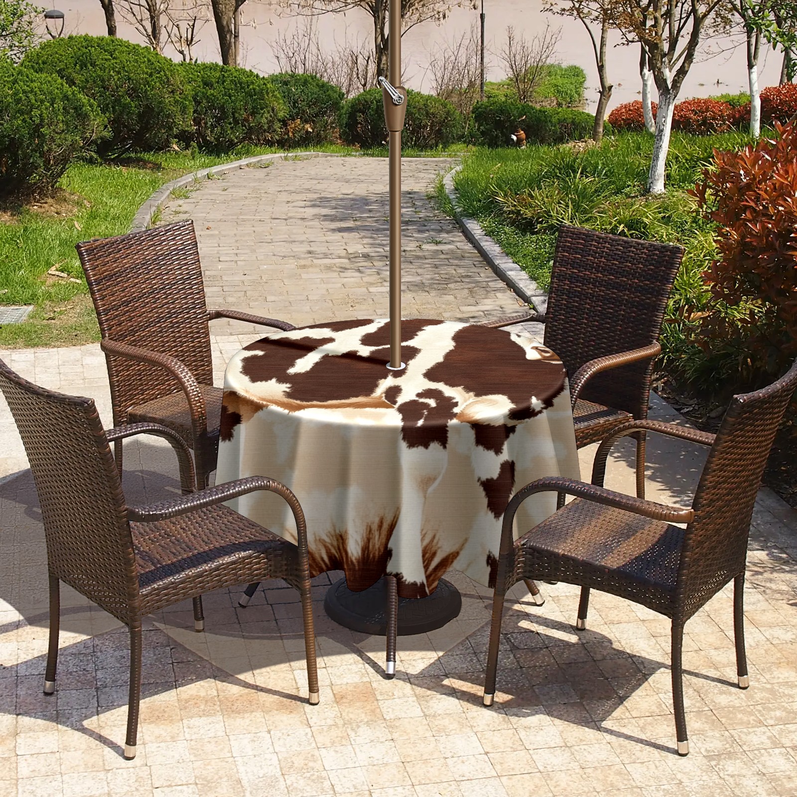 Round Tablecloth with Adjustable Zippered Umbrella Hole Polyester Table Cover Easy Install for Patio, Restaurant & Outdoor Dining Cow Pattern (60in)