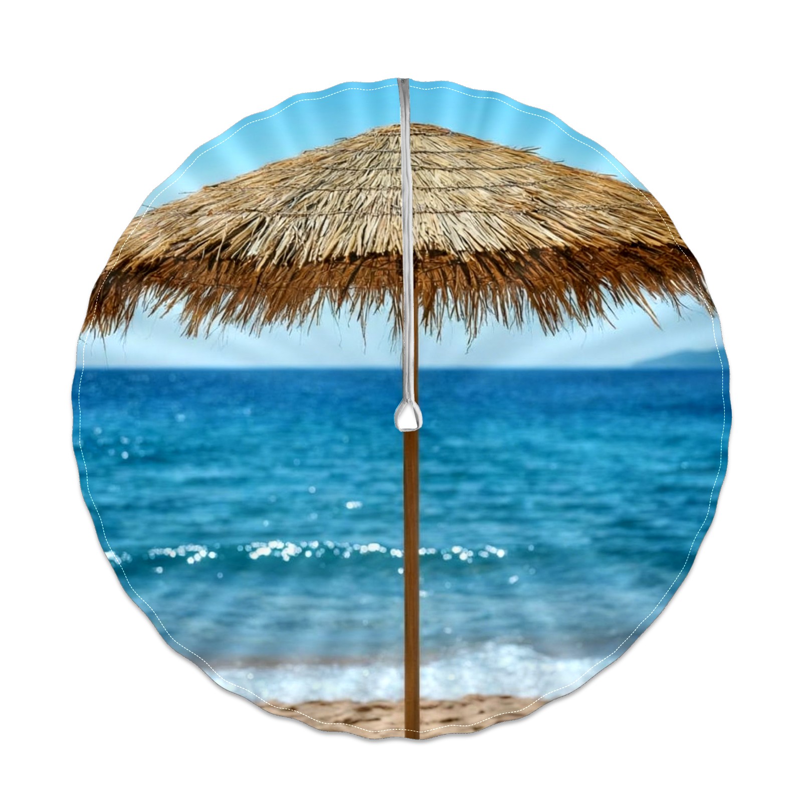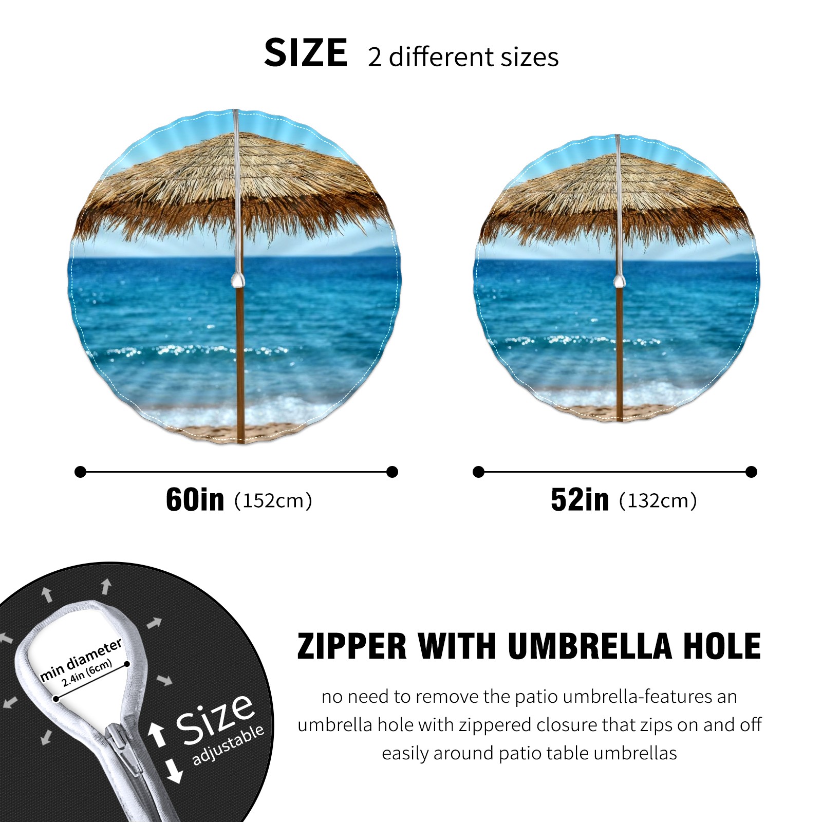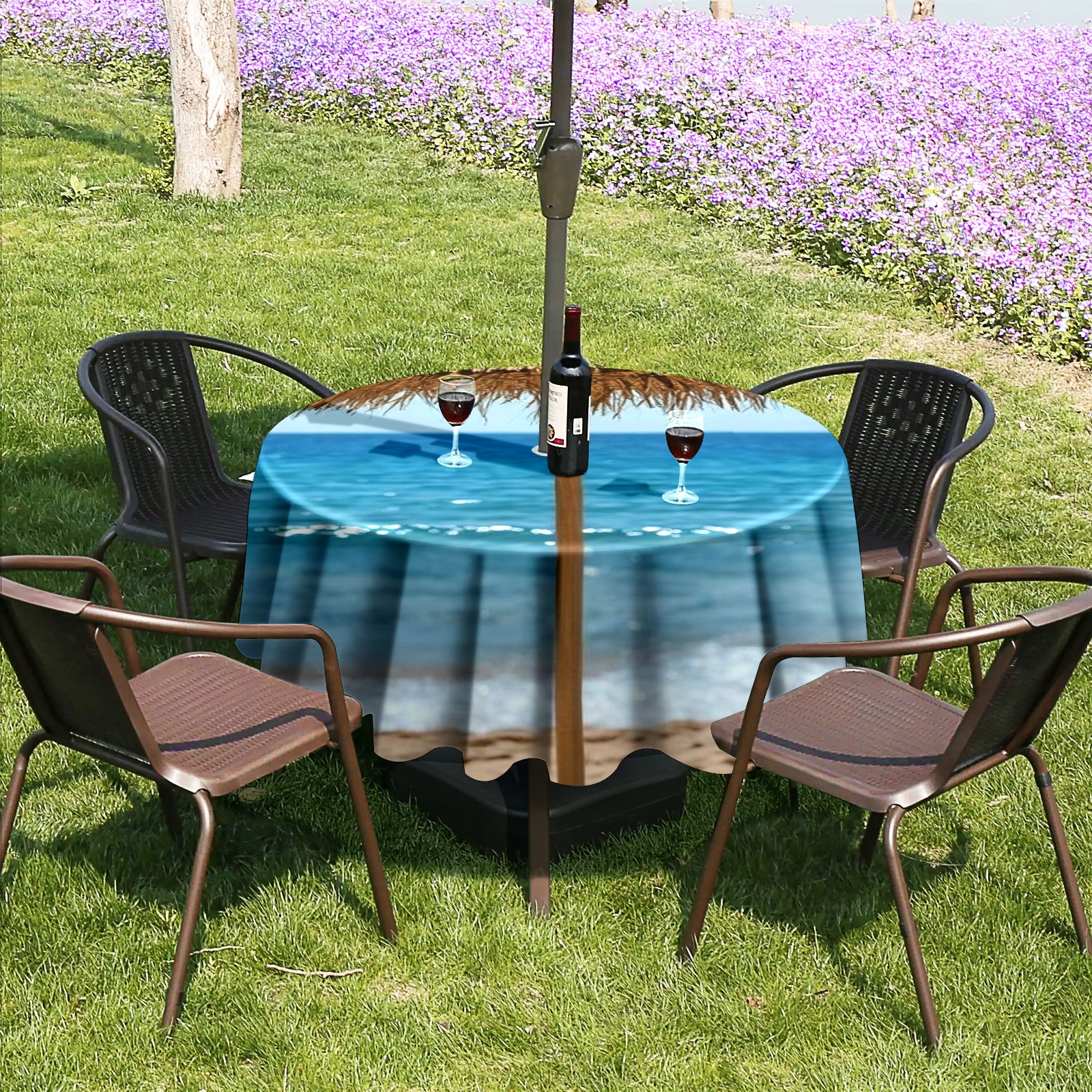Round Tablecloth with Adjustable Zippered Umbrella Hole Polyester Table Cover Easy Install for Patio, Restaurant & Outdoor Dining Beach Umbrella Scene Pattern (60in)