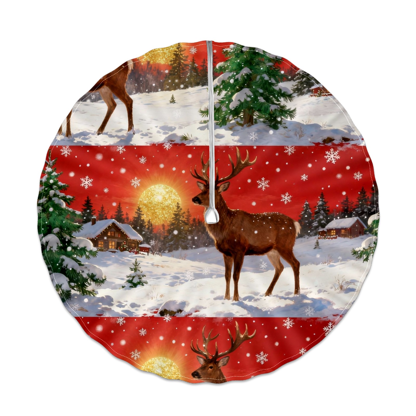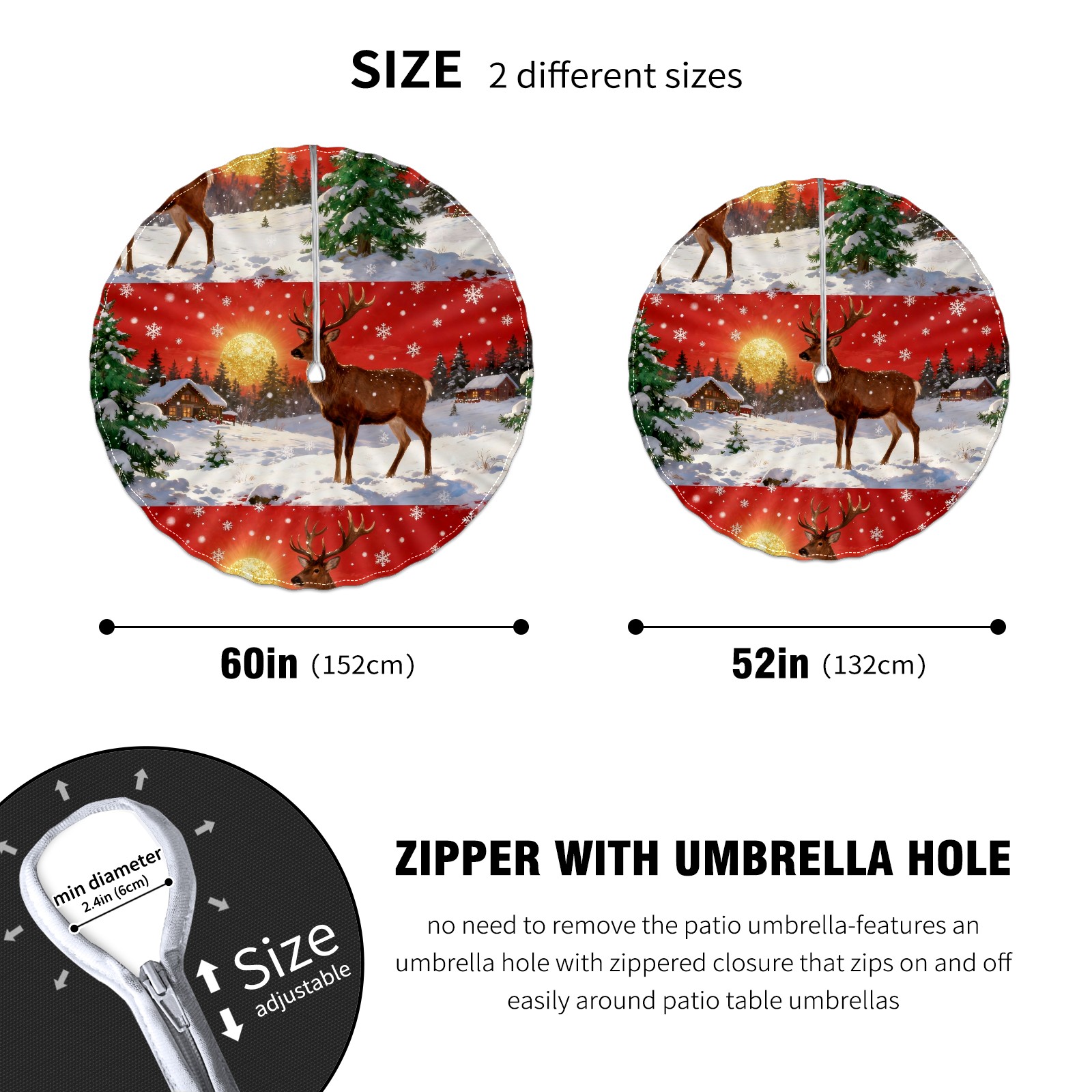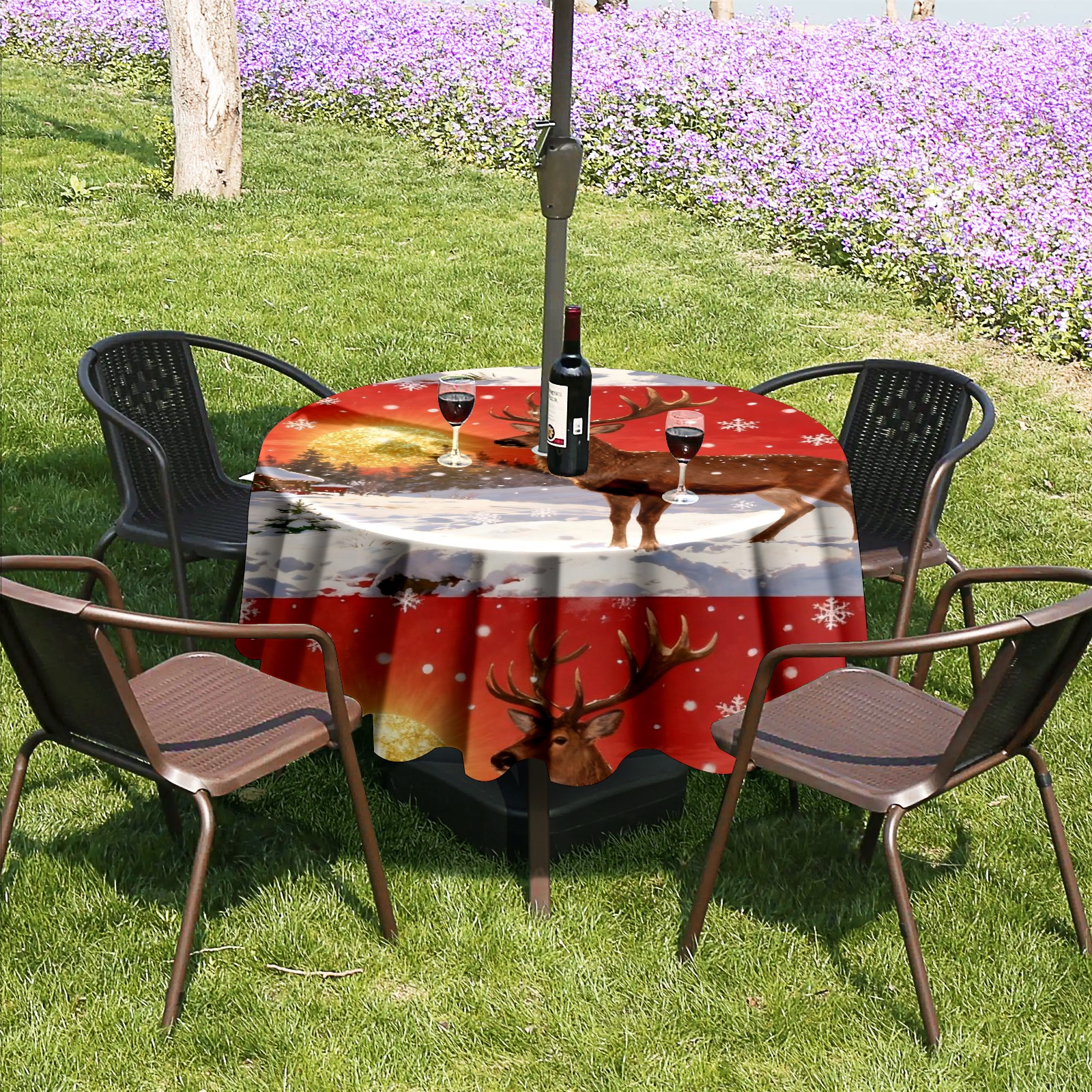 Round Tablecloth with Adjustable Zippered Umbrella Hole Polyester Table Cover Easy Install for Patio, Restaurant & Outdoor Dining Christmas Deer Pattern (60in)