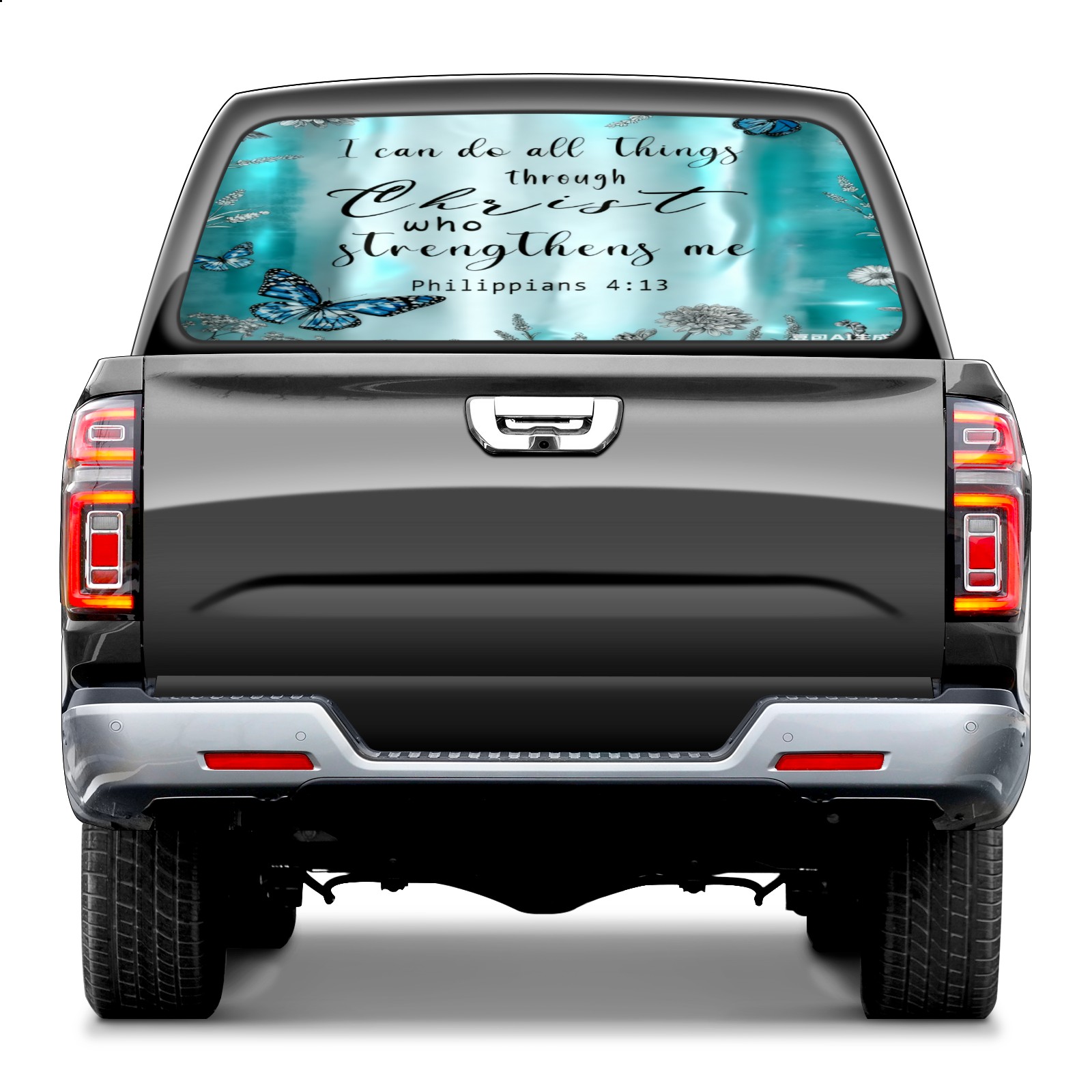 ●<b>Truck Rear Window Graphics Decals Pickup Trucks Back Window Film Stickers 66" x 22" Perforated Vinyl Wrap Stickers Decorations for Car Rear Window.</b><br> <br> <b>Features :</b><br> - Size of the rear window decals for trucks is 66x22 Inches (168x56cm).<br> - High quality perforated vinyl window film, one way vision sticker.<br> - Perforated is see through from the inside but not from outside.<br> - Clear printing, waterproof and continued.<br> - The car back window graphics stickers fits most truck and makes your vehicle more beautiful.<br> <br> <b>【Installation Instructions】</b><br> <b>1. CLEAN SURFACE - </b>Clean the rear window thoroughly and make sure the surface clean.<br> <b>2. STICK THE DECALS - </b>Tear off the paper on the back and stick the decal on the window.<br> <b>3. SCRAPE OFF AIR BUBBLES - </b>Use a squeegee or other card to scrape off the excess air bubbles.<br> <b>4. TRIM THE EXCESS -</b> Use a knife to cut off the excess stickers of the window, finally complete.<br> 1. Please measure the size before purchasing, back window graphics decal for truck can be cut to your desired size.<br> 2.The graphics stickers for truck back window is a great gift for yourself also can as a birthday / halloween / christmas gift for your friends and family.<br> <b>Decorate Your Pickup Truck With Rear Window Decal Today!</b>