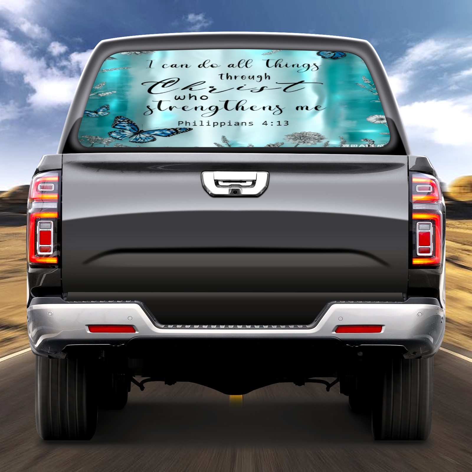 Happy Letters Rear Window Decals for Trucks- Pickup Car Window Stickers Decal- Truck Back Window Tint Decal Graphic Perforated Vinyl Truck Stickers 66" X 22"